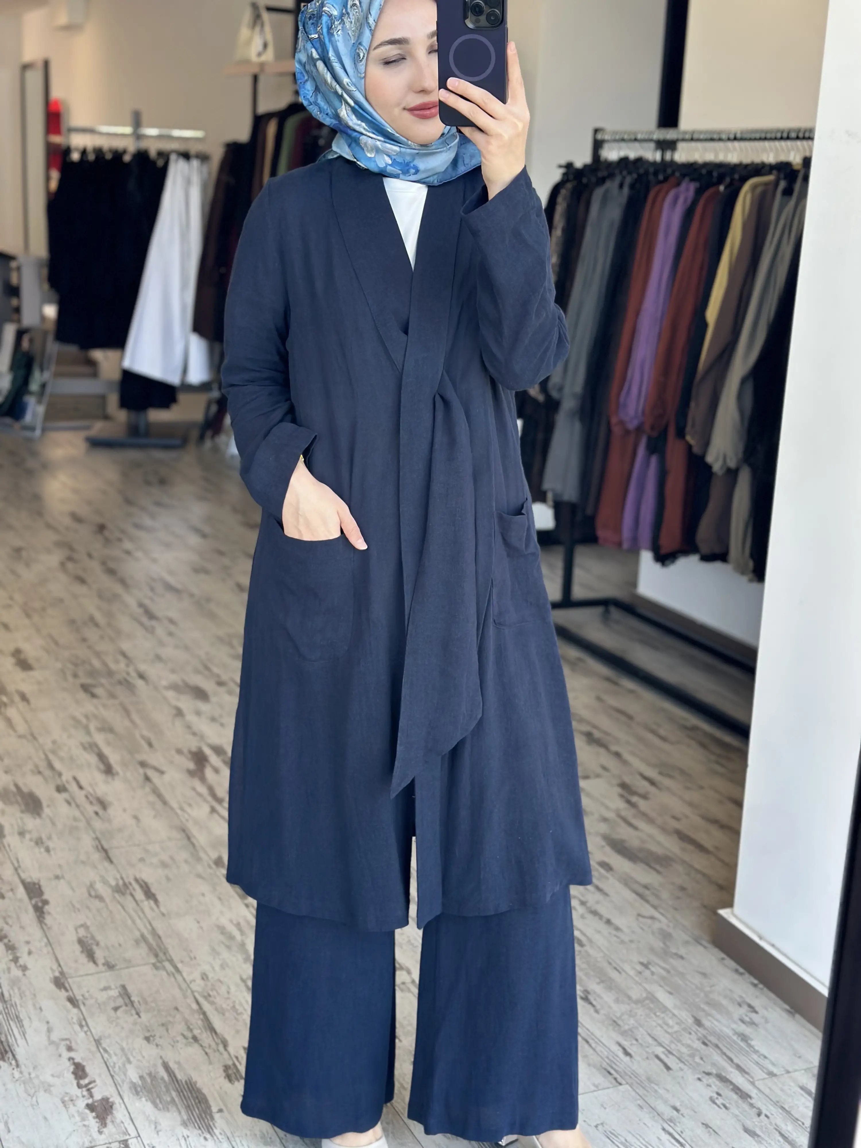 ÜRÜN KETEN KAP PANTOLON TİŞÖRT ÜÇLÜ TAKIMDIR