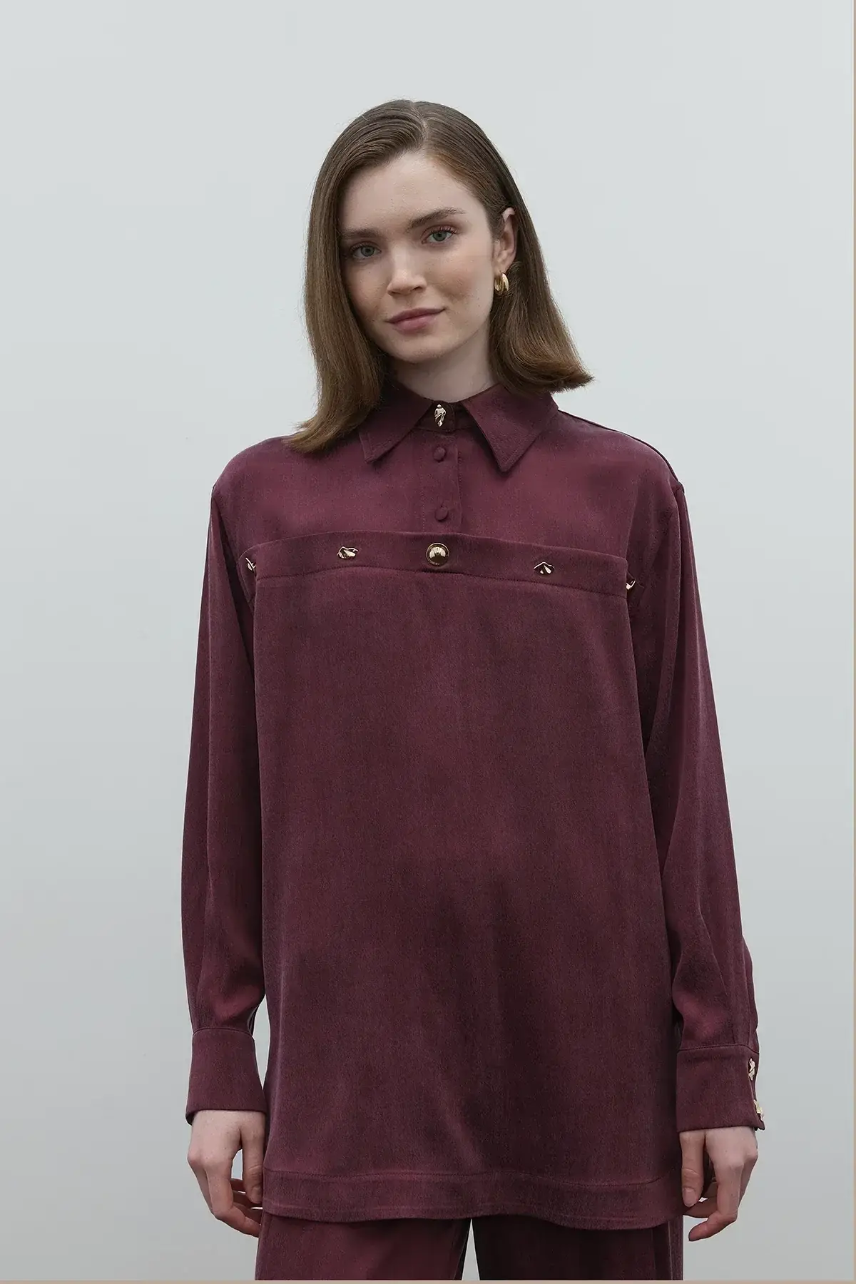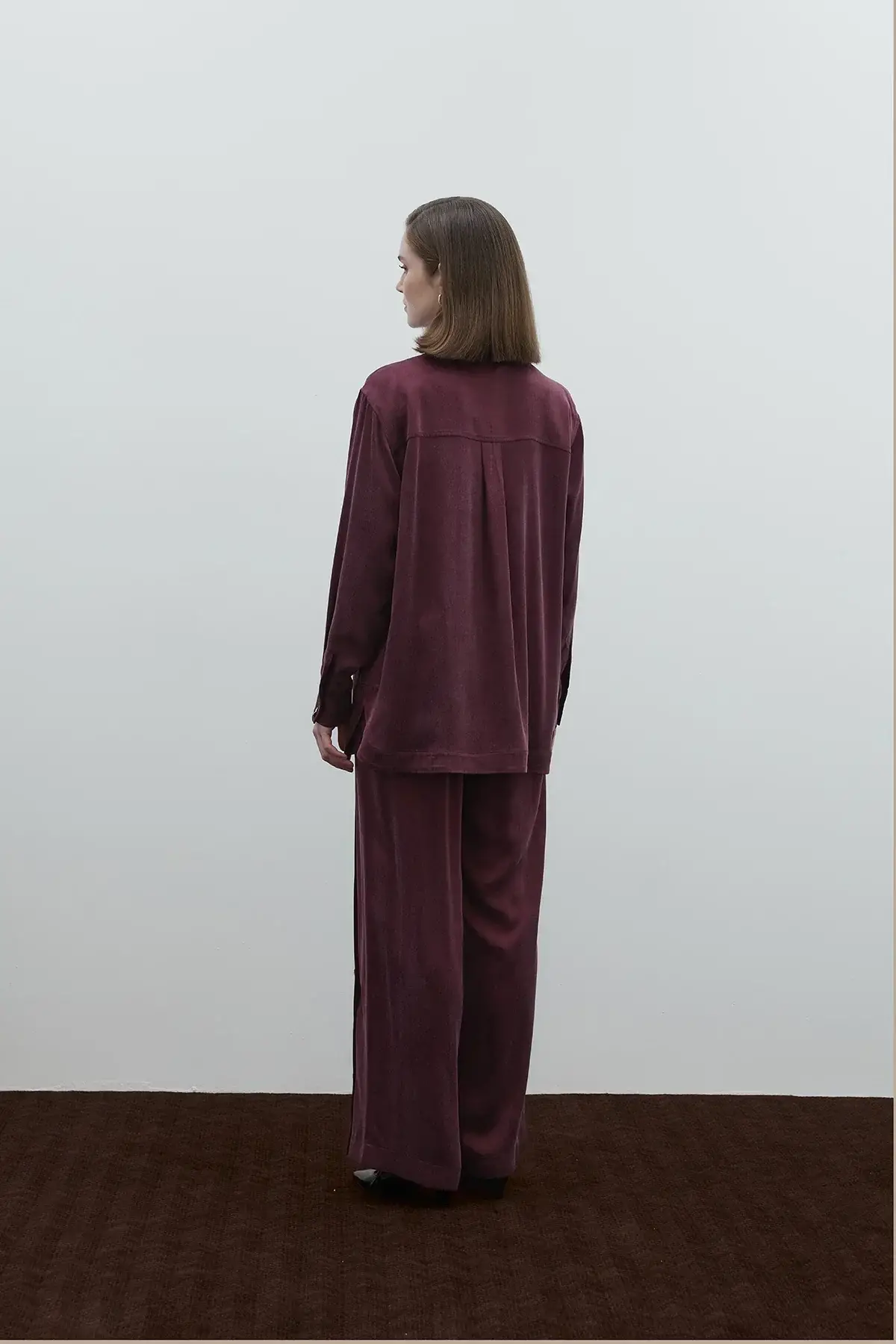 Clande Cupra İpek Düğme Detaylı Tunik Bol Paça Pantolon Takım