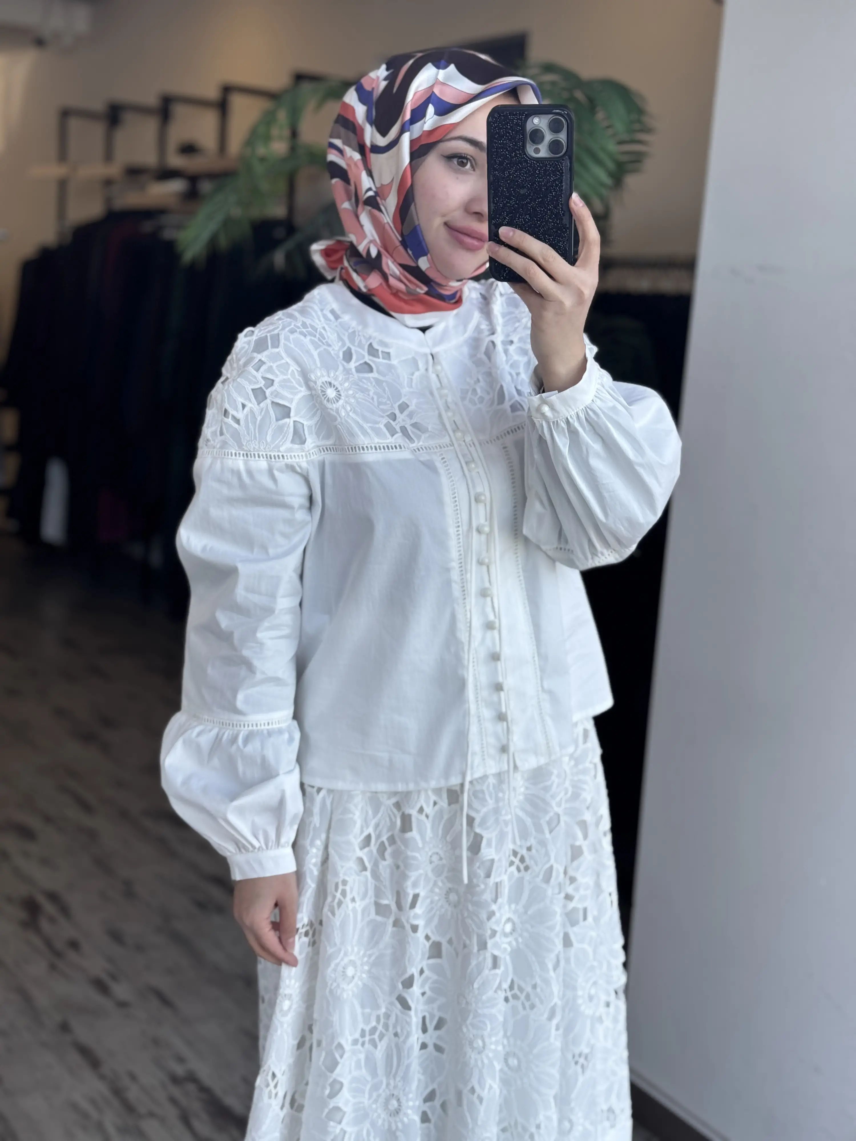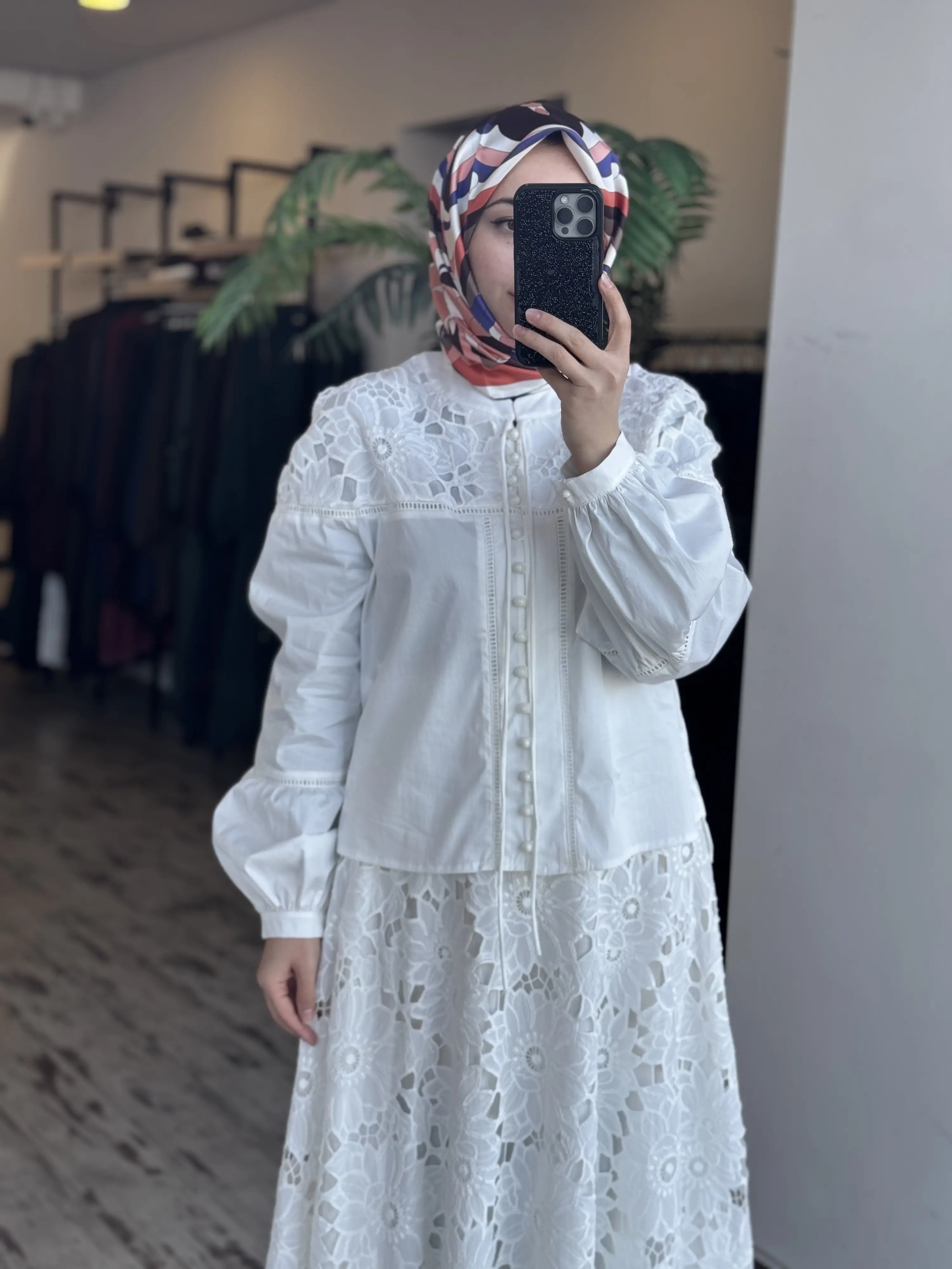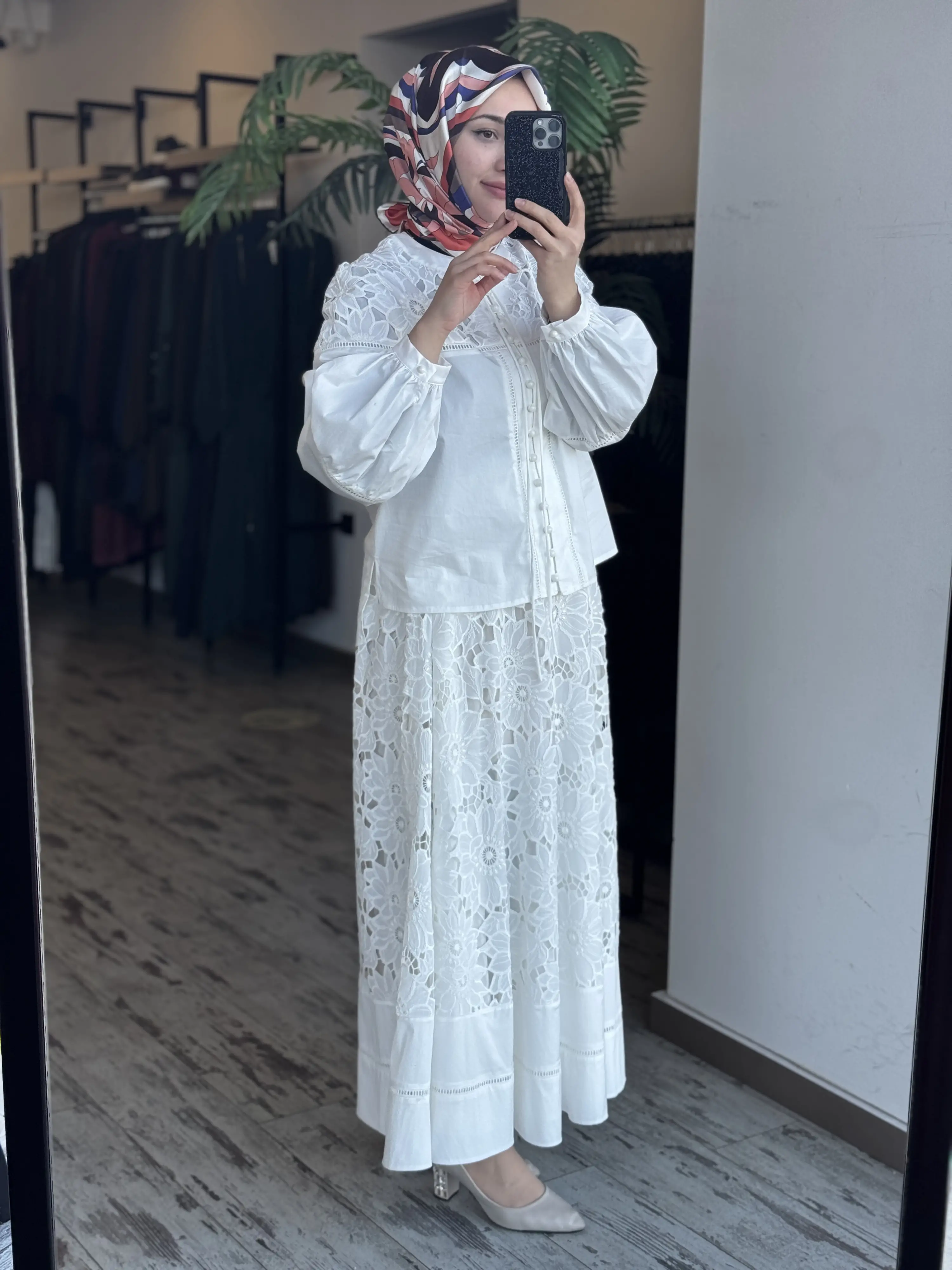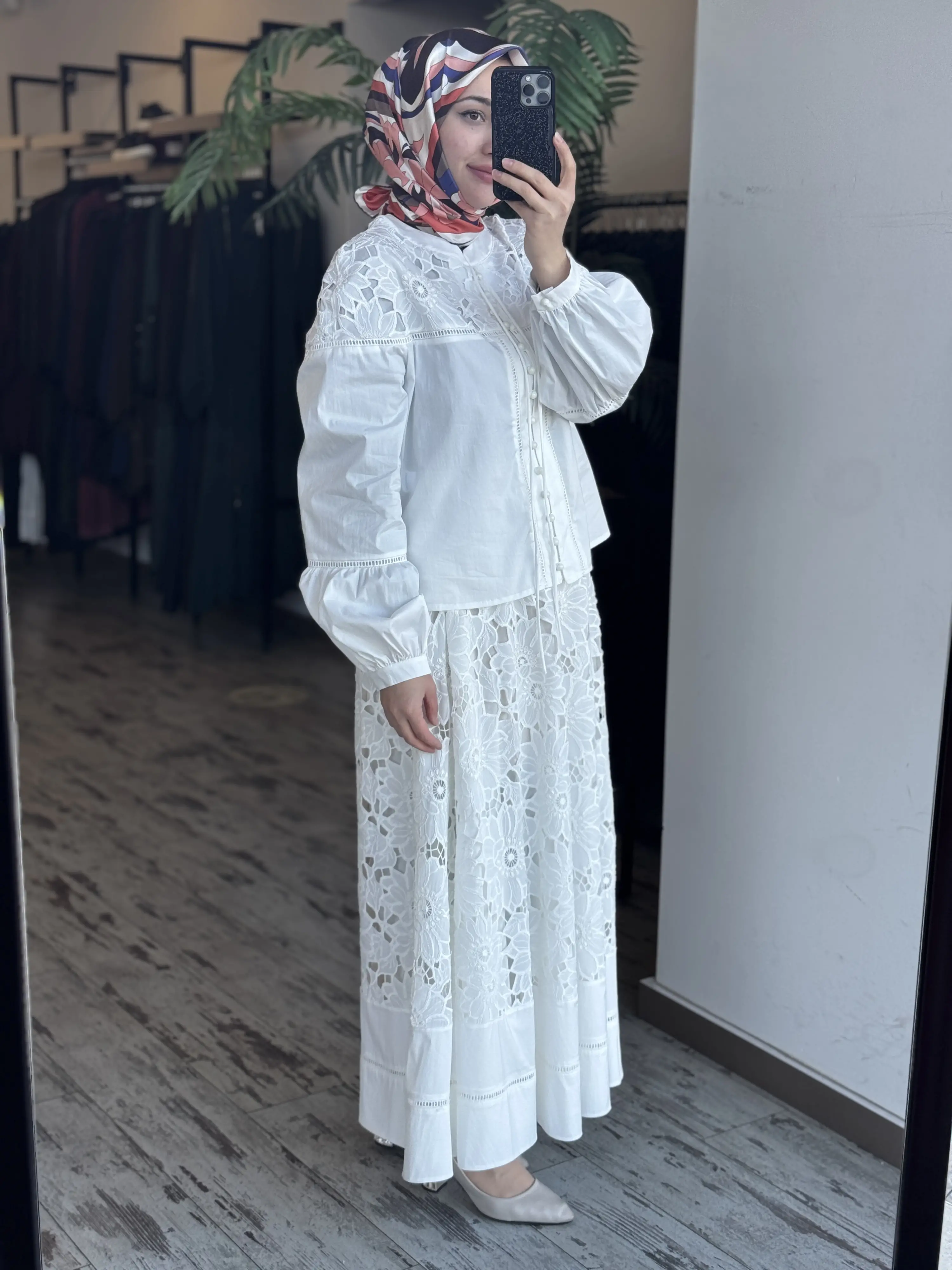Clande Britli Güpür Detaylı Gömlek Etek Takım