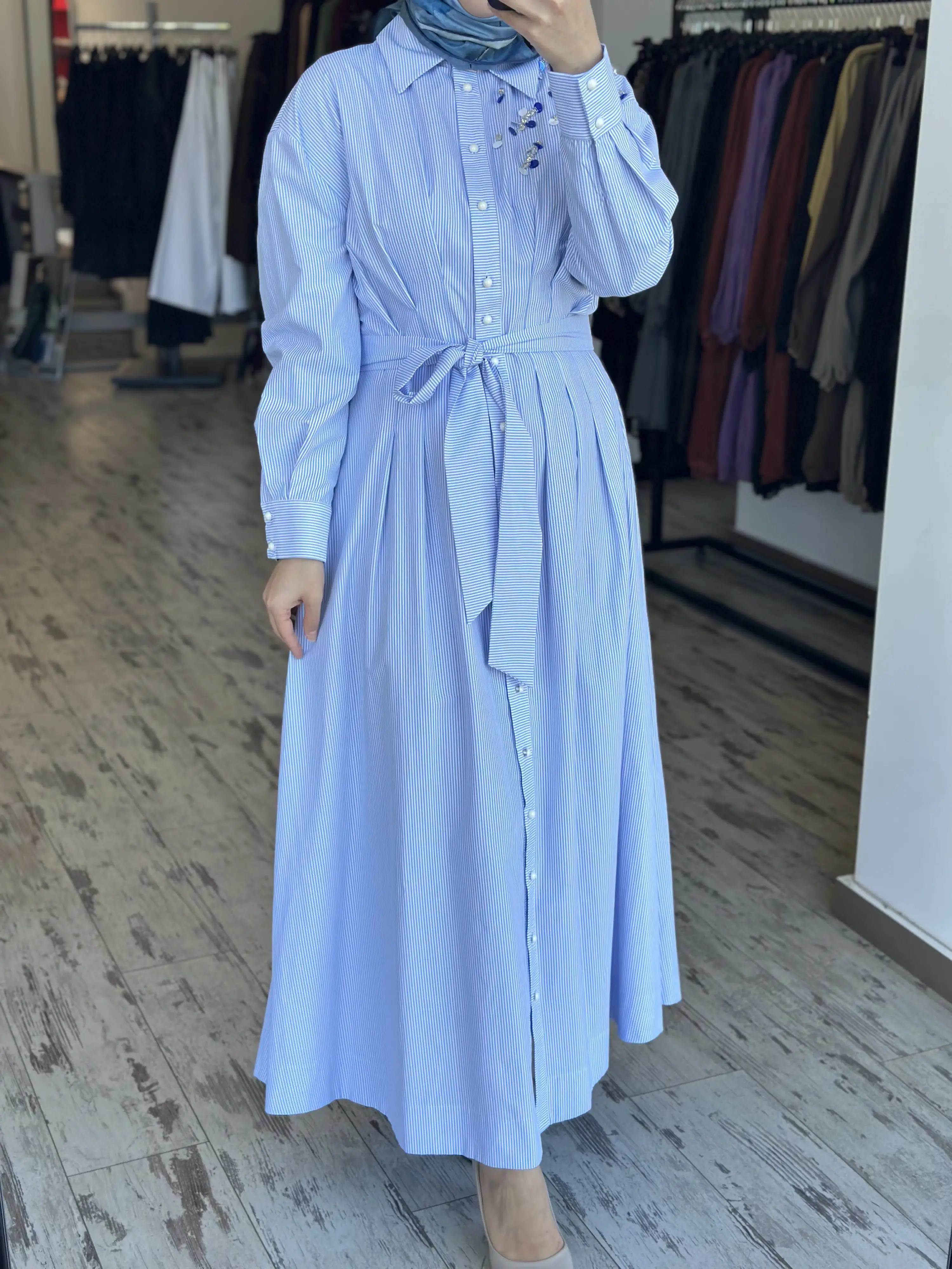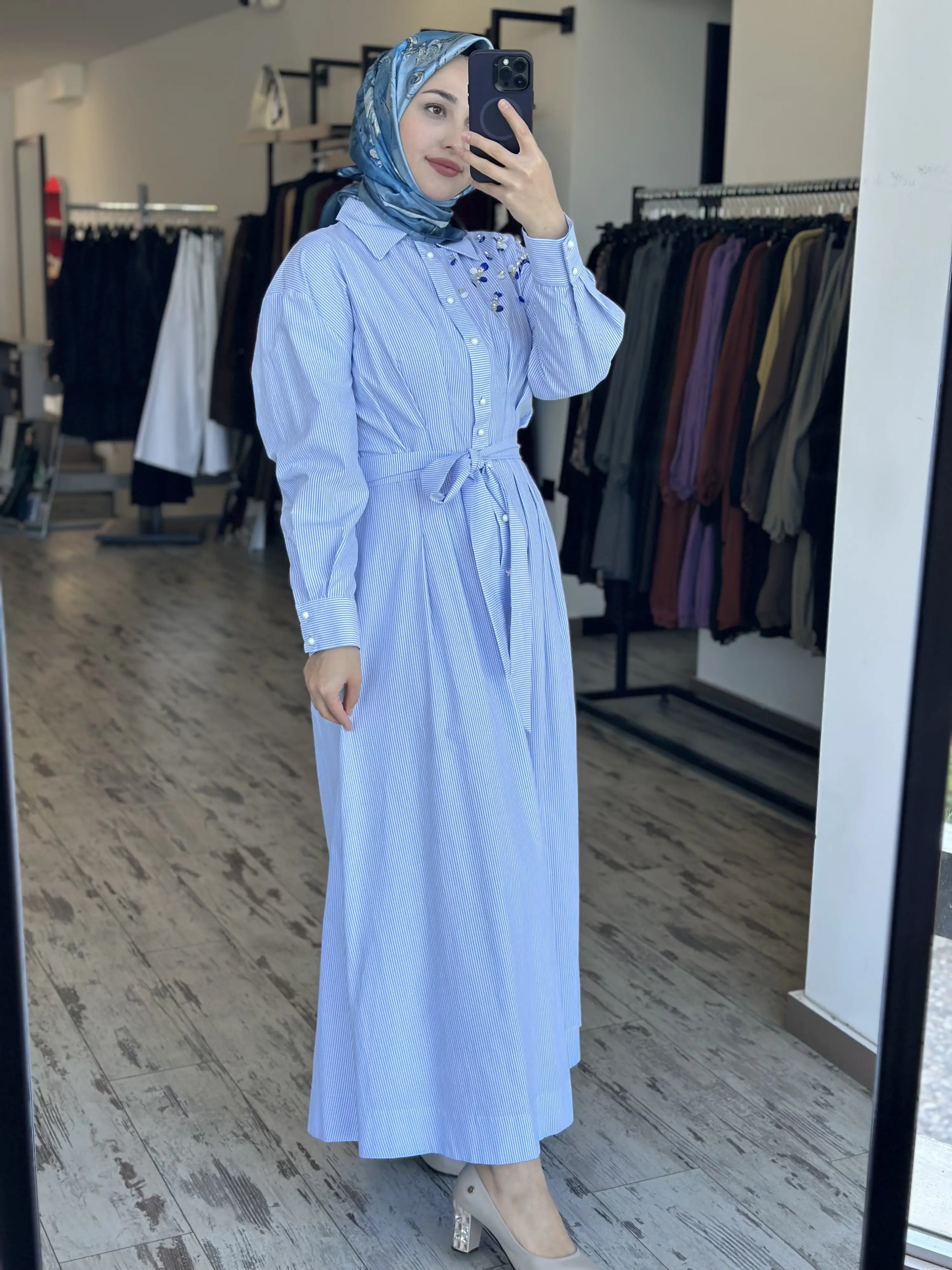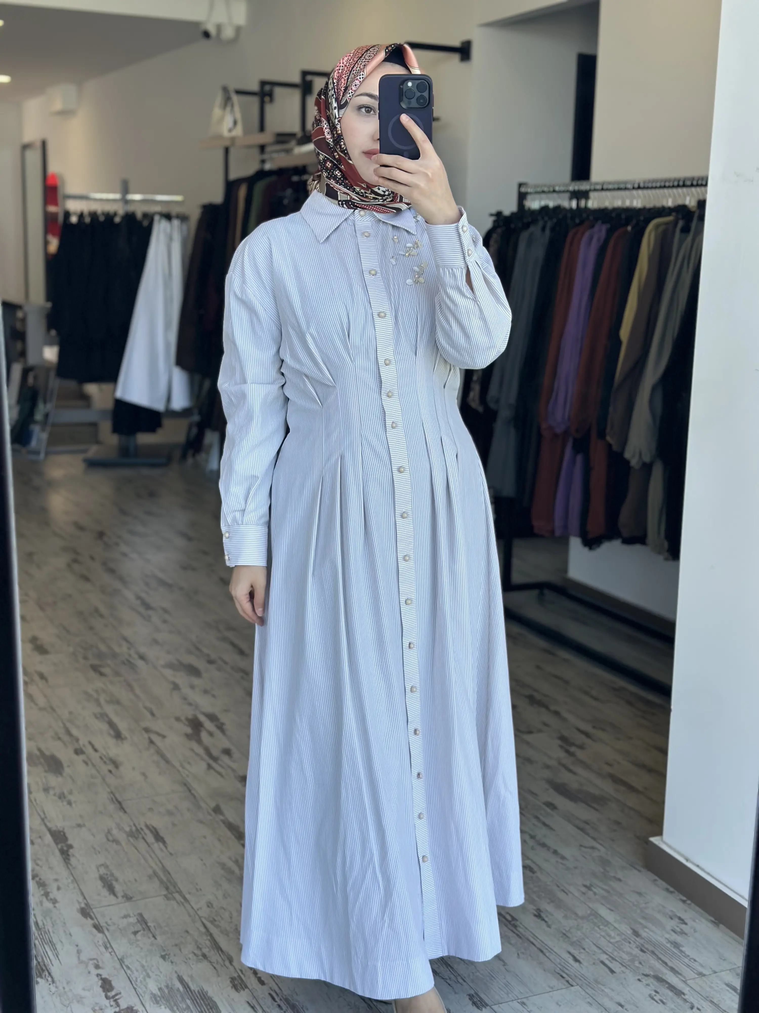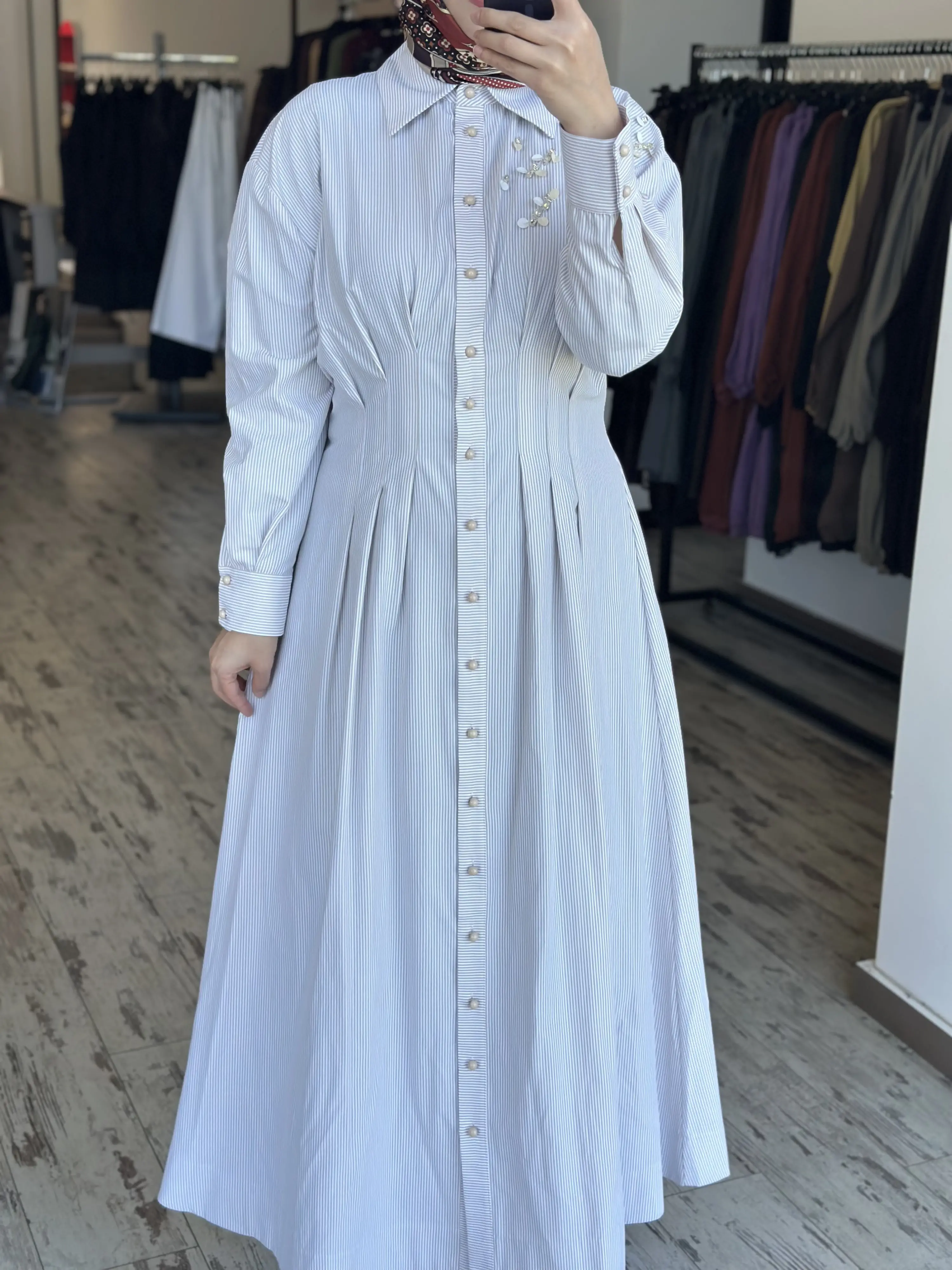 ÜRÜN ÇİZGİLİ POPLİN GÖMLEK ELBİSEDİR
