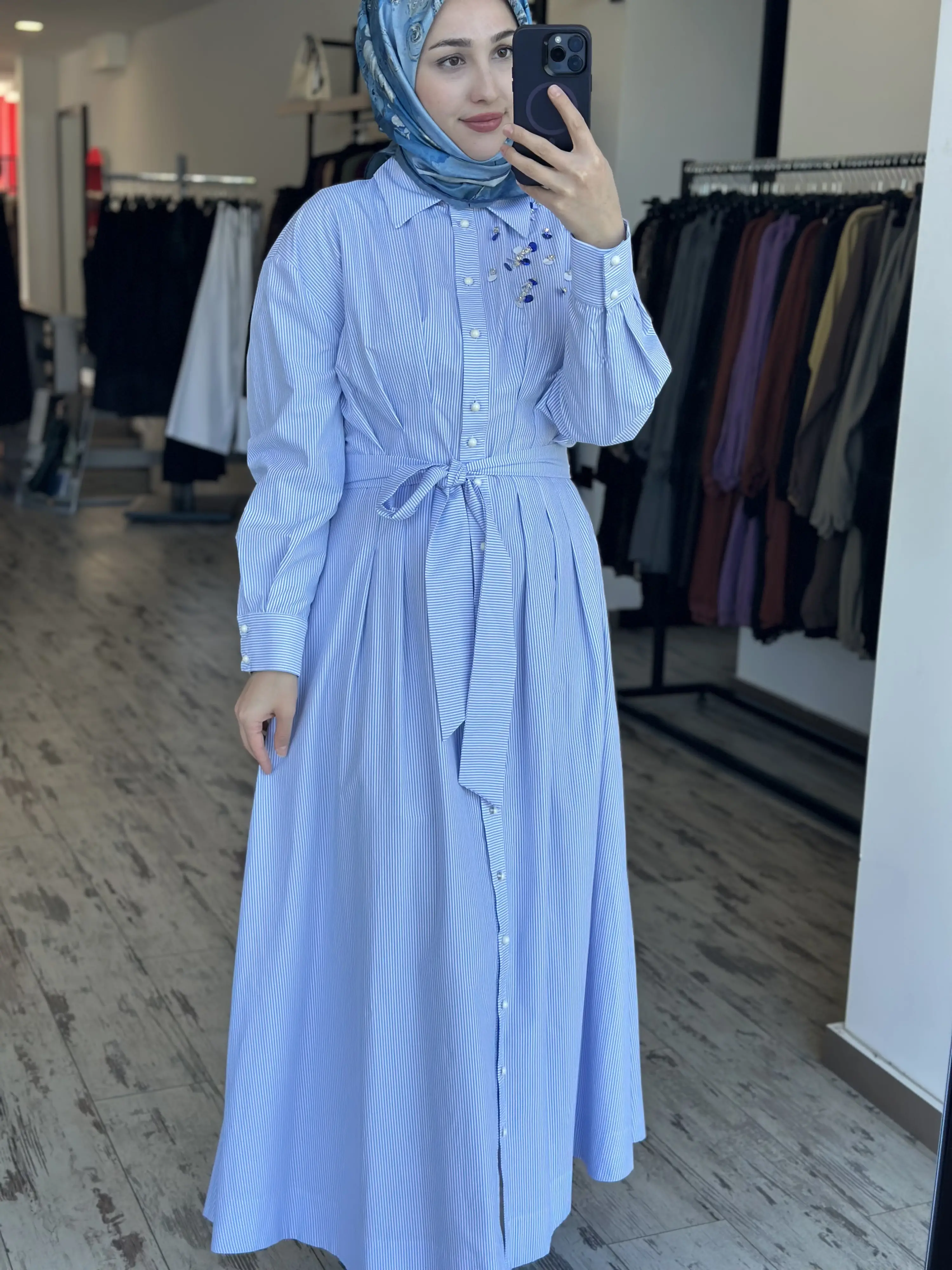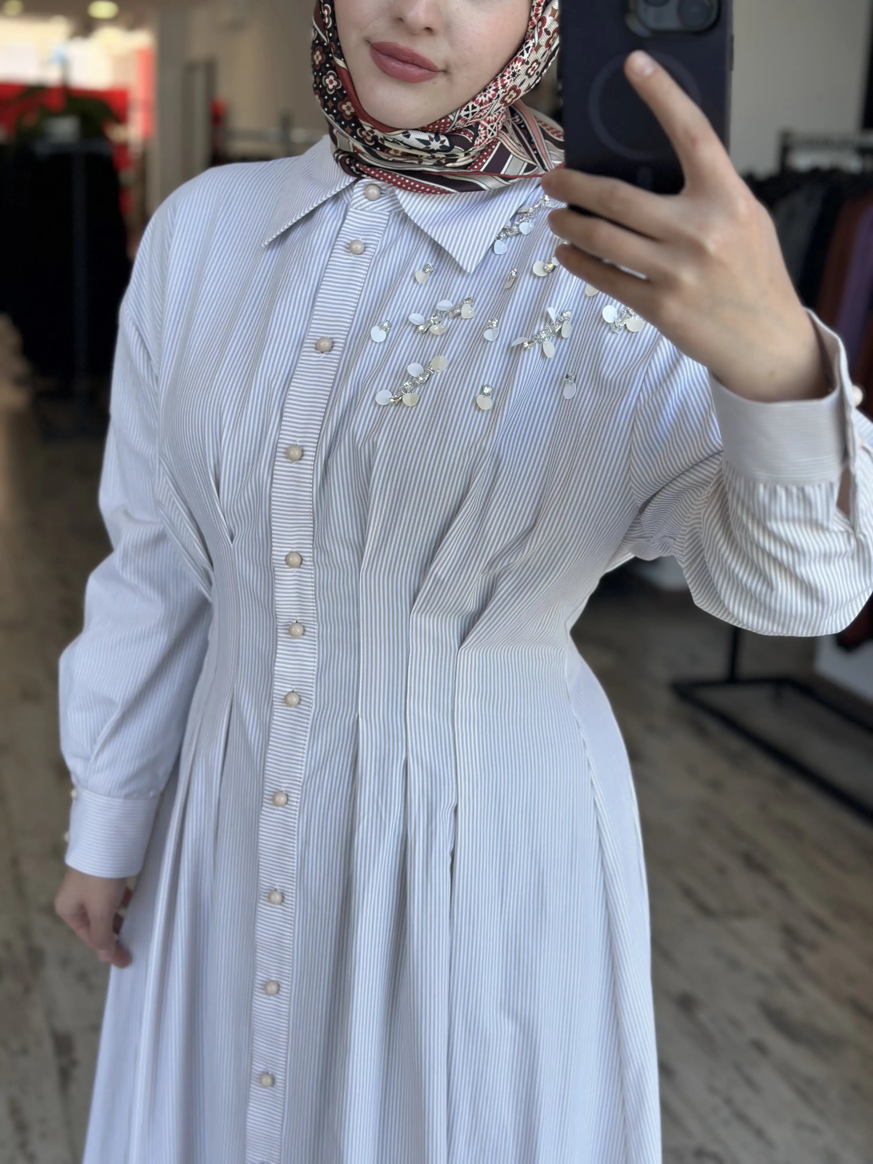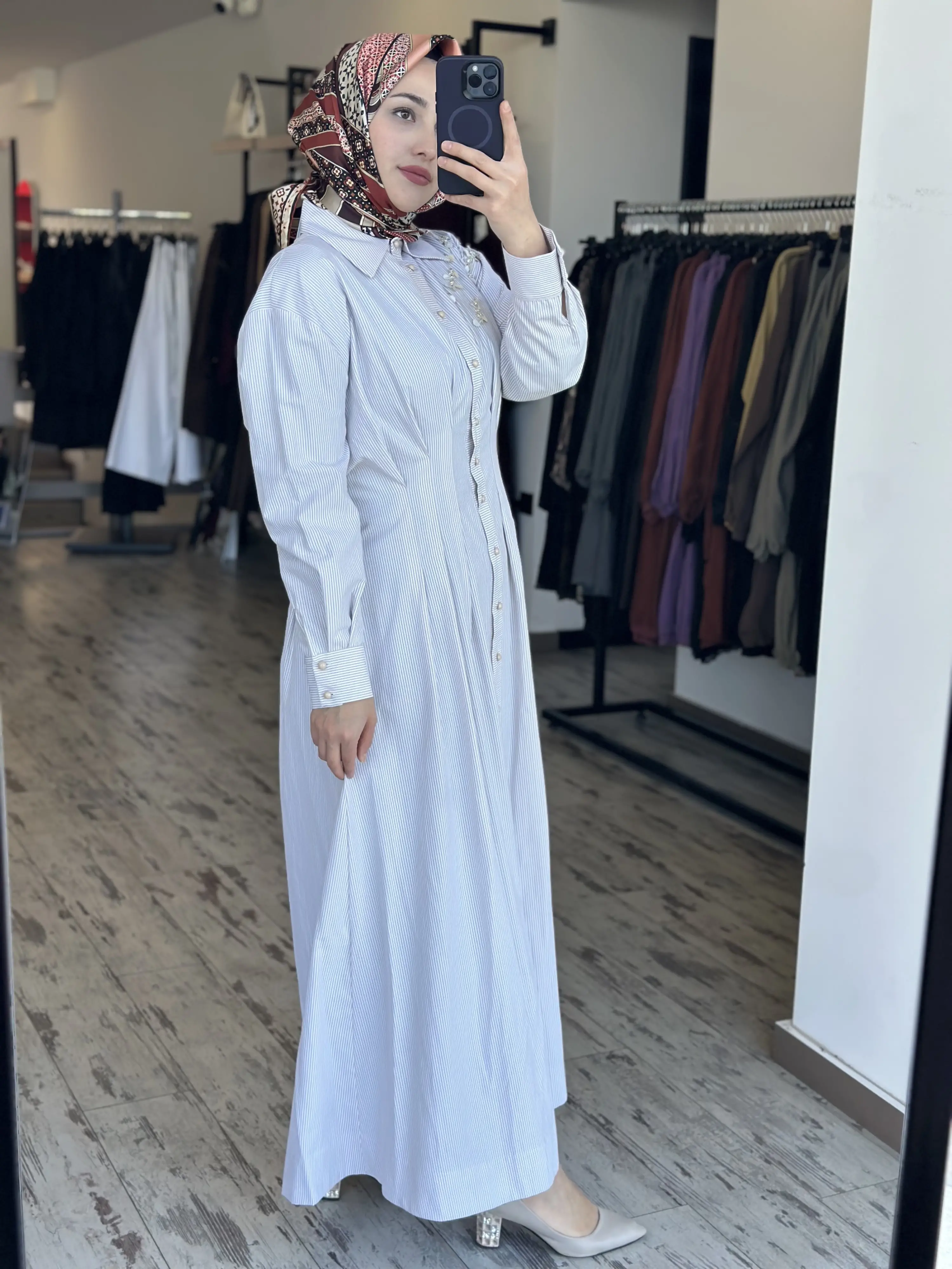 ÜRÜN ÇİZGİLİ POPLİN GÖMLEK ELBİSEDİR