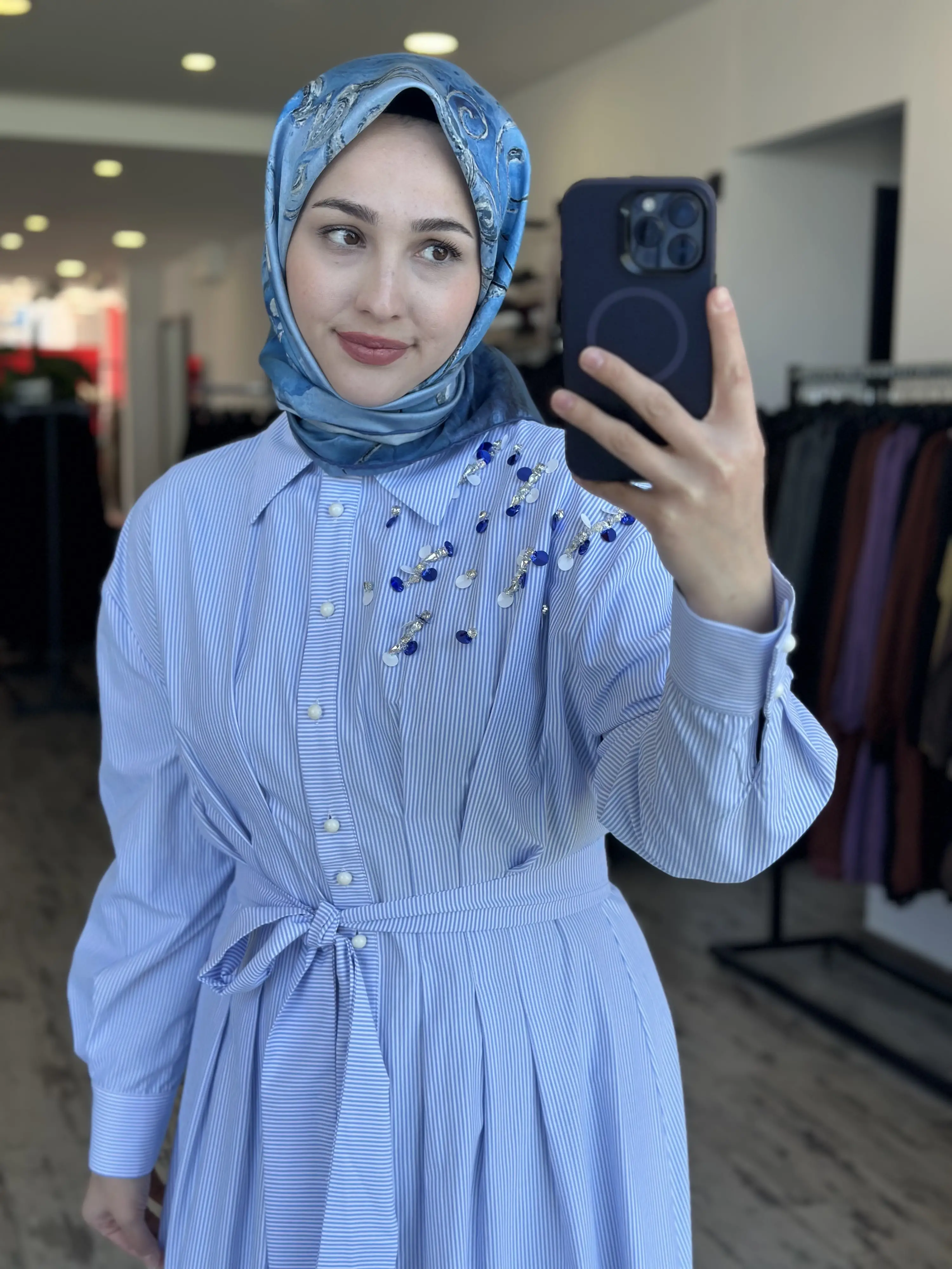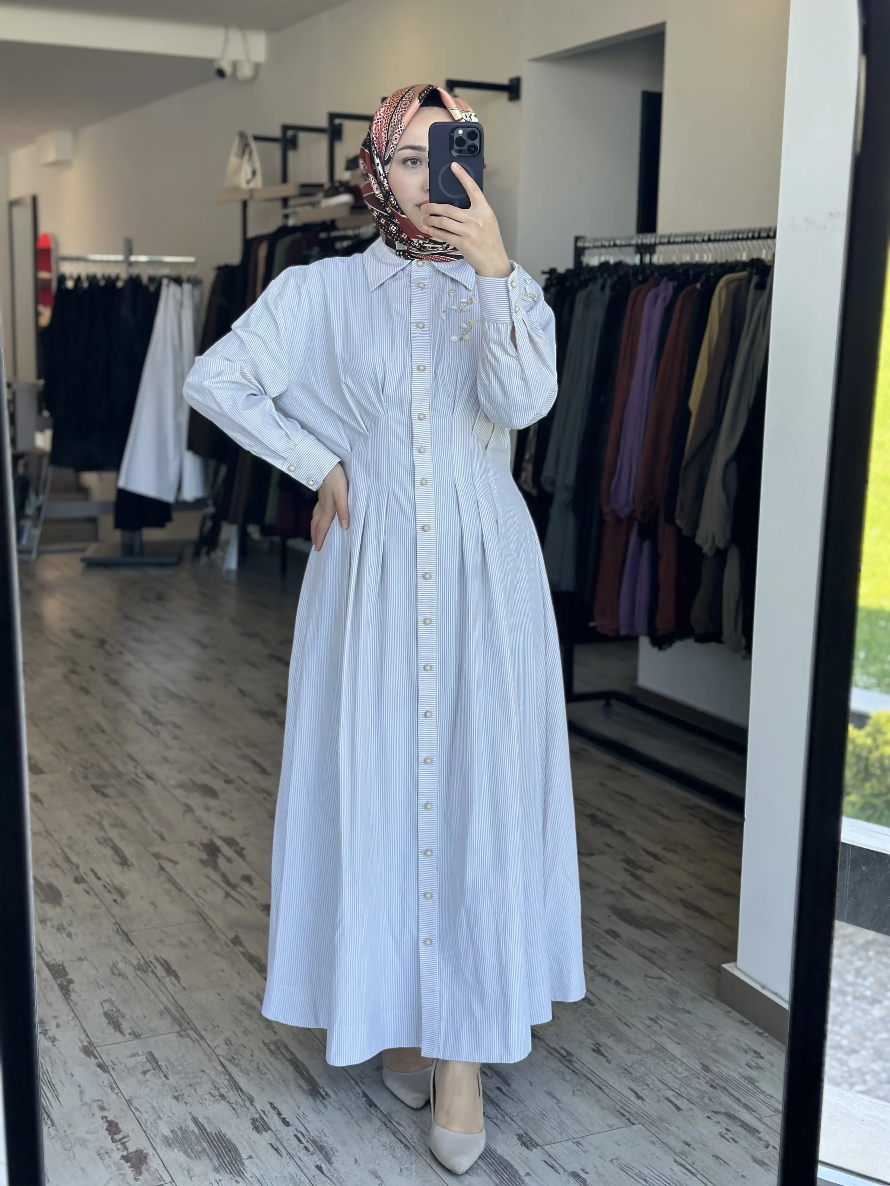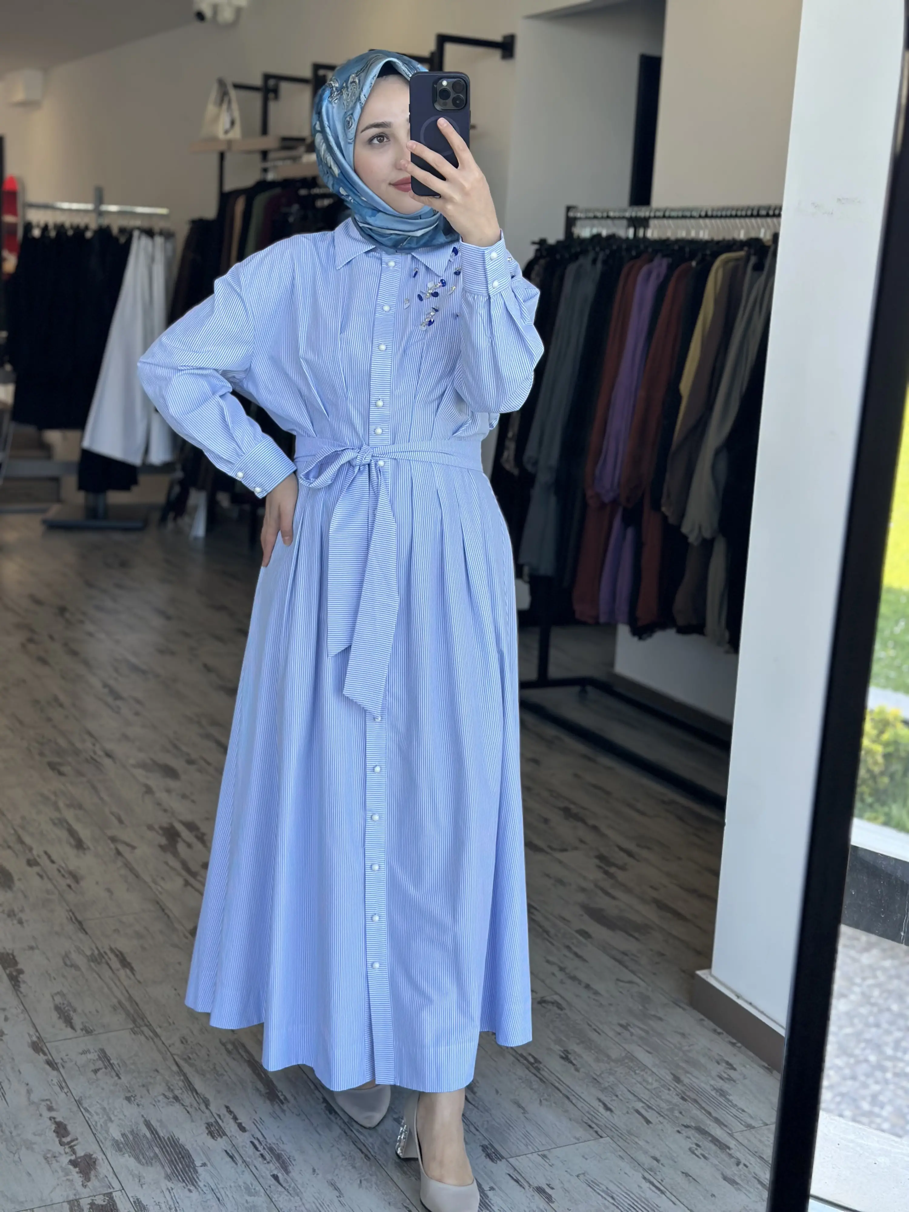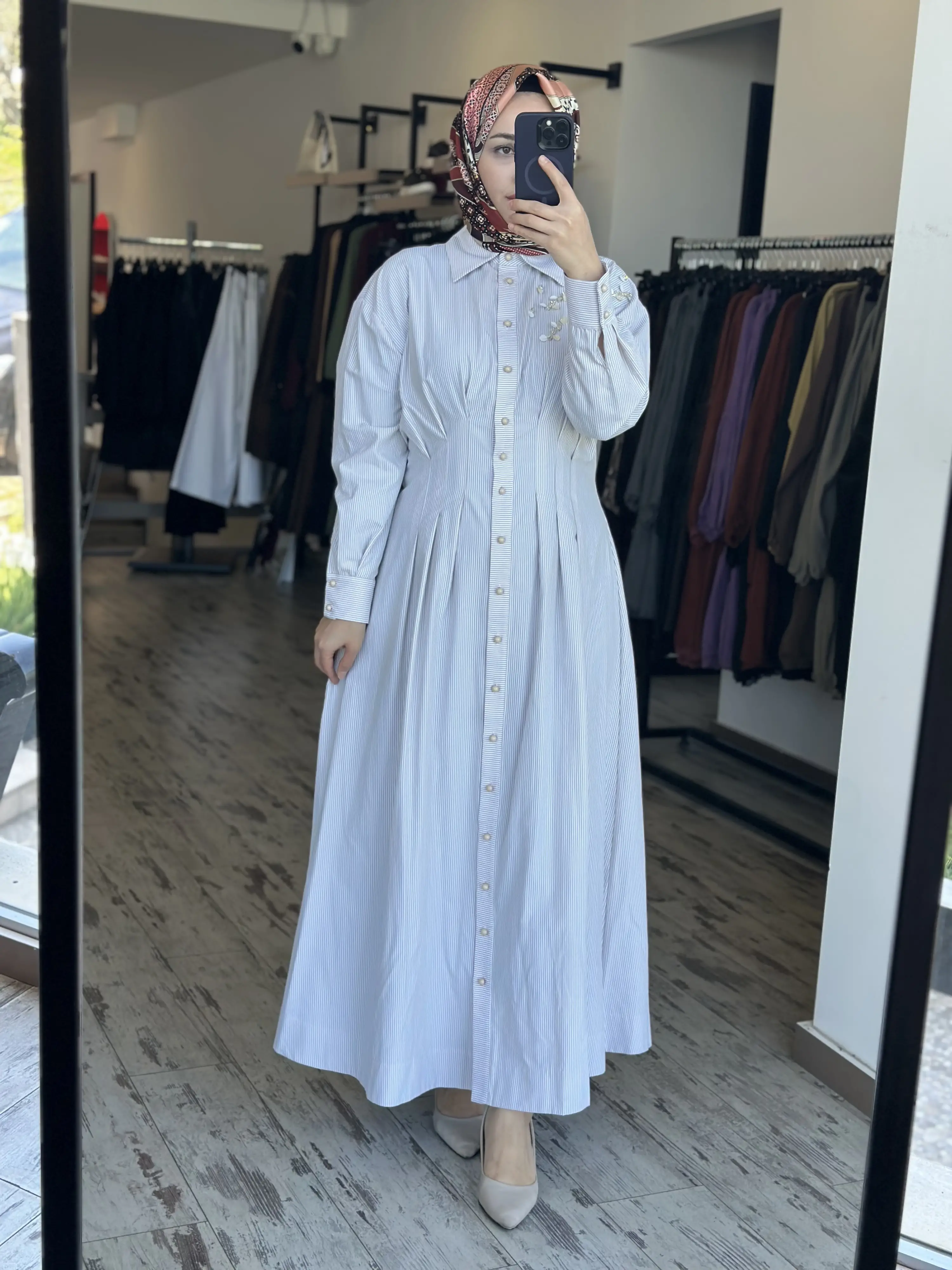 ÜRÜN ÇİZGİLİ POPLİN GÖMLEK ELBİSEDİR