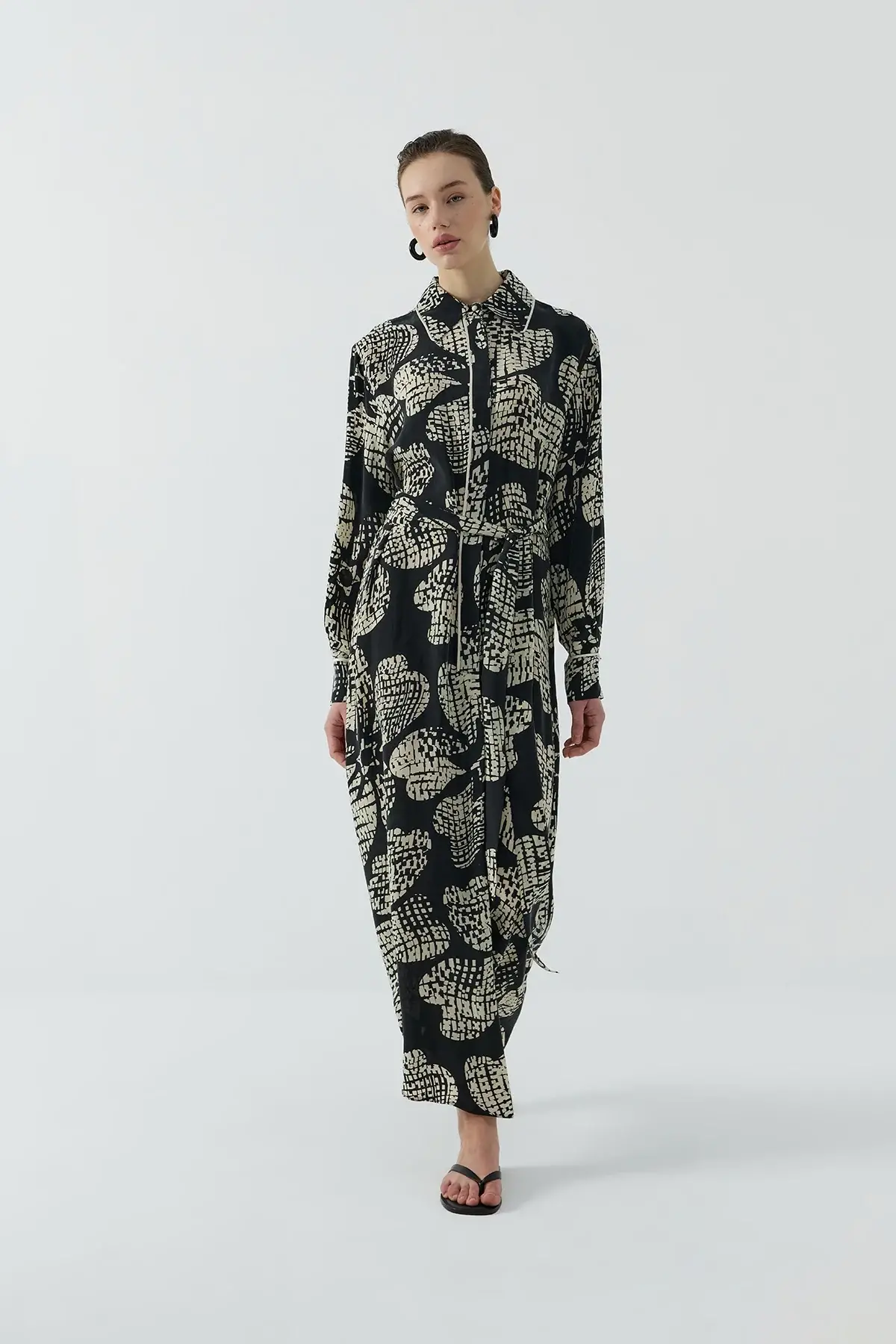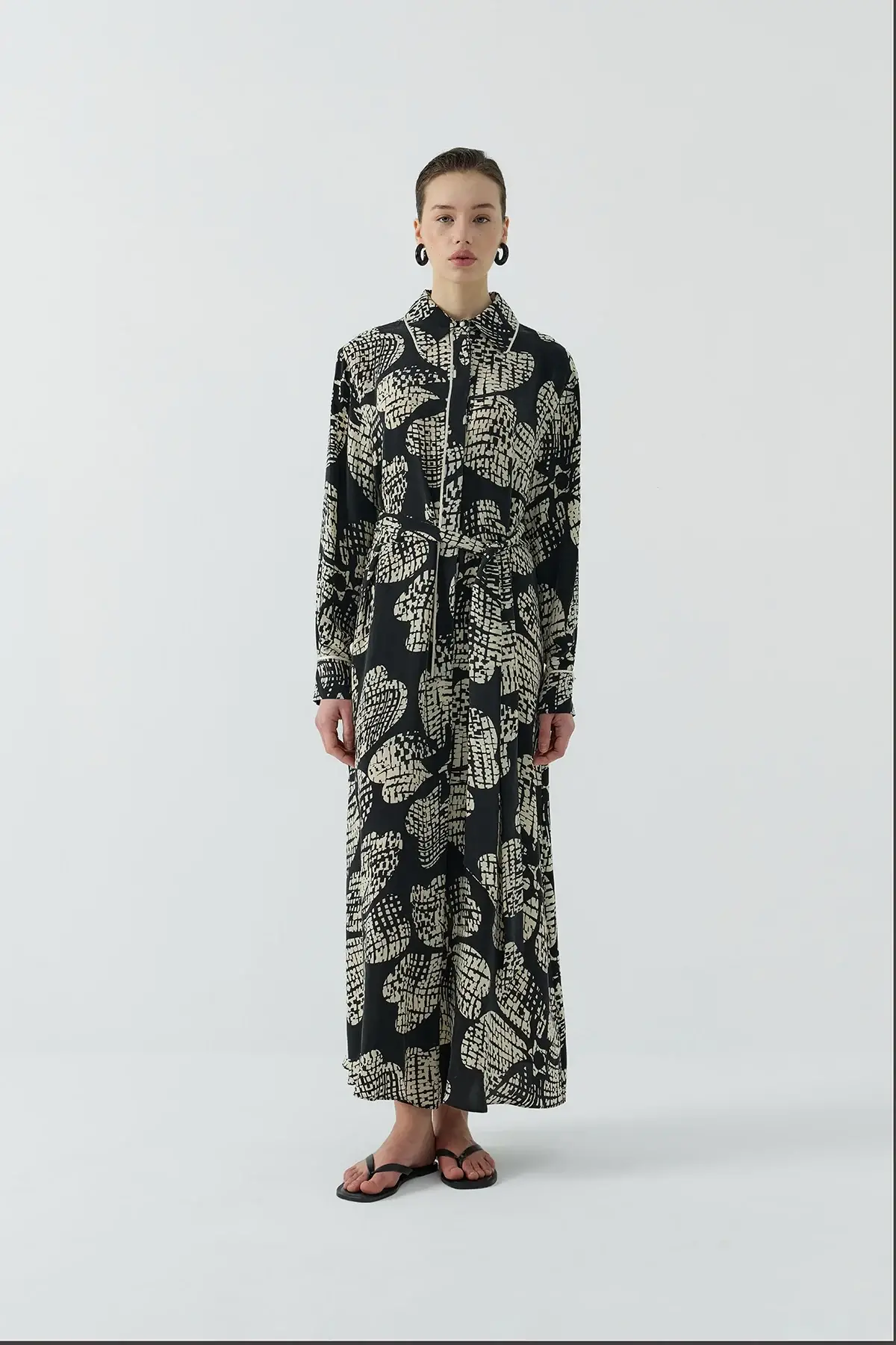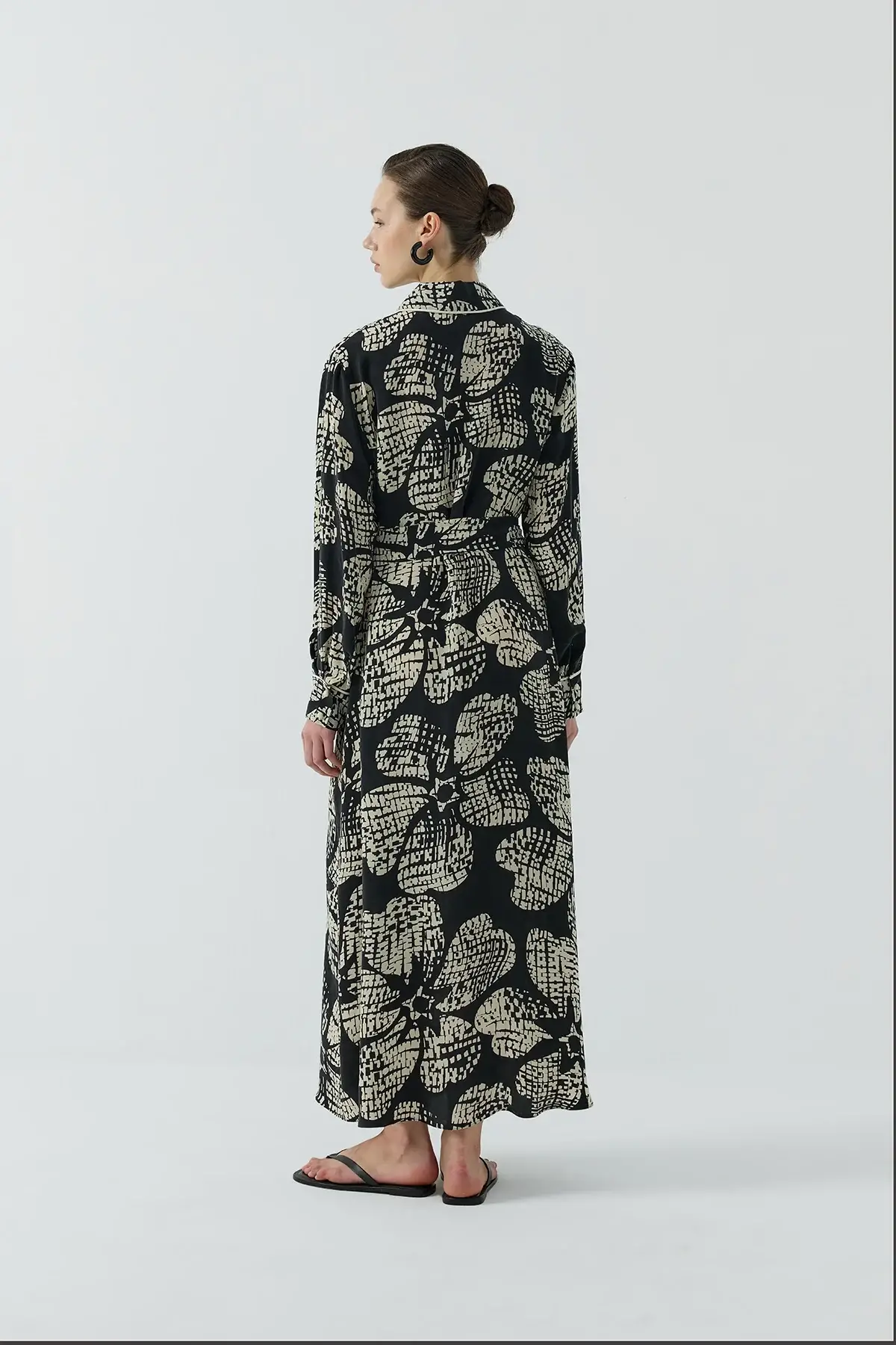 Clande Kontrast Çiçek Desenli Biyeli Elbise