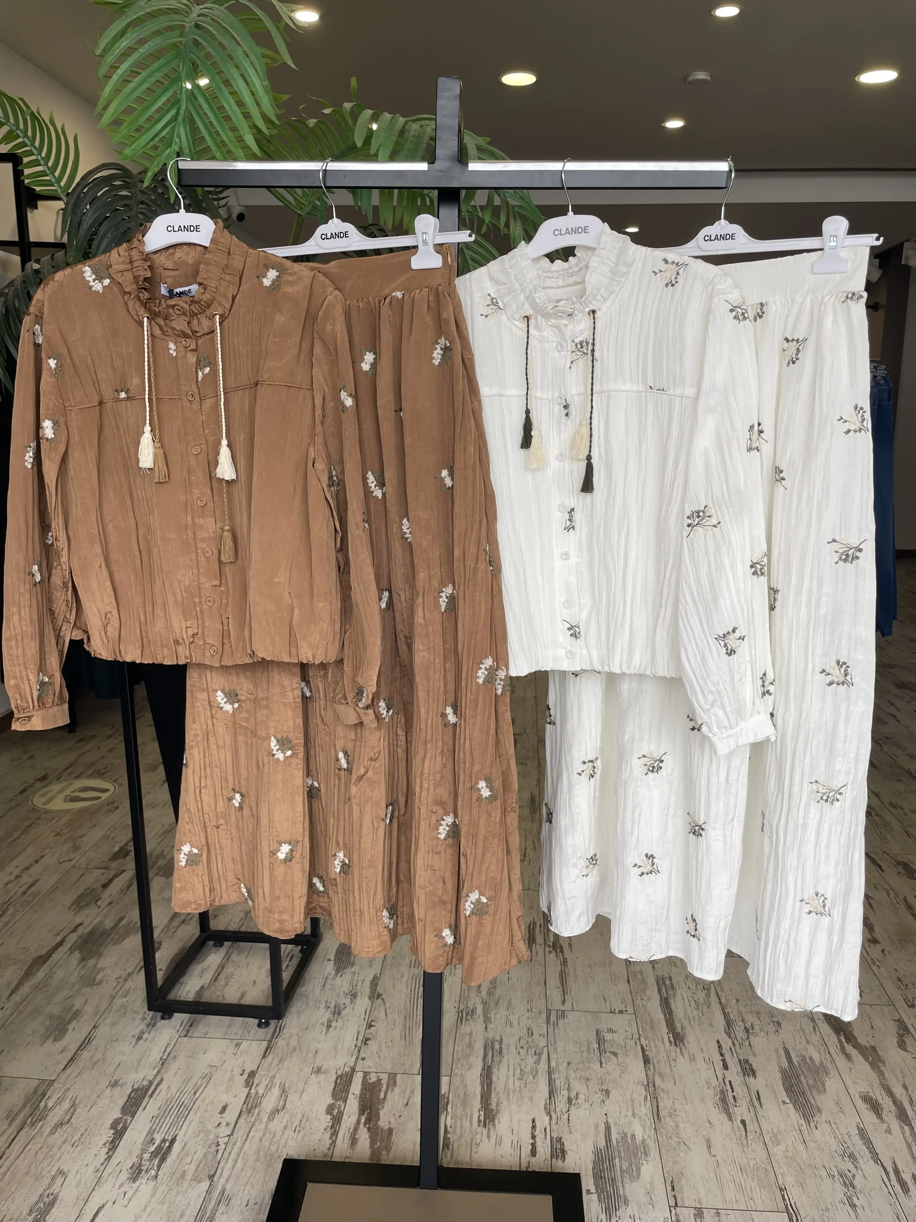 Clande Nakış İşlemeli Kraş Bomber Ceket Etek Takım