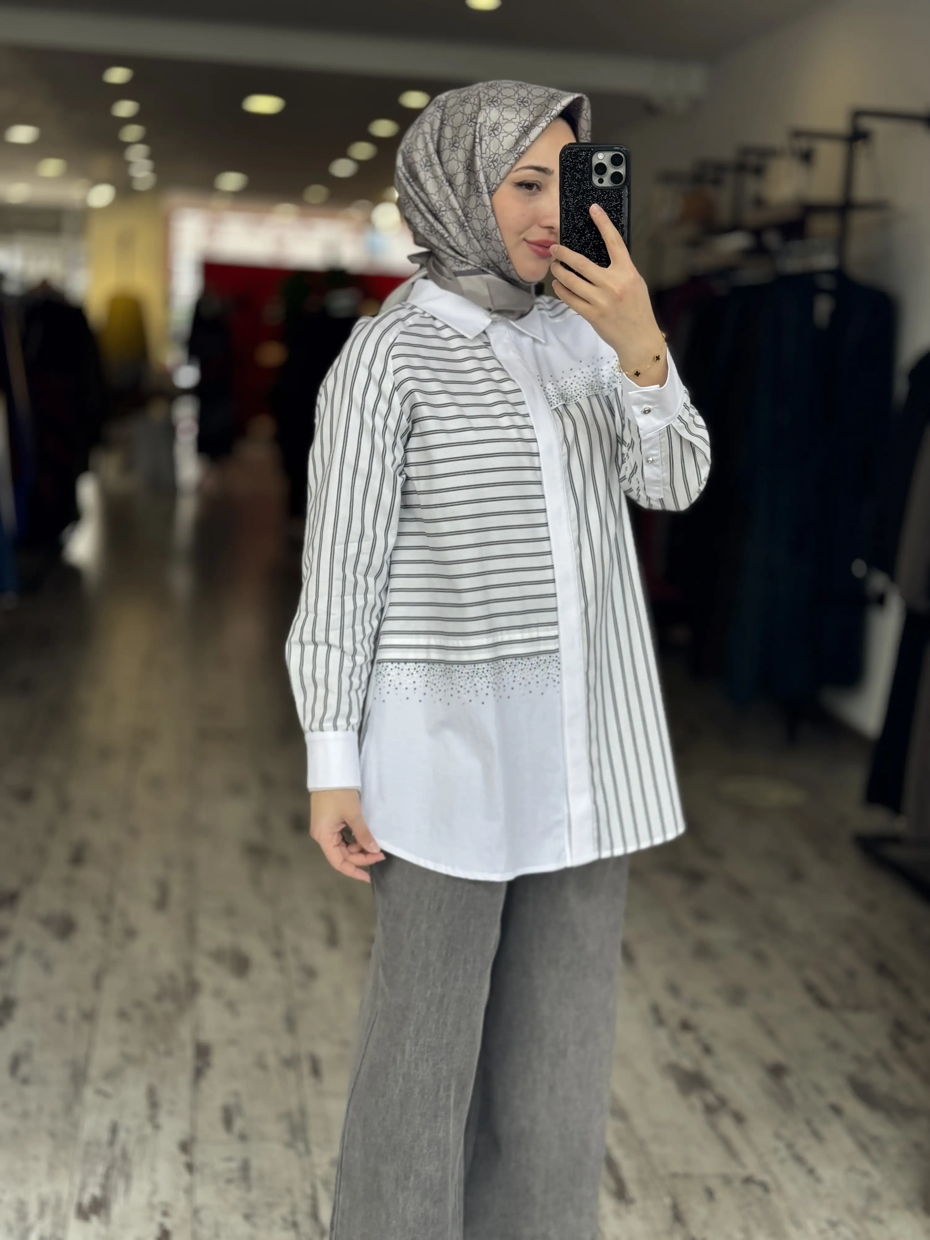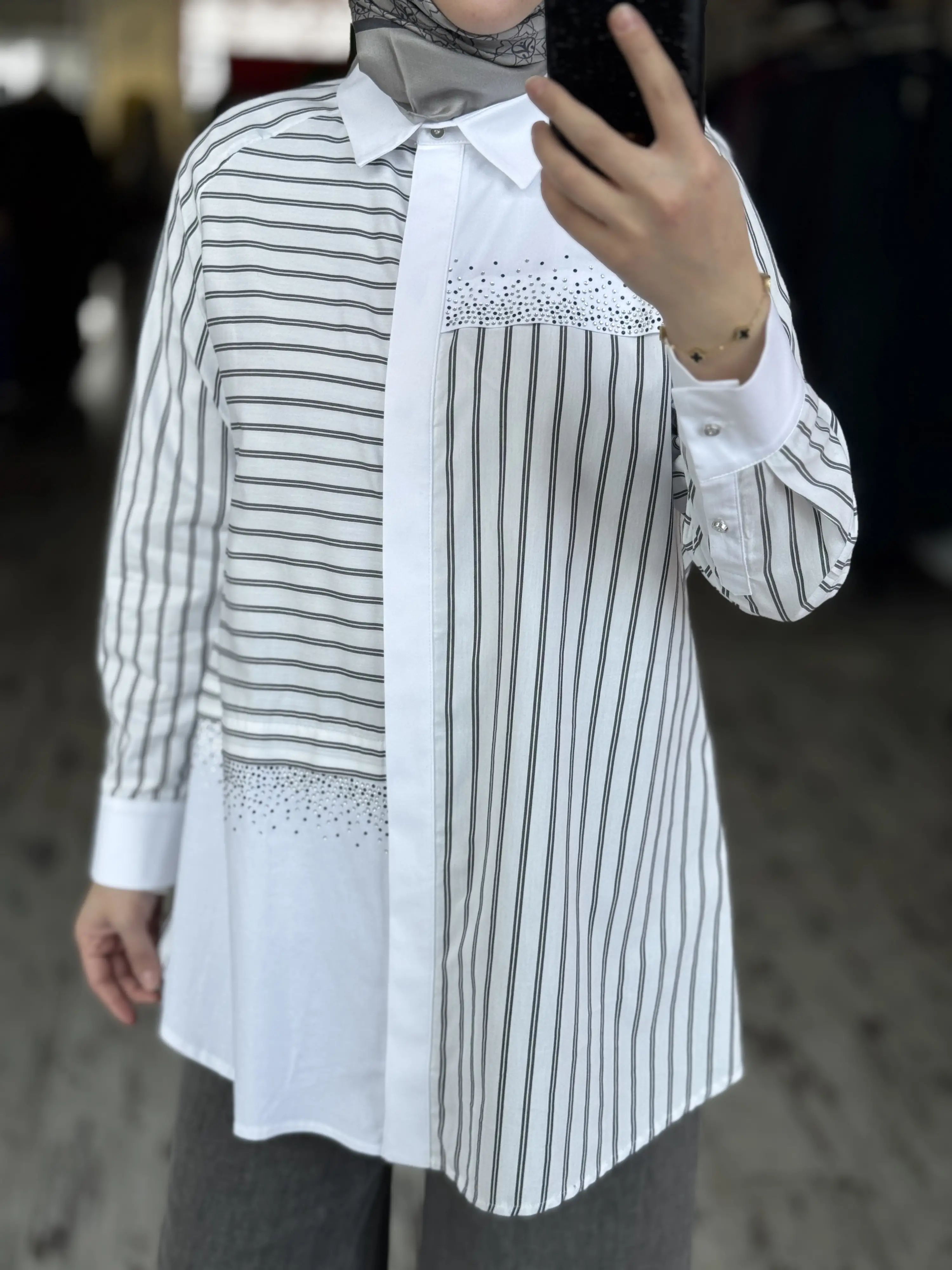 Kayra Taş Detaylı Çizgili Gömlek KA21108