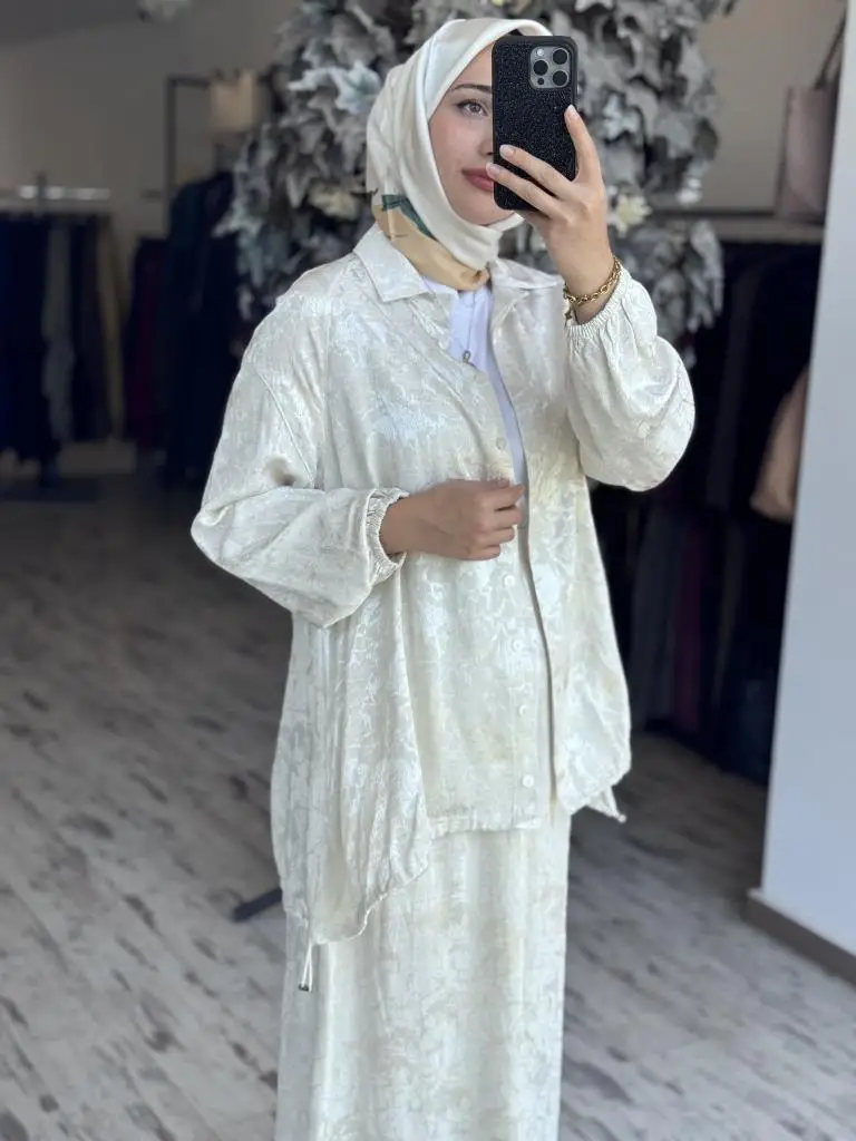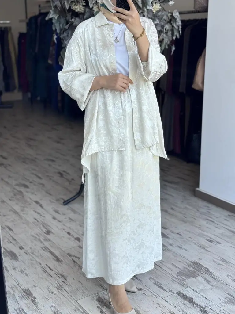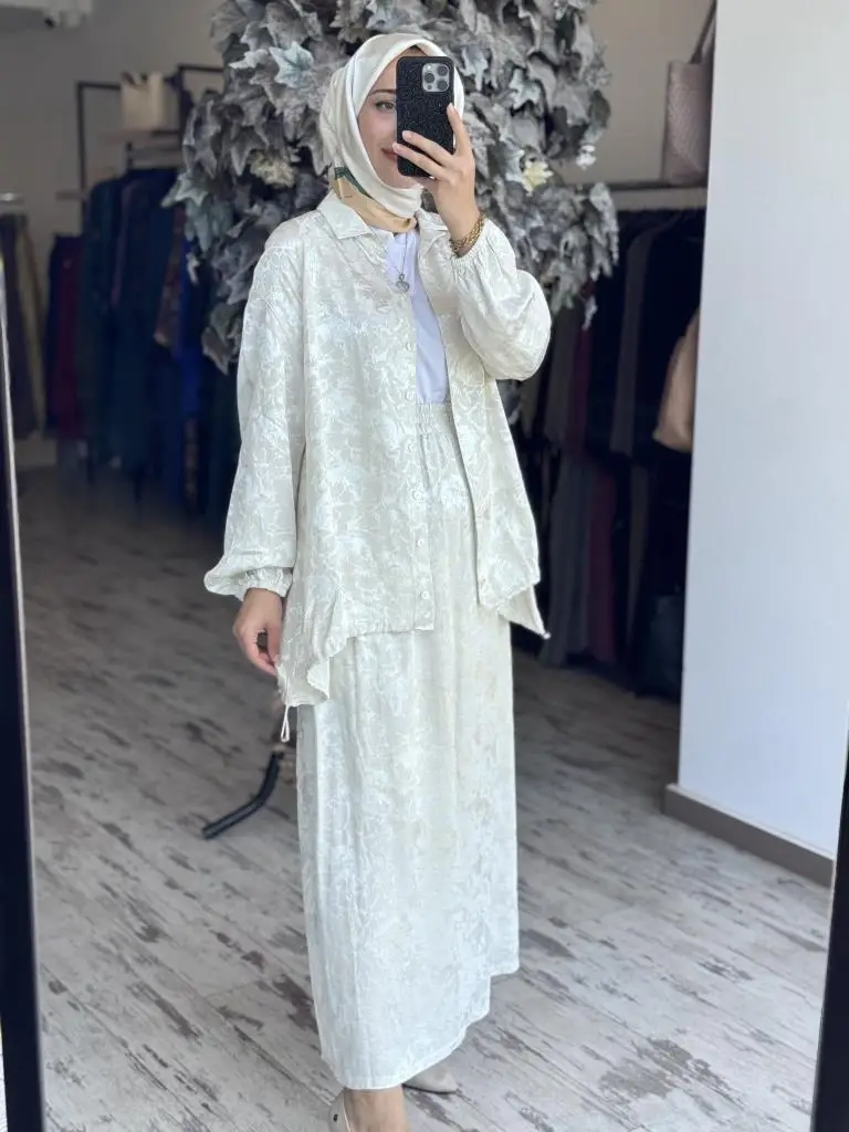 Almarwah Jakarlı Gömlek Etek Takım 202808