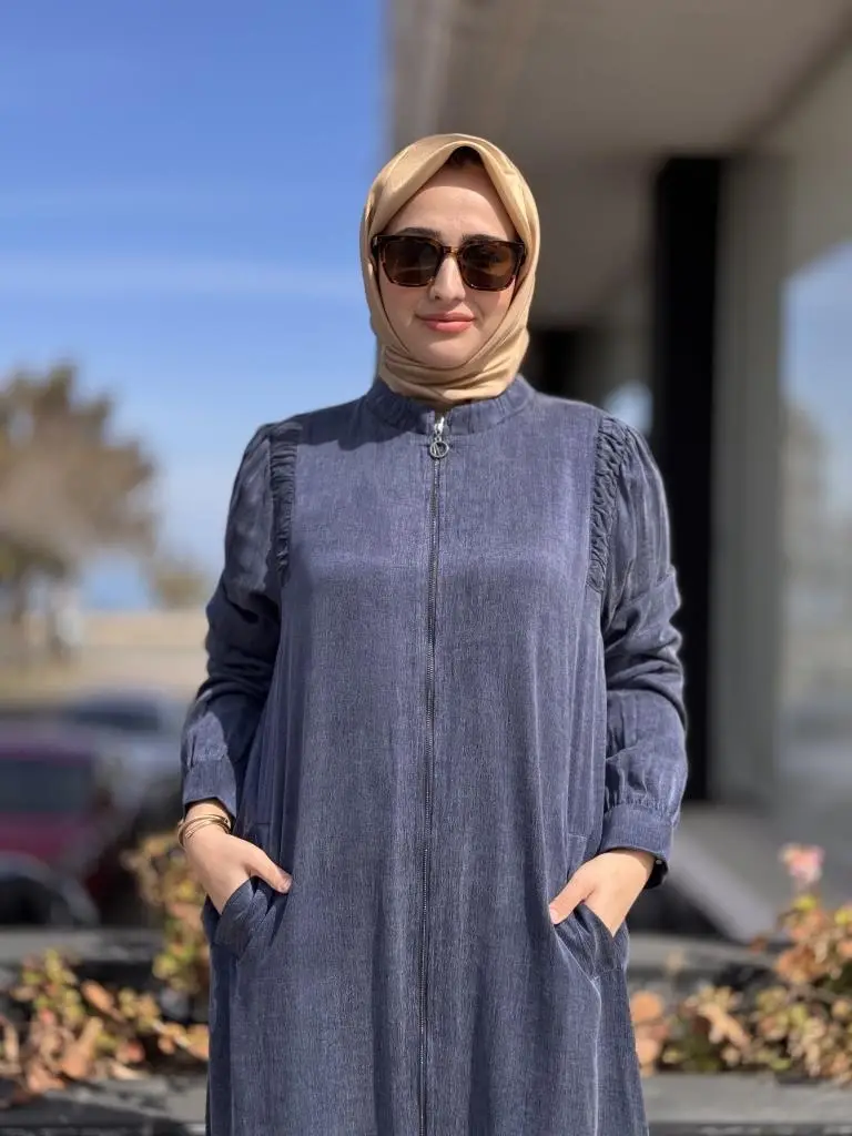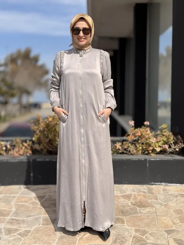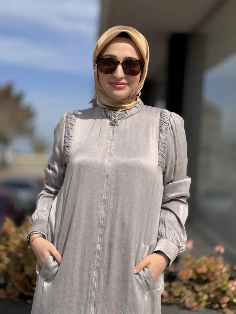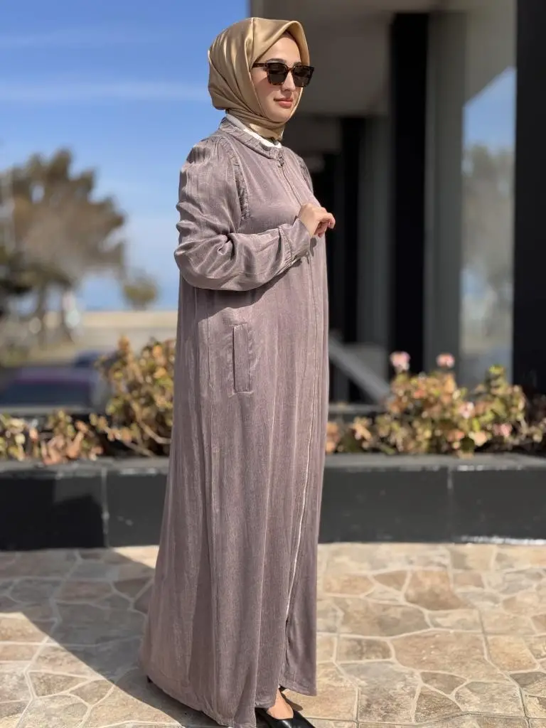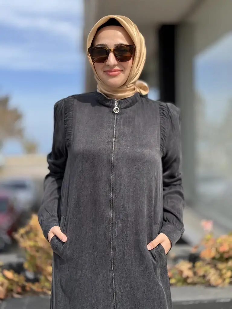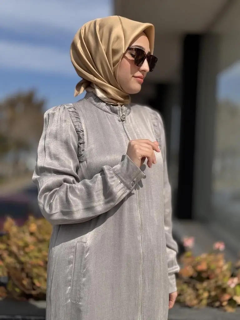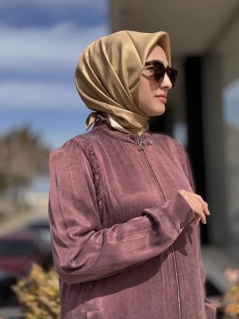 Almarwah Omuzları Nervür Detaylı Fermuarlı Cupra İpek Kap 404947