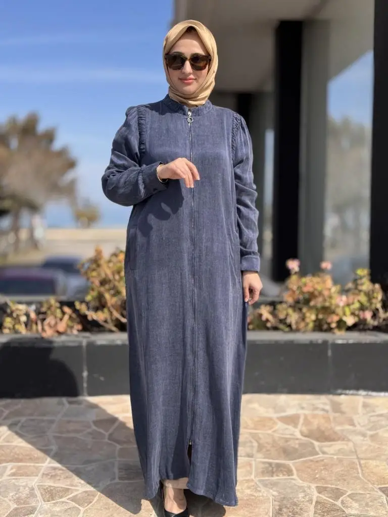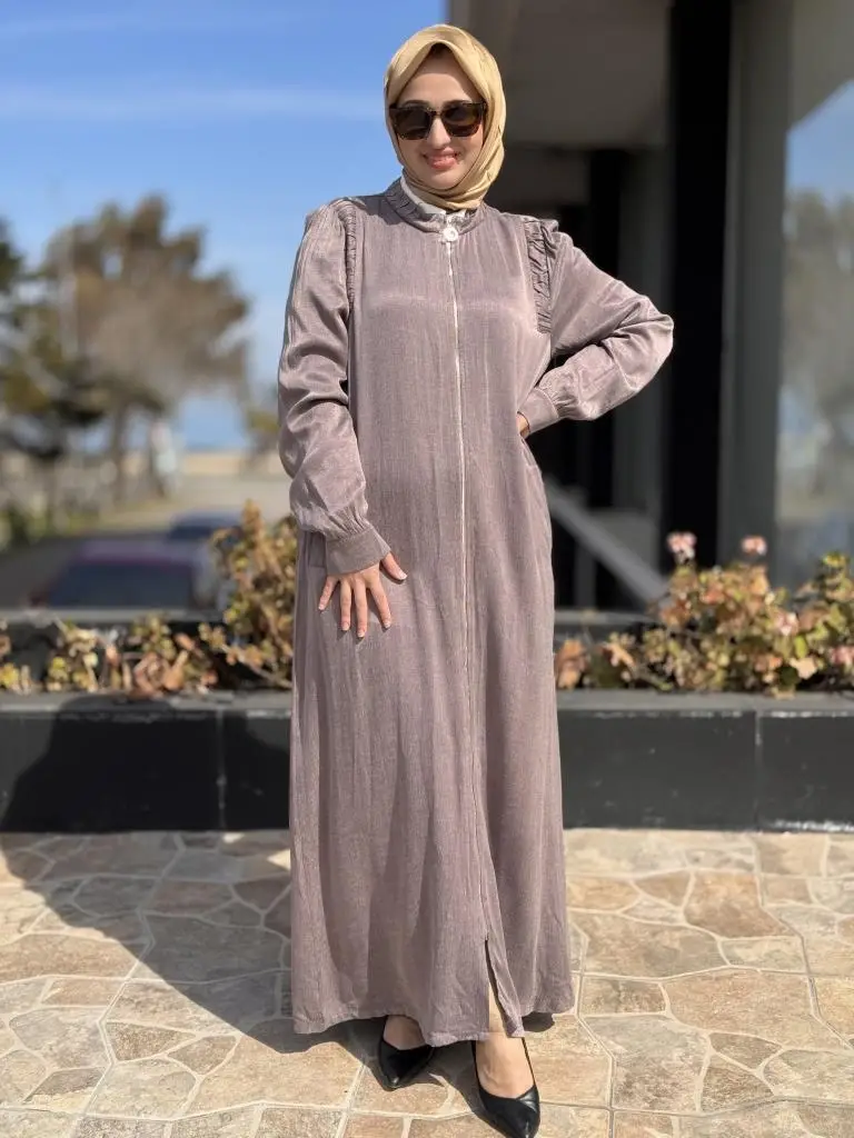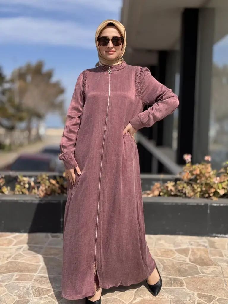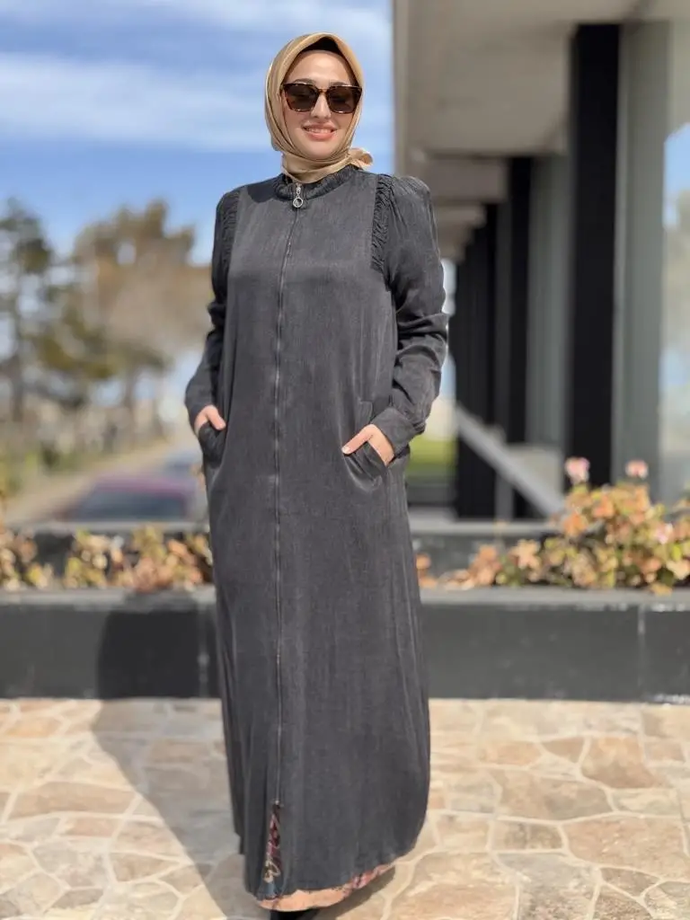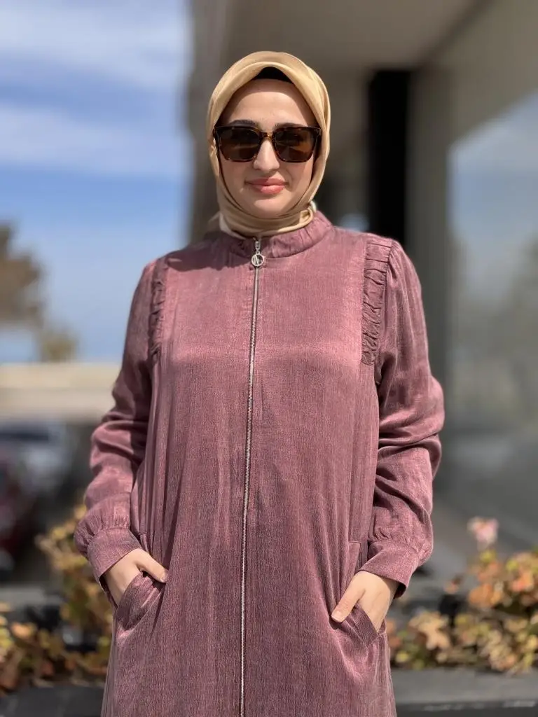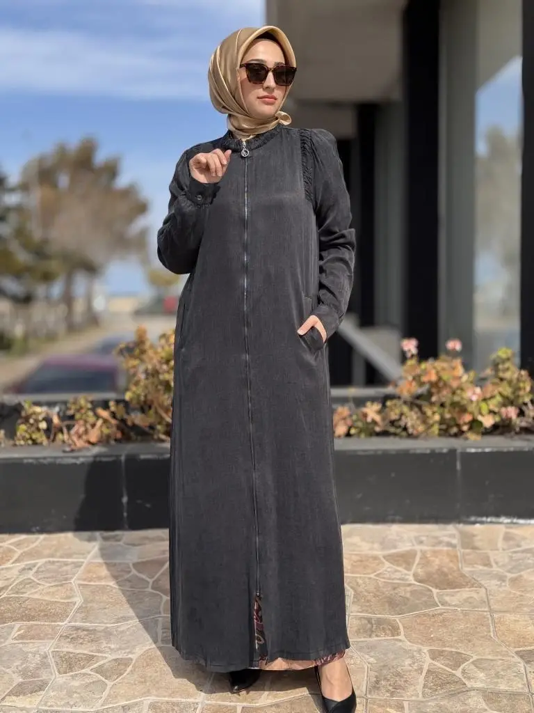 Almarwah Omuzları Nervür Detaylı Fermuarlı Cupra İpek Kap 404947