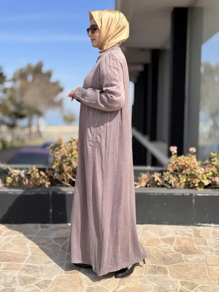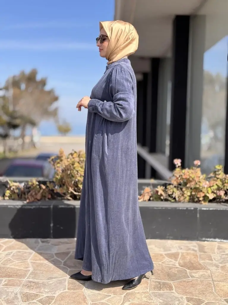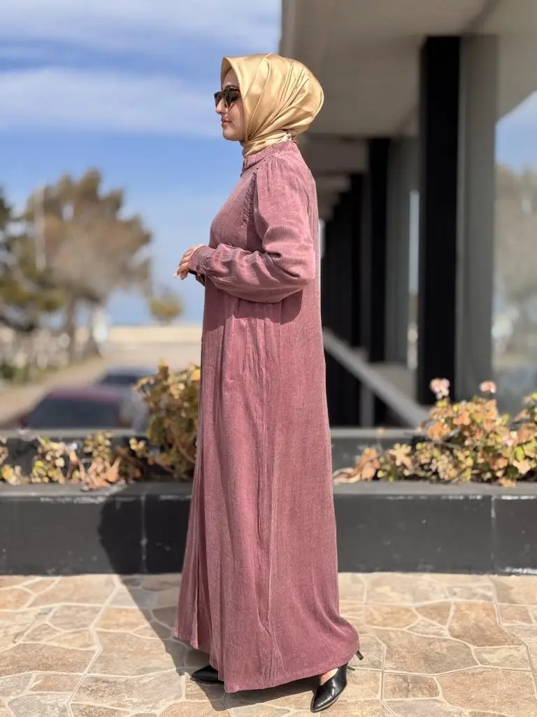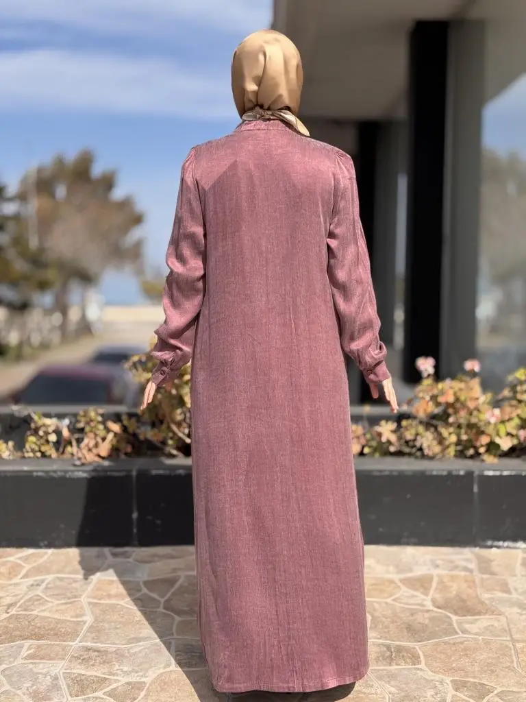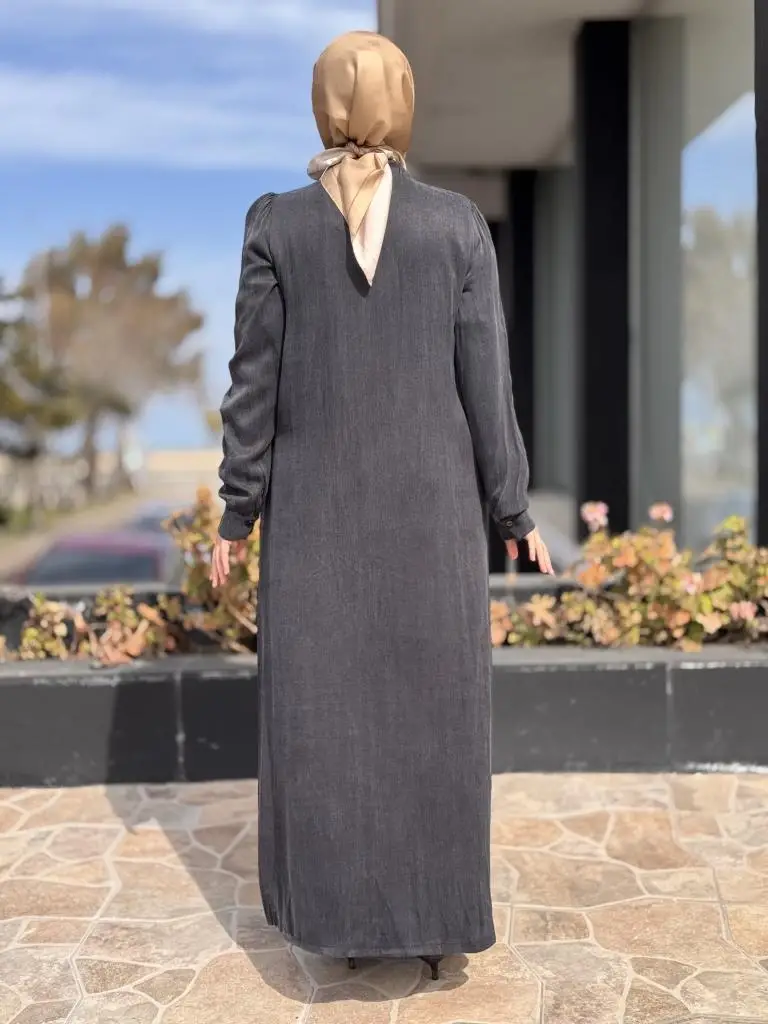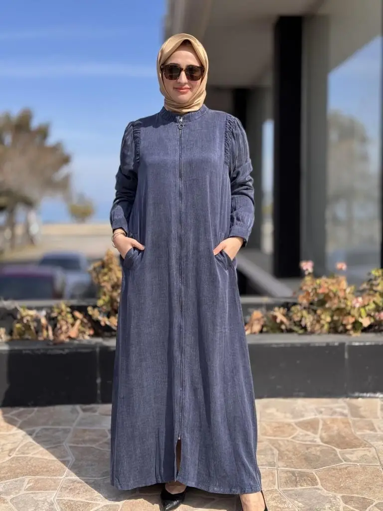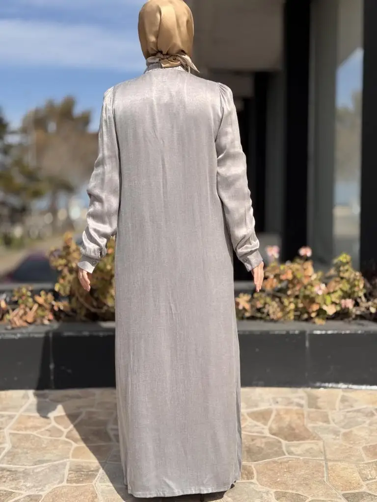 Almarwah Omuzları Nervür Detaylı Fermuarlı Cupra İpek Kap 404947