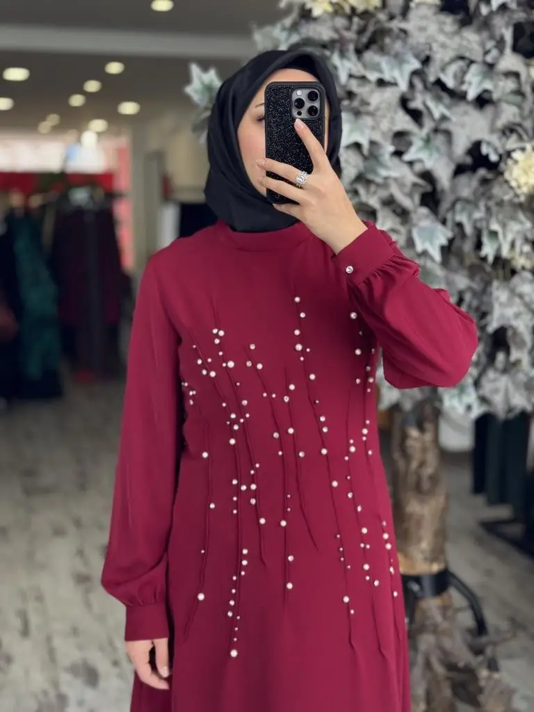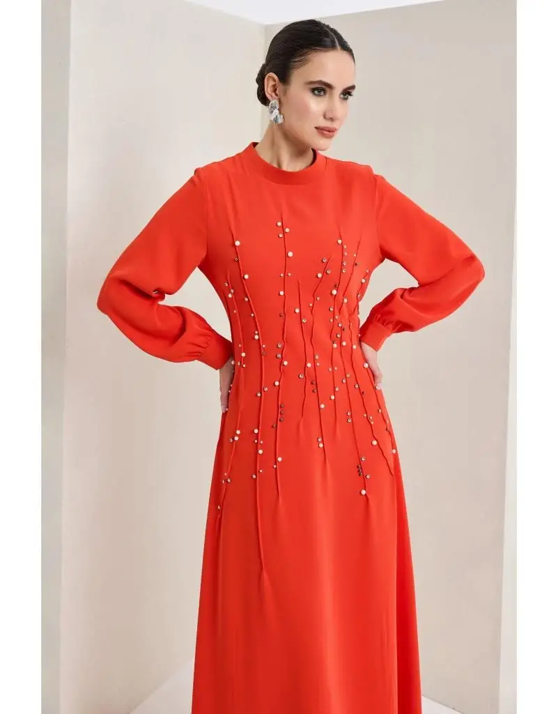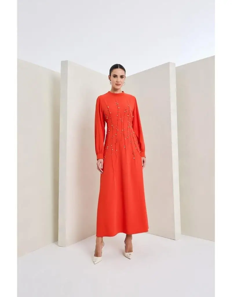Almarwah Önü İnci ve Taş Detaylı Abiye Elbise 90470
