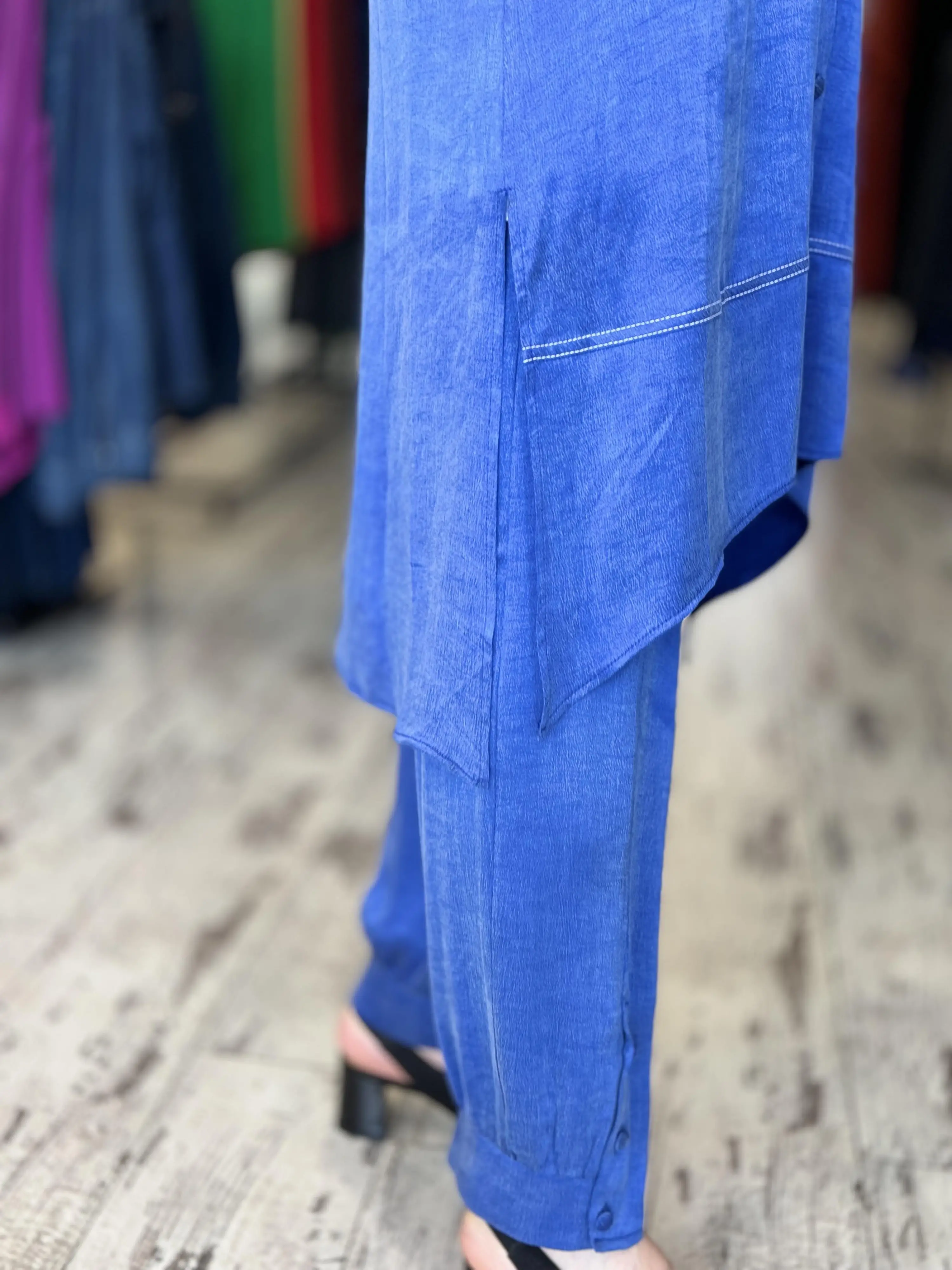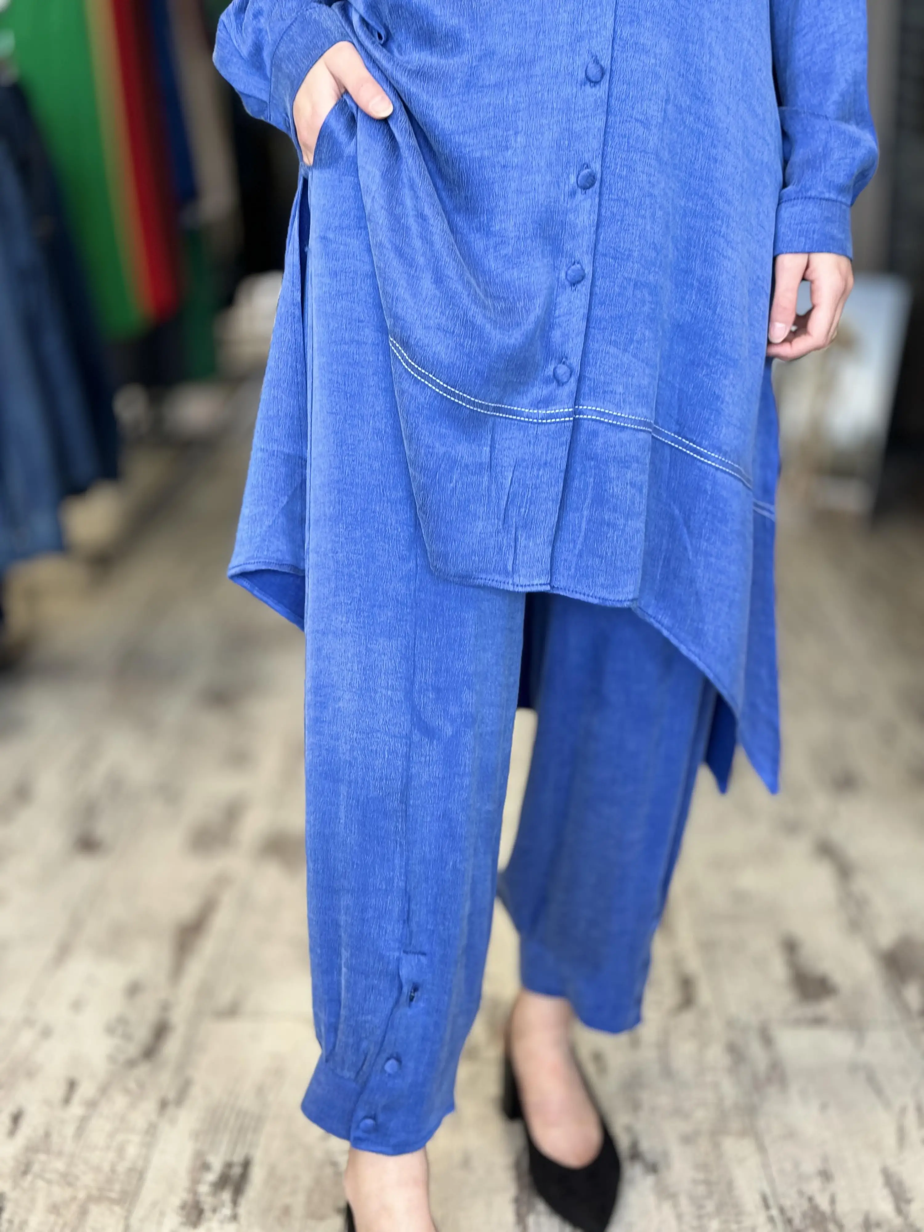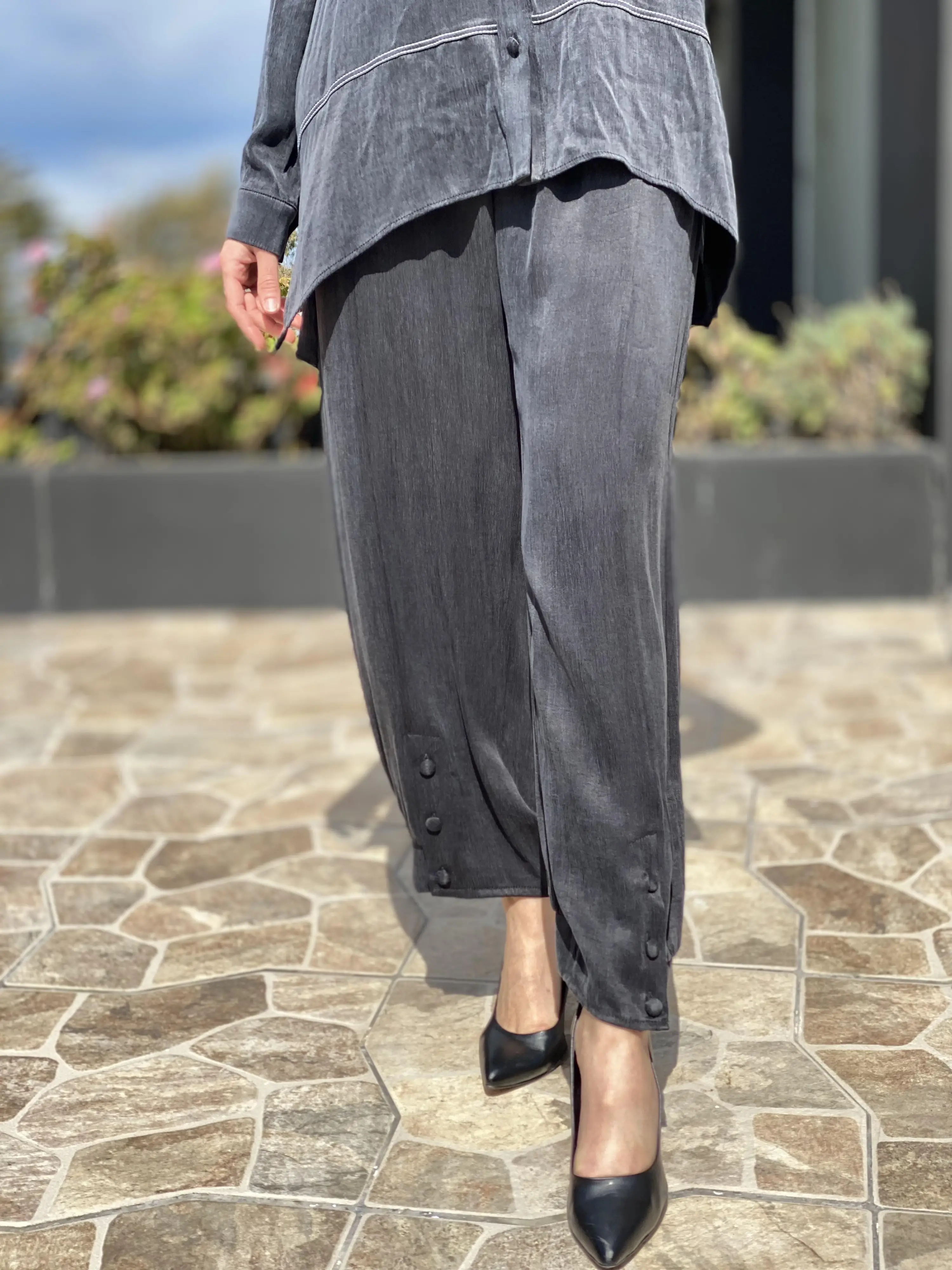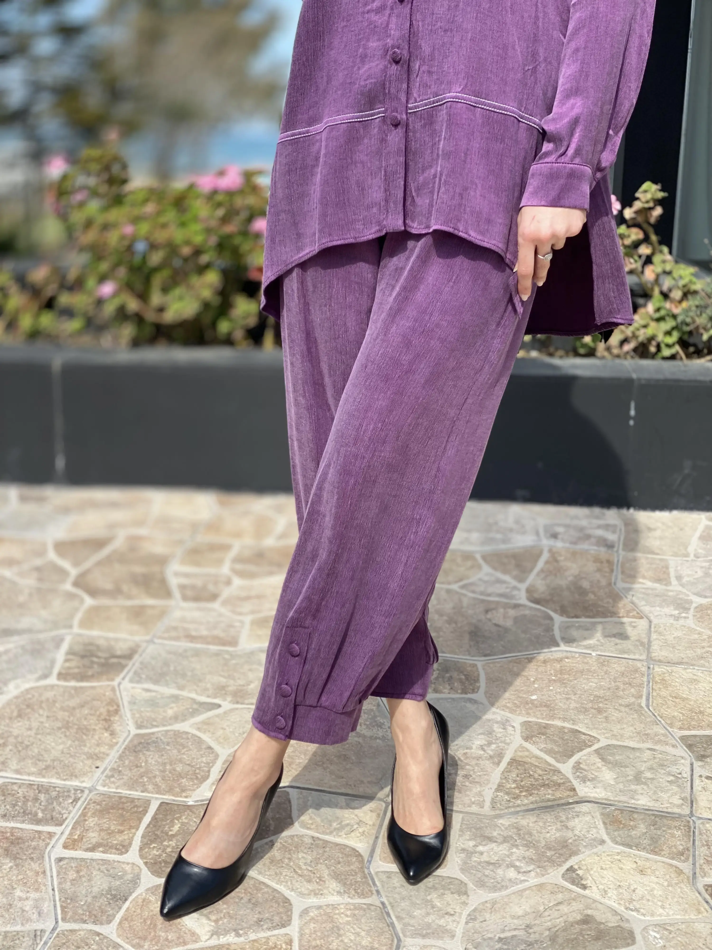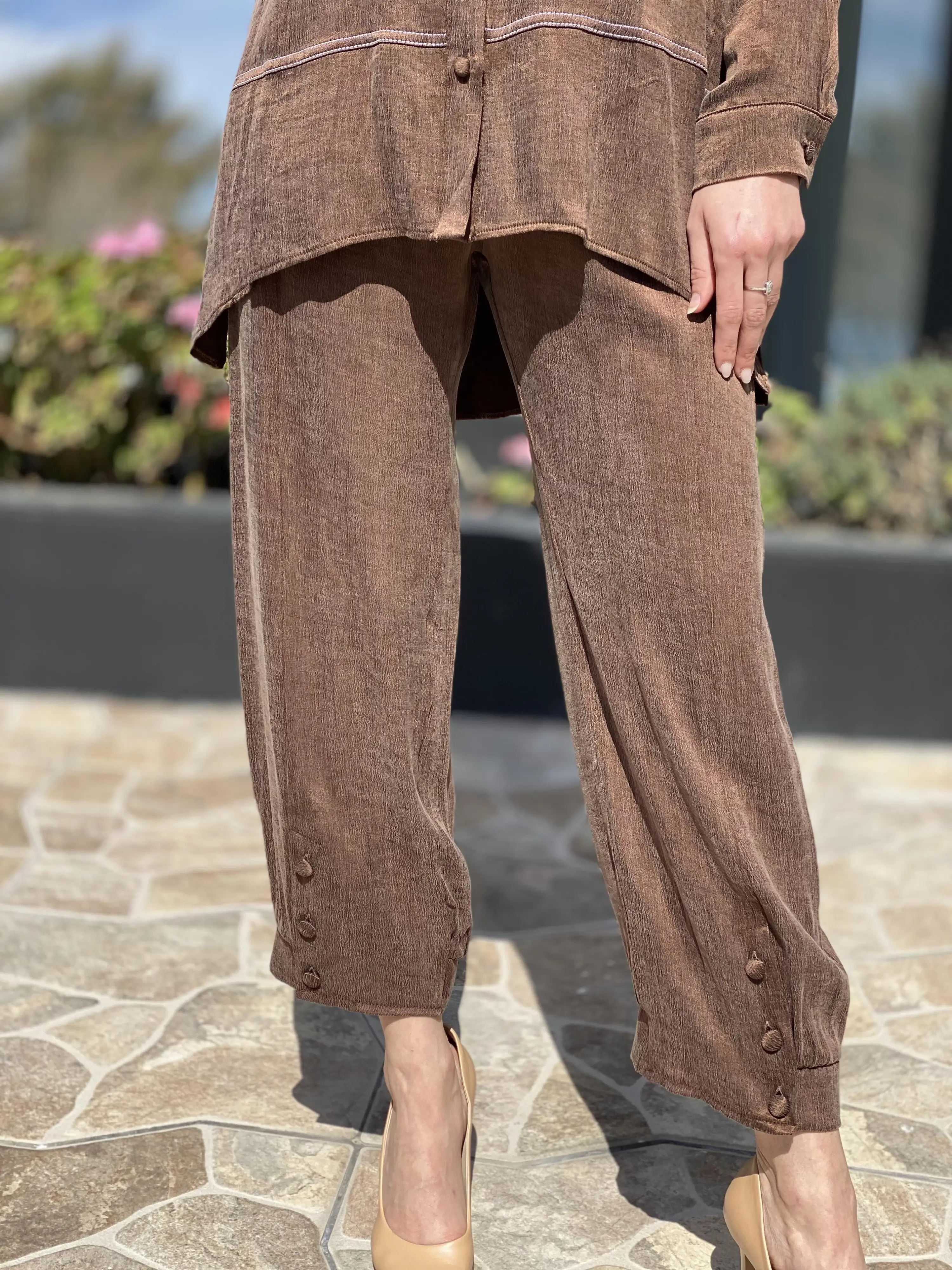 Almarwah Paçası Düğmeli Beli Lastikli Cupra İpek Pantolon 606045