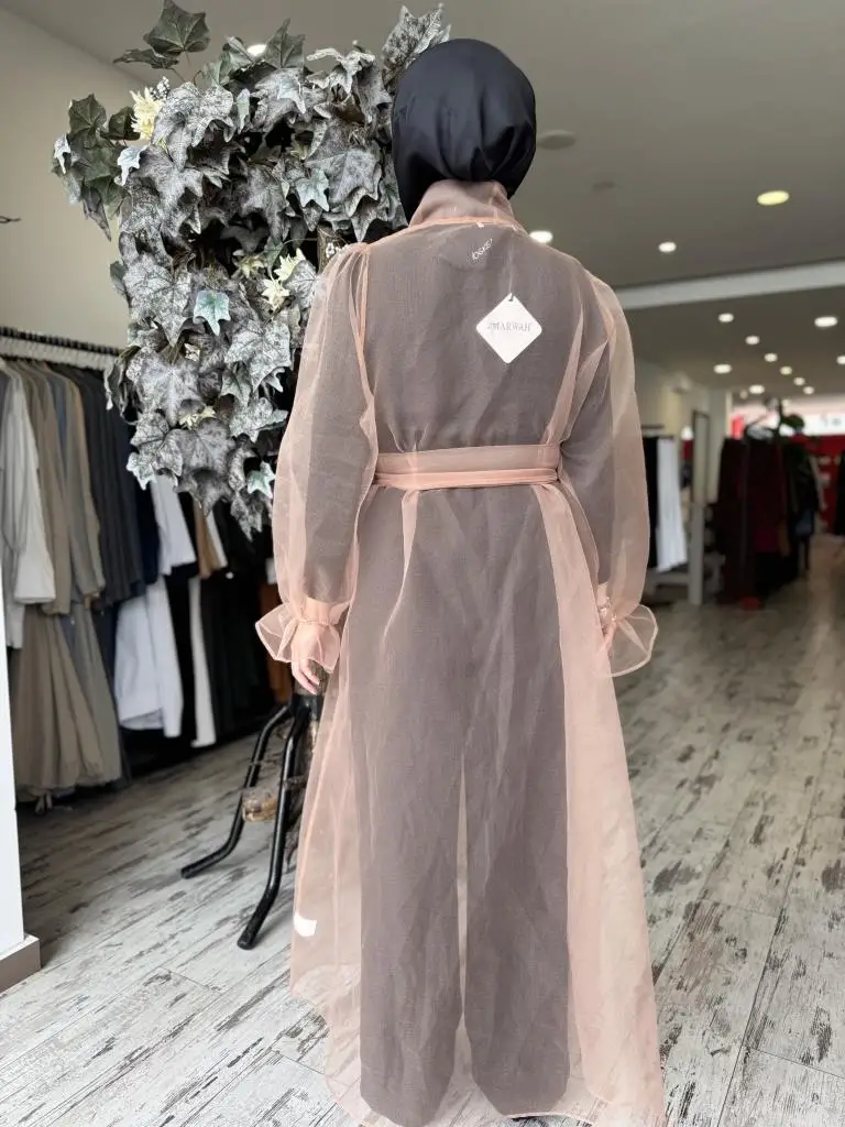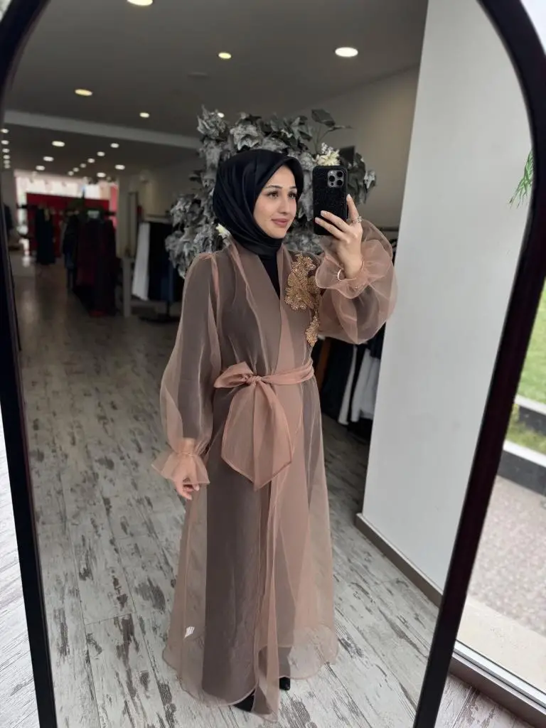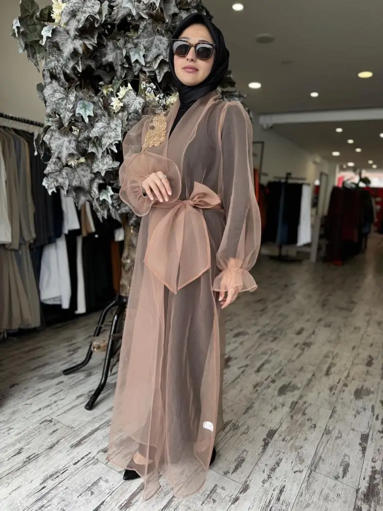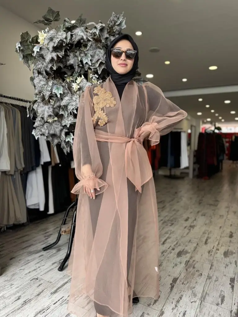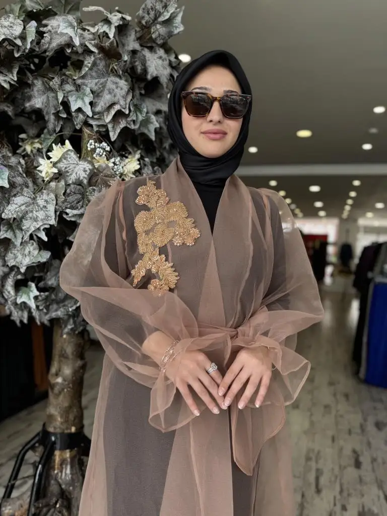 Almarwah Yakası Boncuk İşlemeli Organze Kap 90518