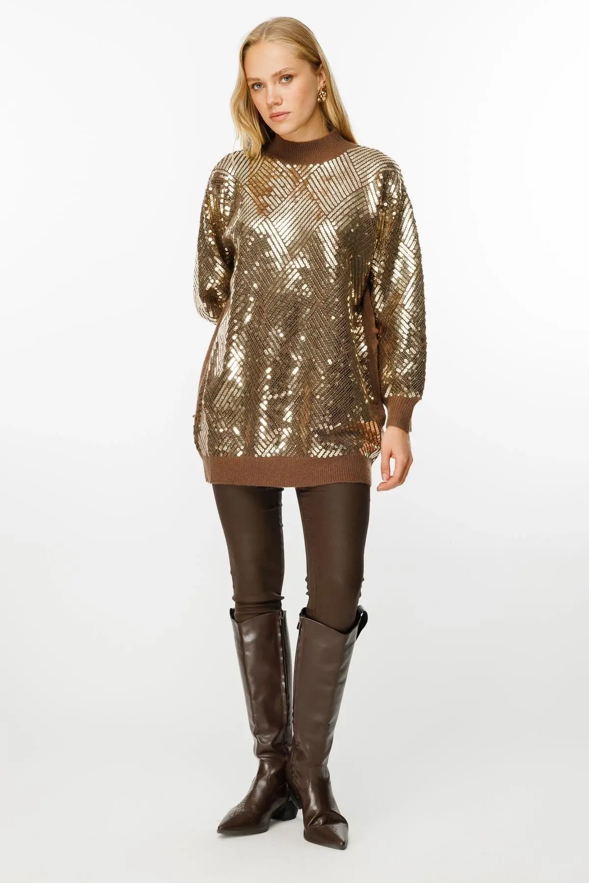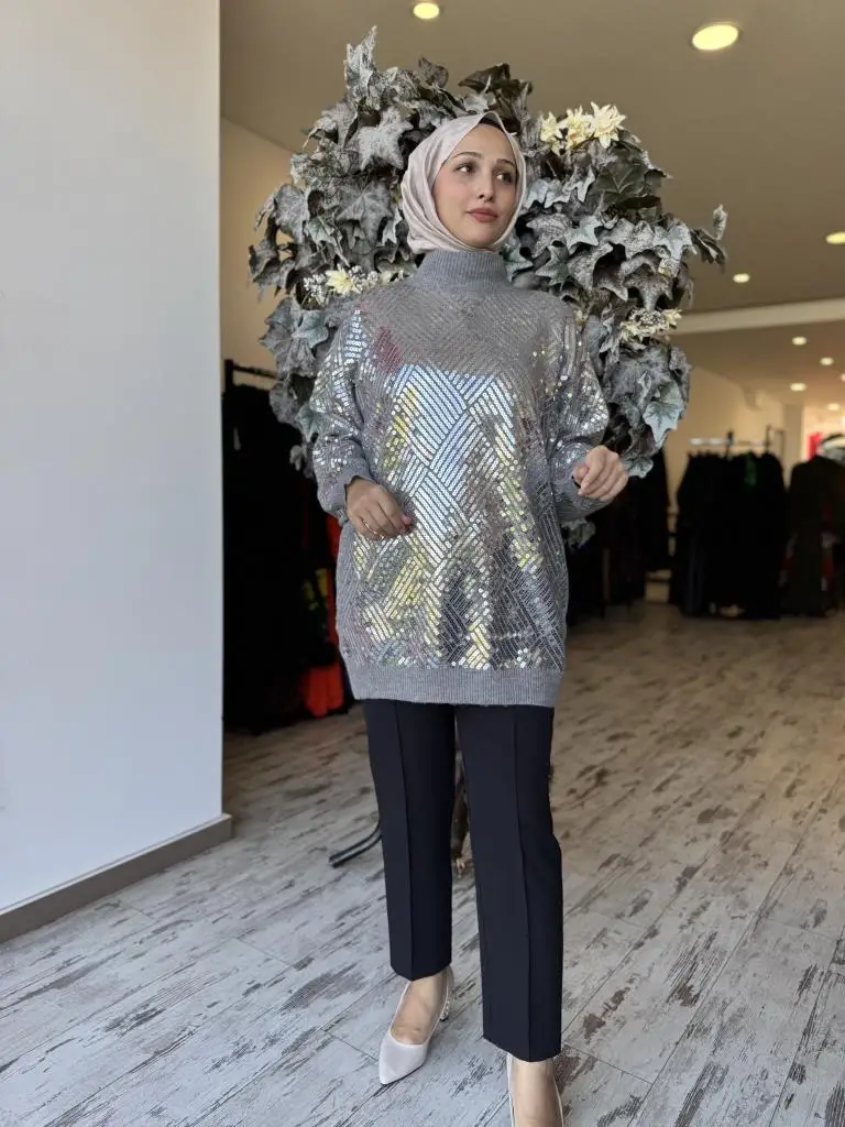 Ghisa Baklava Payet Detaylı Triko Tunik G241519