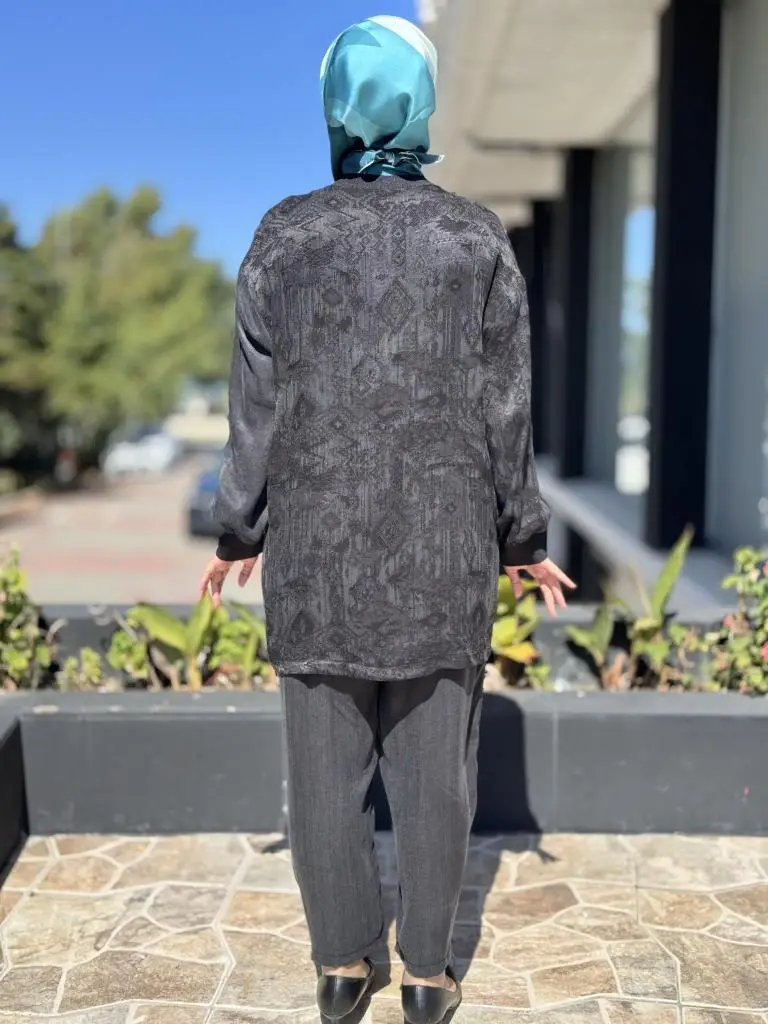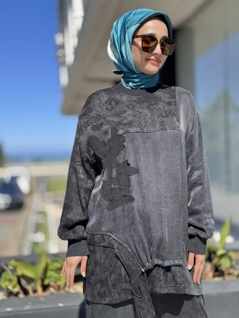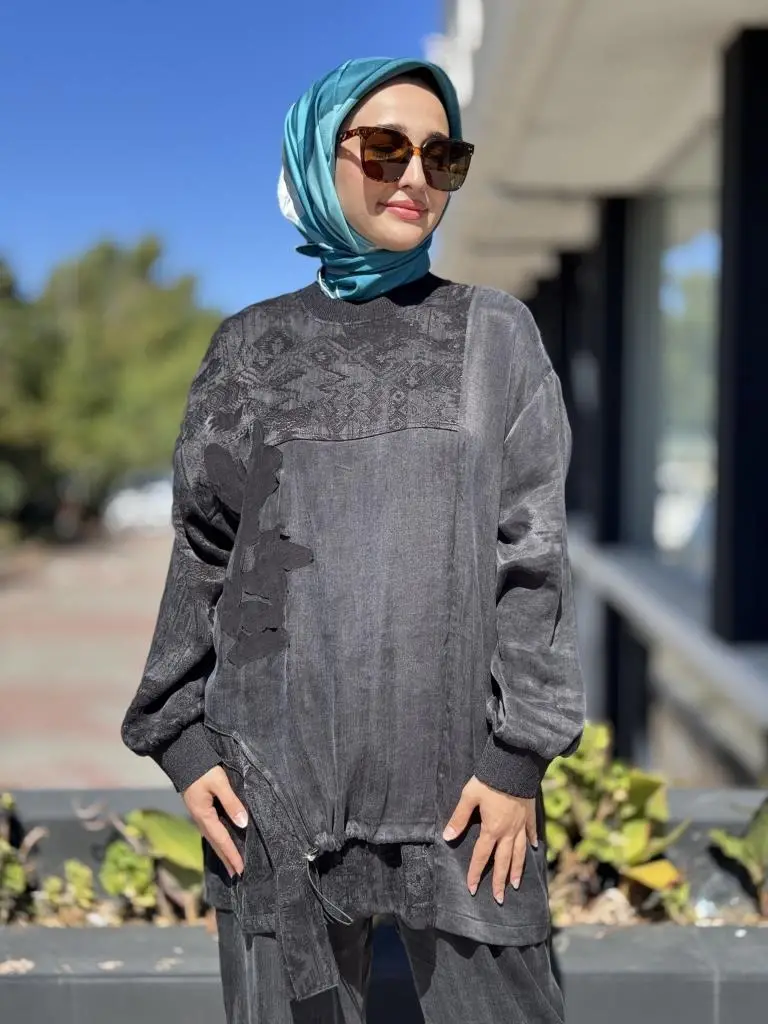 Ghisa Büzgü ve Parça Detaylı Cupra İpek Tunik Pantolon Takım 4049