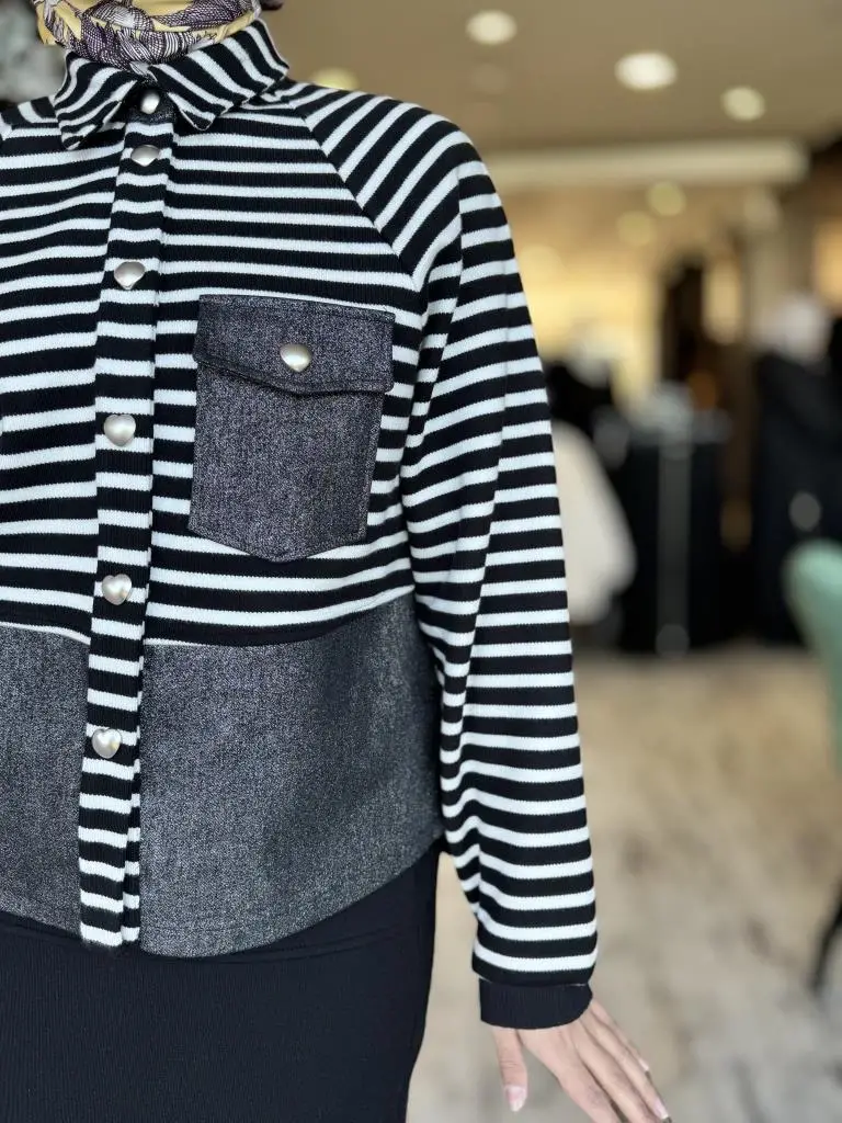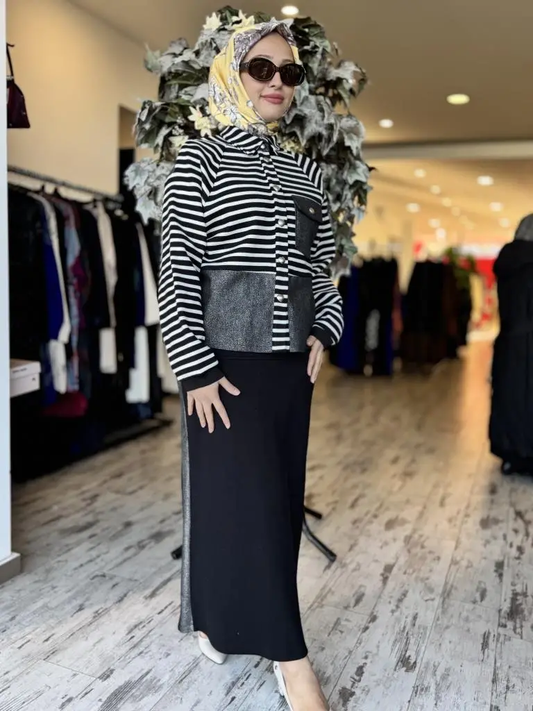 Ghisa Çizgili Çıtçıtlı Bluz Etek Takım G3015