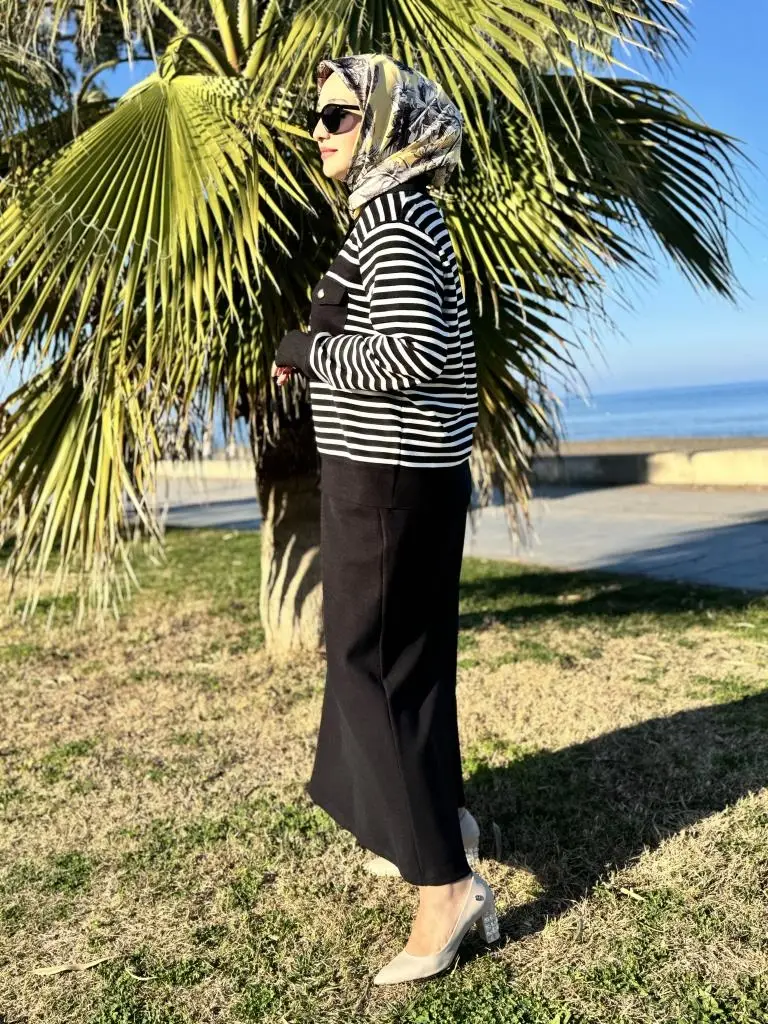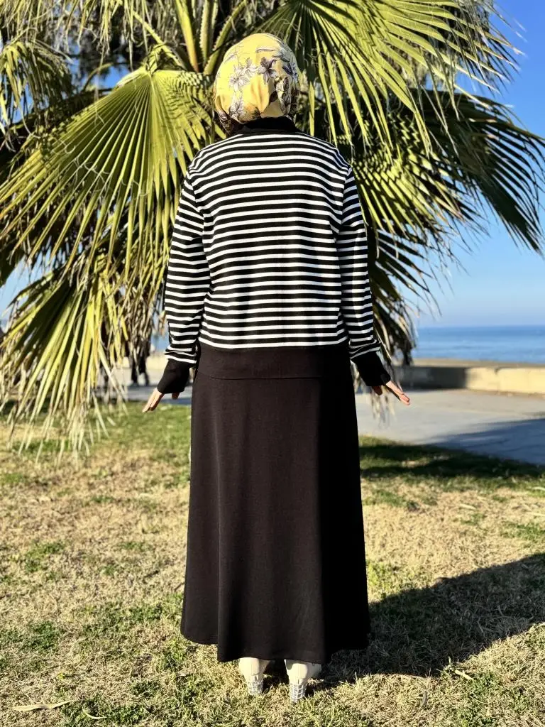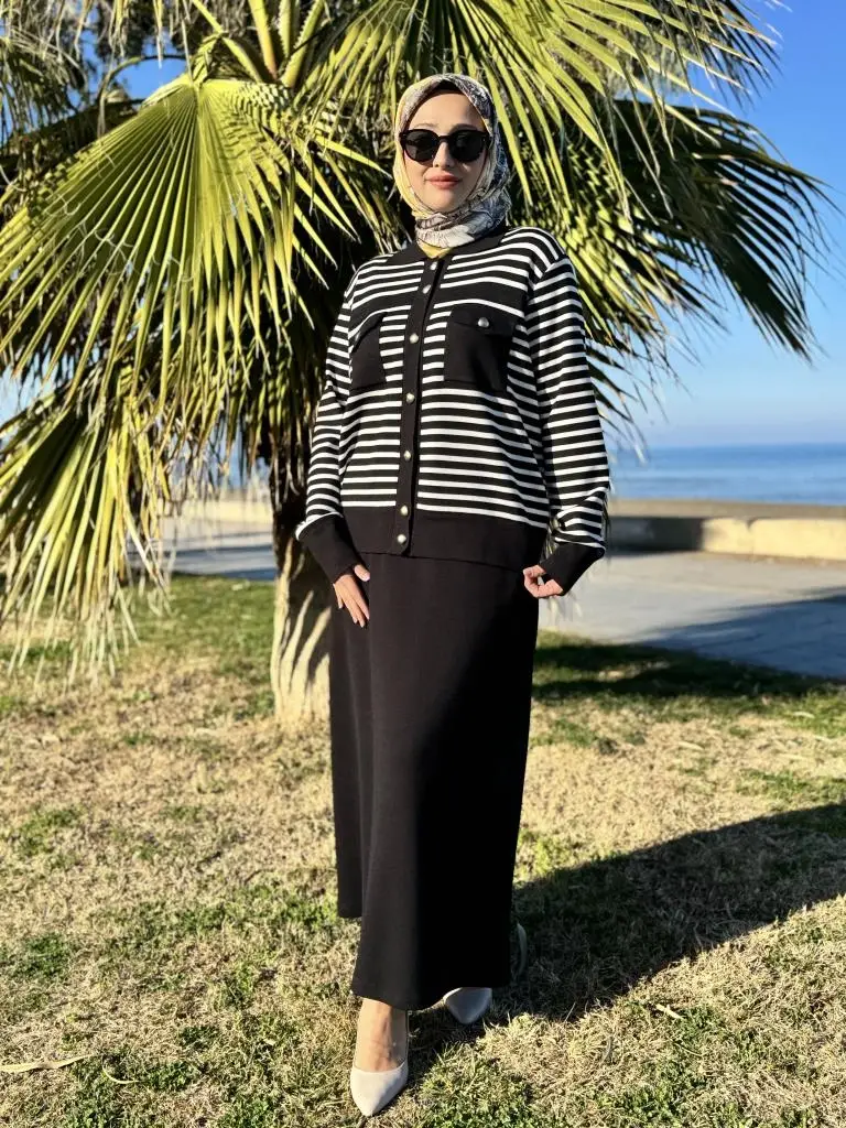 Ghisa Çizgili Yün Triko Ceket Etek Takım 3996