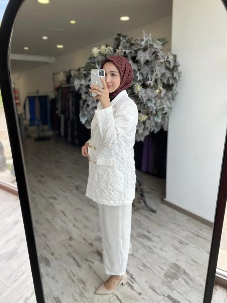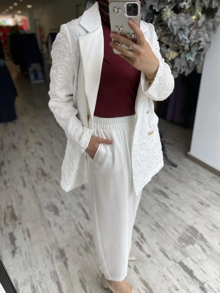 Ghisa Kruvaze Brokar Ceket Saten Pantolon Takım 3110