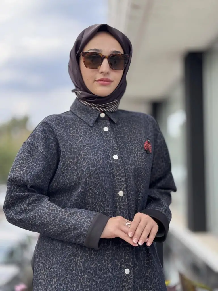 Ghisa Leopar Detaylı Denim Çıtçıtlı Kap/Ceket Pantolon Takım G4103