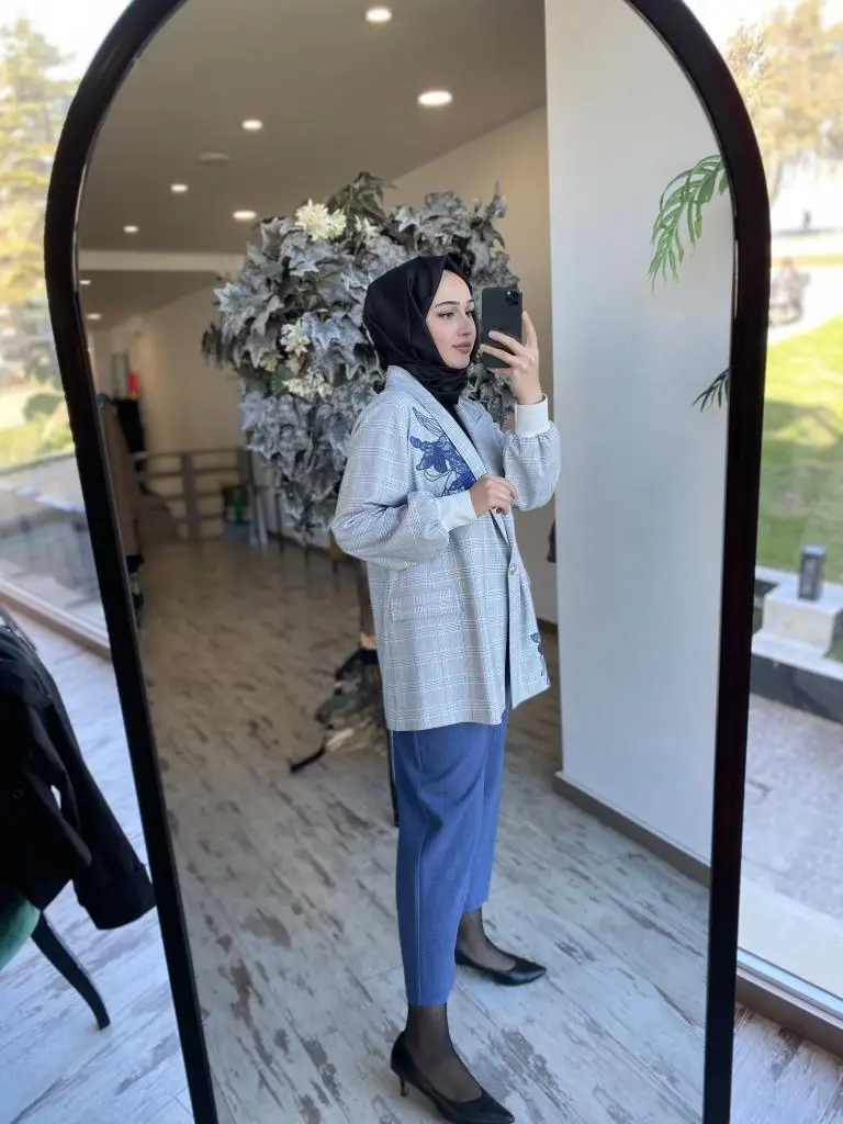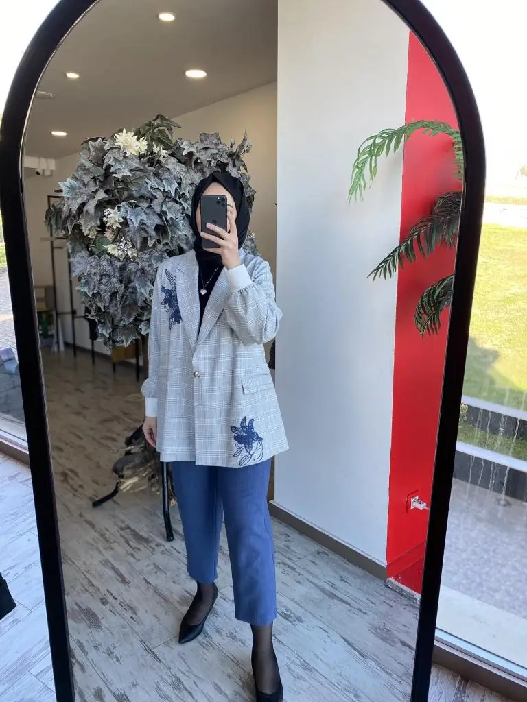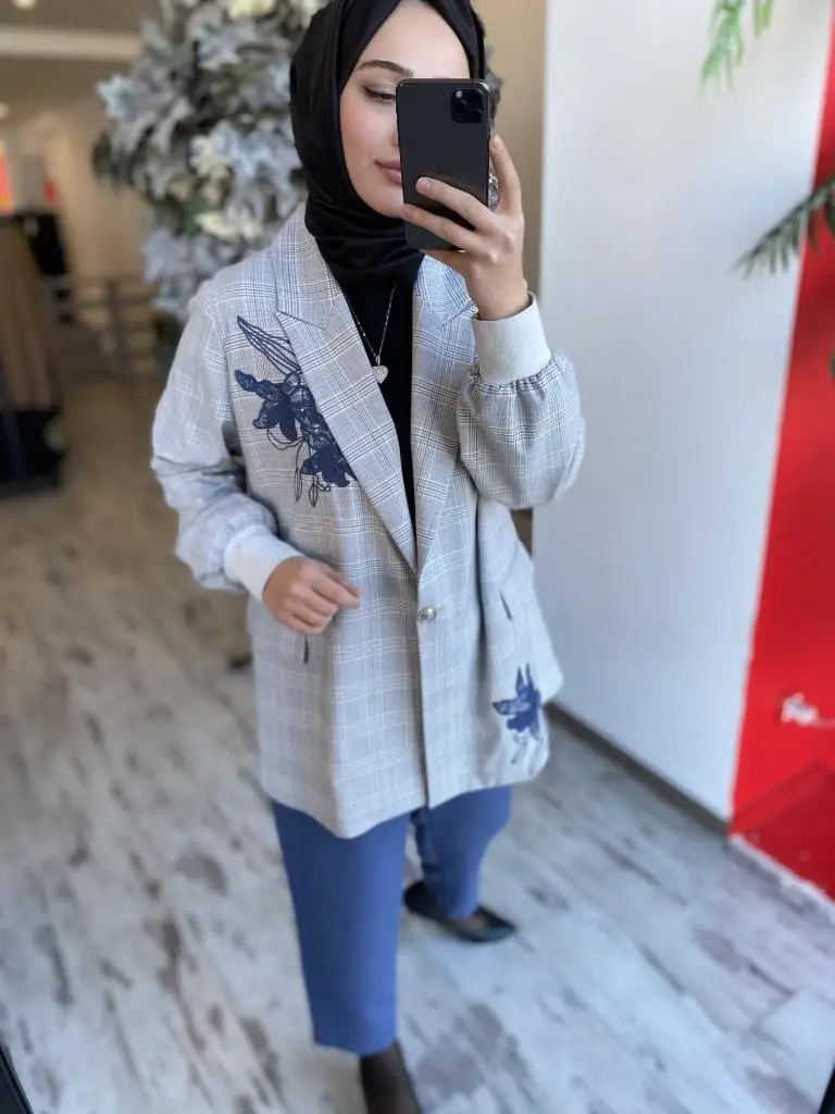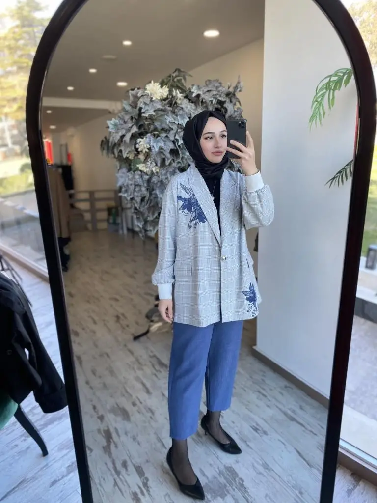 Ghisa Nakış İşlemeli Kareli Ceket Pantolon Takım 3940