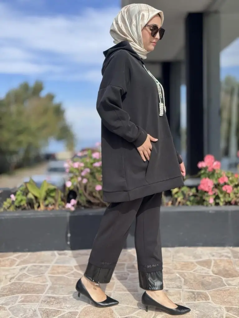 Ghisa Önü Krital Taş Aksesuarlı Tunik Pantolon Takım G4142