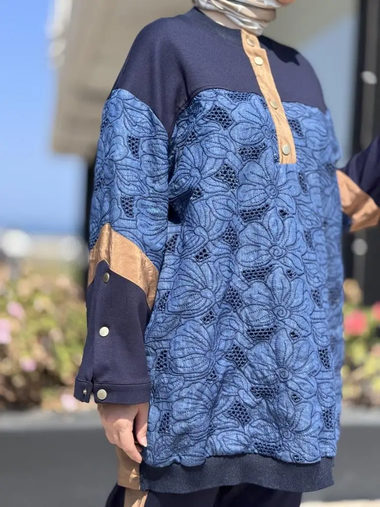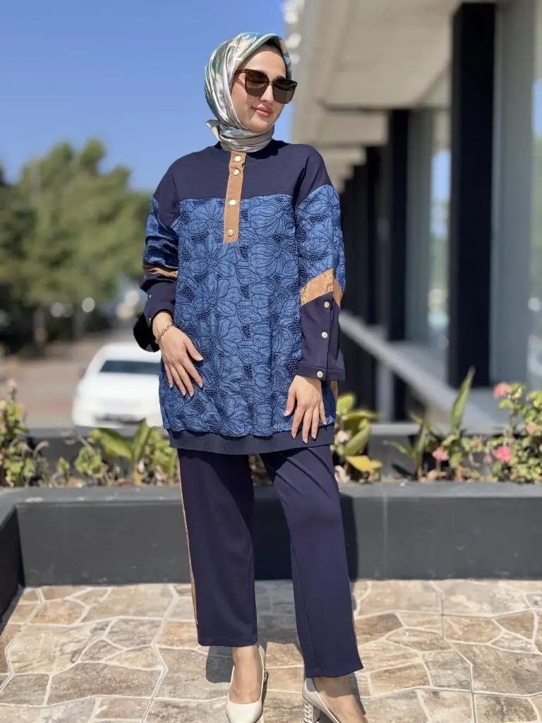 Ghisa Parça Kumaş Detaylı Tunik Pantolon Takım 4025