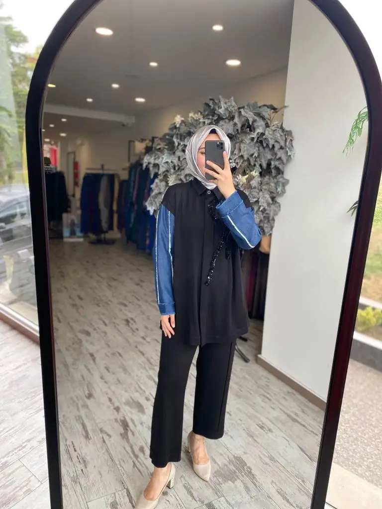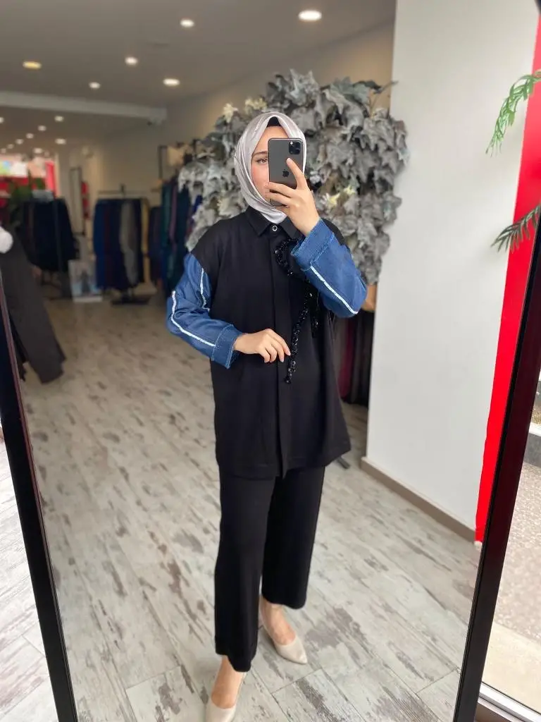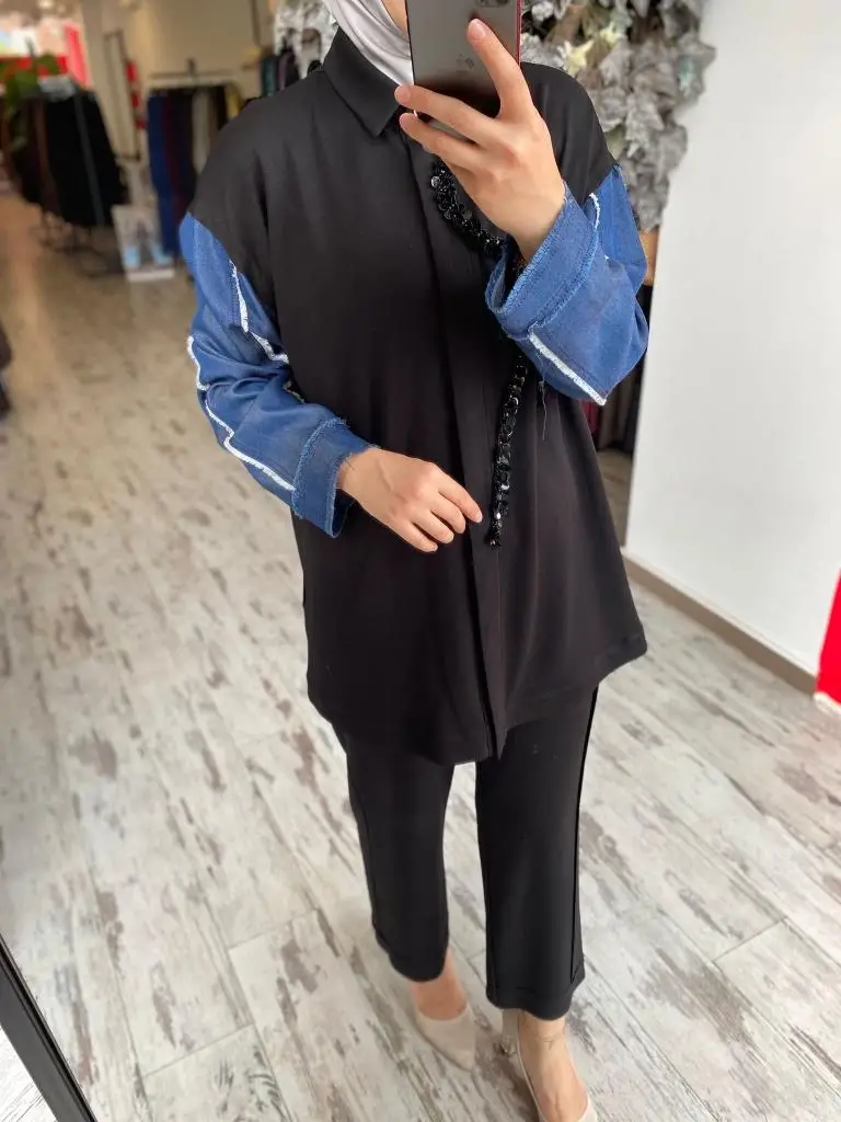Ghisa Payet ve Kot Detaylı Kap Pantolon Takım 4943