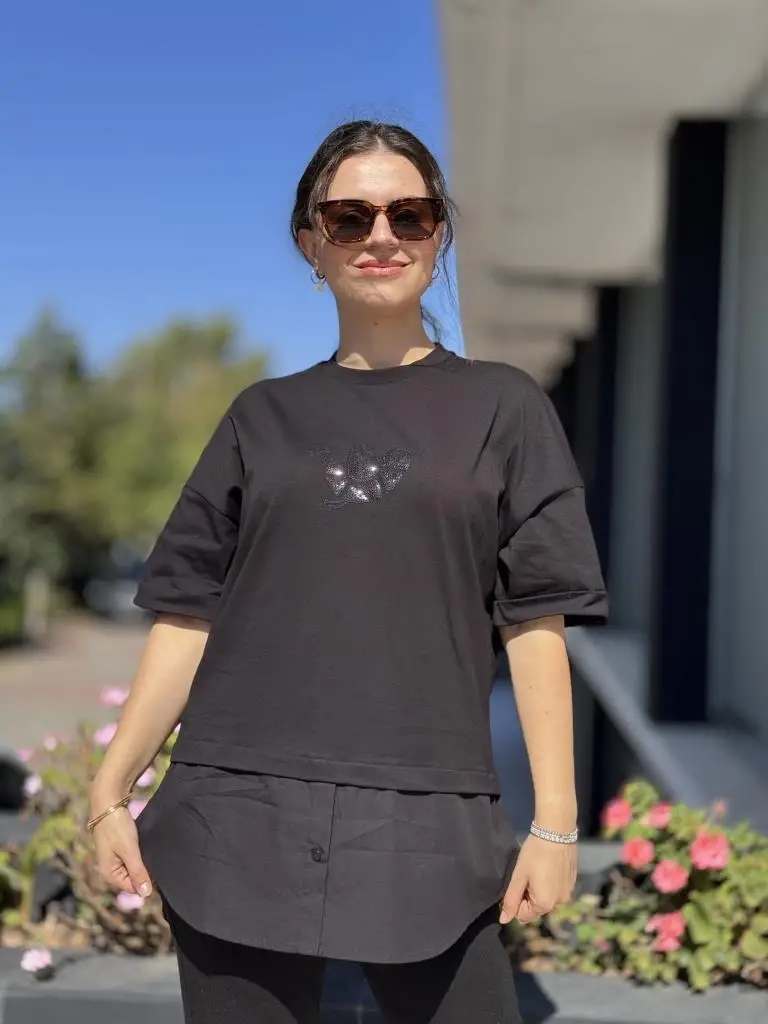 Ghisa Poplin Detaylı Kısa Kol Tunik Tshırt G1018
