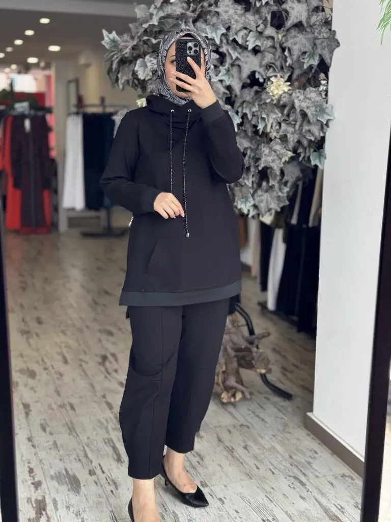 Gırasolem Luxury Kapüşonlu Yanları Fermuarlı Tunik Pantolon Takım