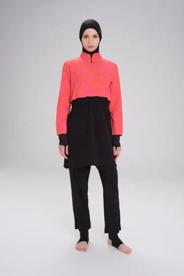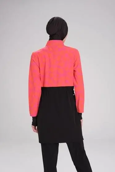 Haşema Esila Serisi Fuşya-Turuncu-Siyah Tam Tesettür Tek Mayo Üstü HSM2934