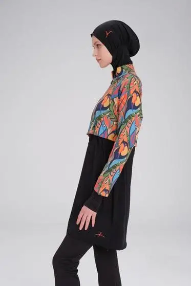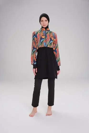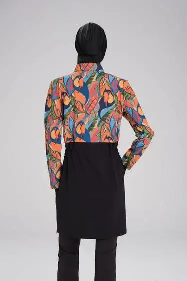 Su itici apreli, hafif elastanlı gövde kumaşı; tesettür mayonuzun ağırlık yapmaması ve en hızlı sürede kuruması için özenle seçildi.