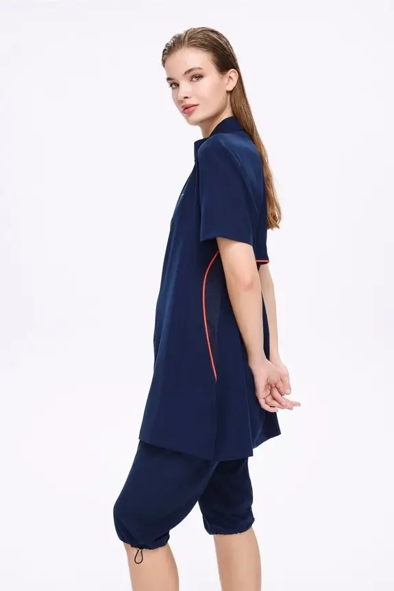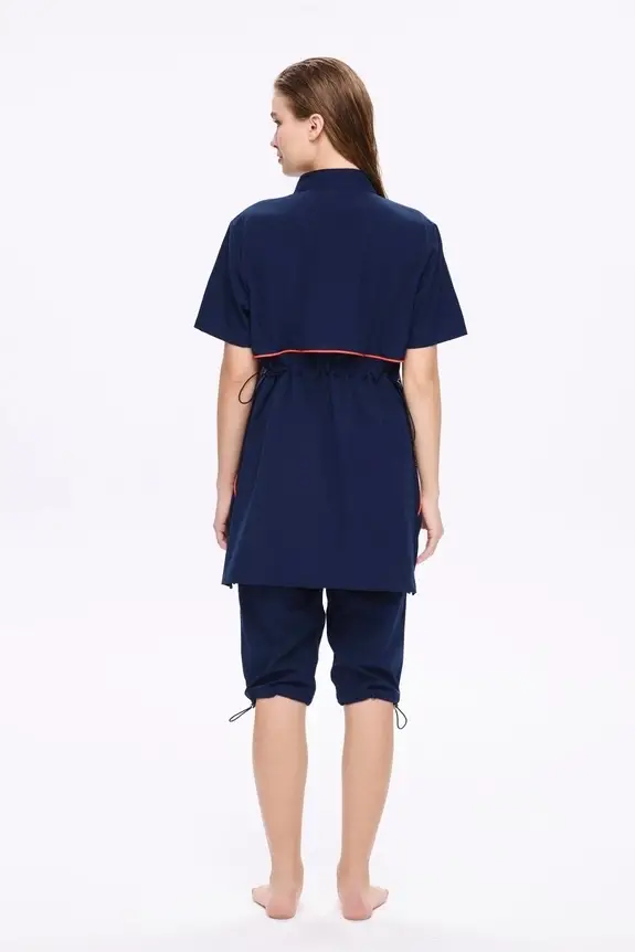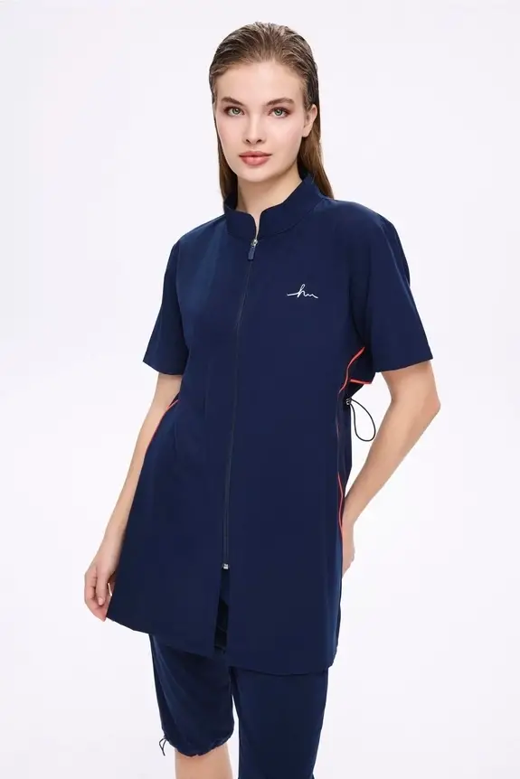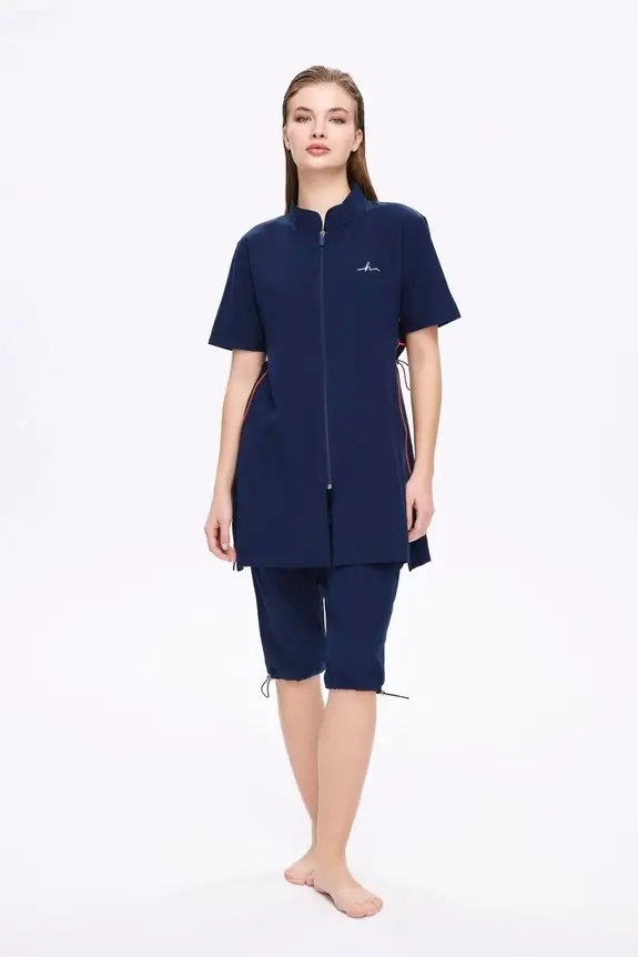 Haşema Fermuarlı Lacivert Esnek Dokuma 5 Parça Yarı Kapalı Mayo Takımı HSM5011