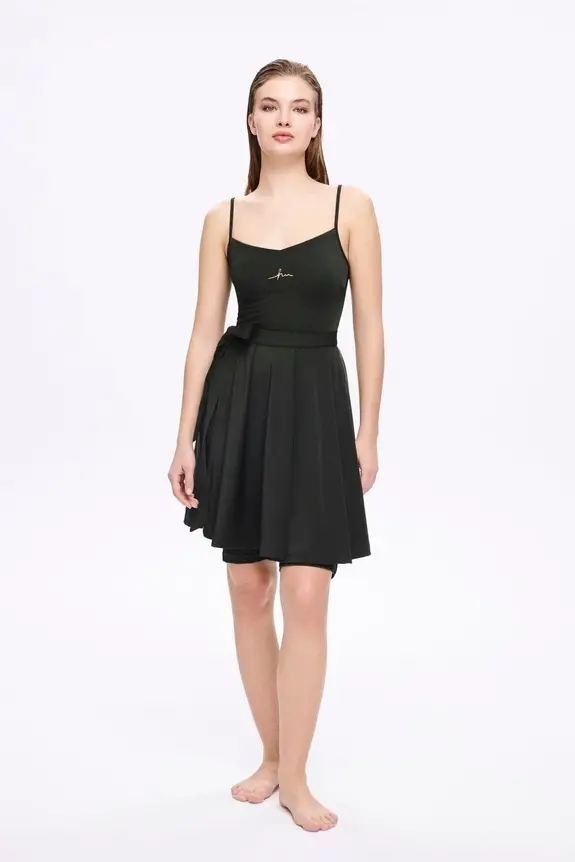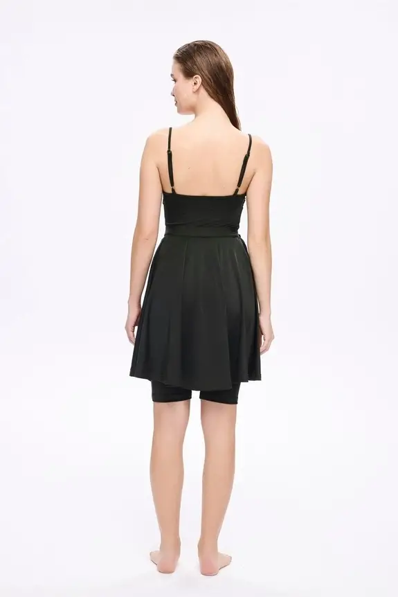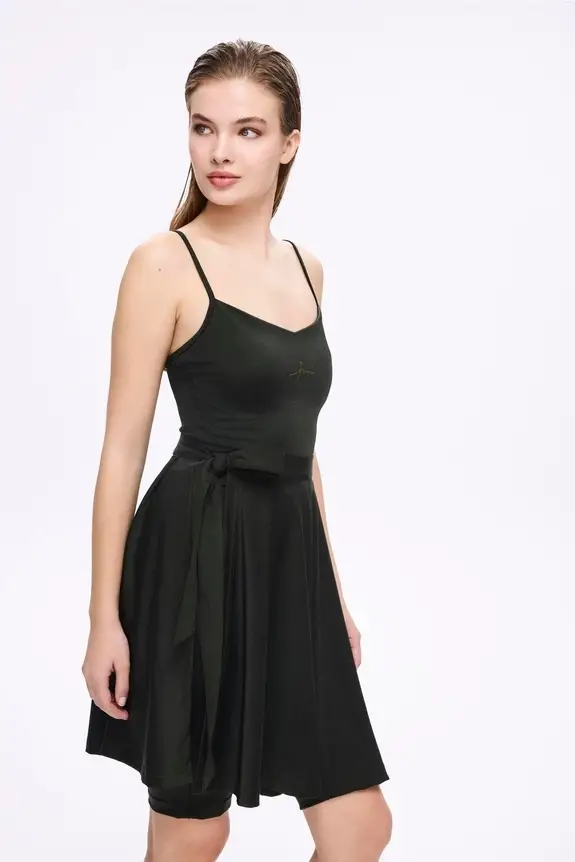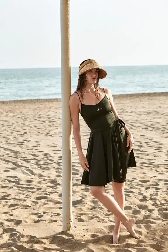 Haşema Parlak Kumaş Terra Yeşil 3 Parça Yarı Kapalı Mayo-Tulum Takımı HSM5053
