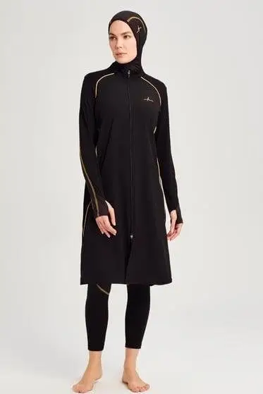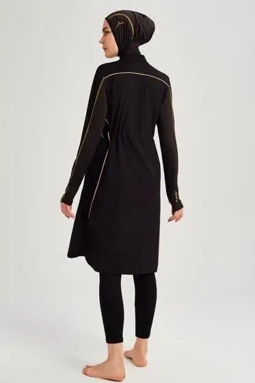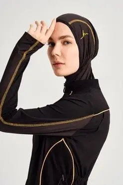 Haşema Performans Petek Doku 5 Parça Siyah-Sarı Tesettür Mayo HSM2002
