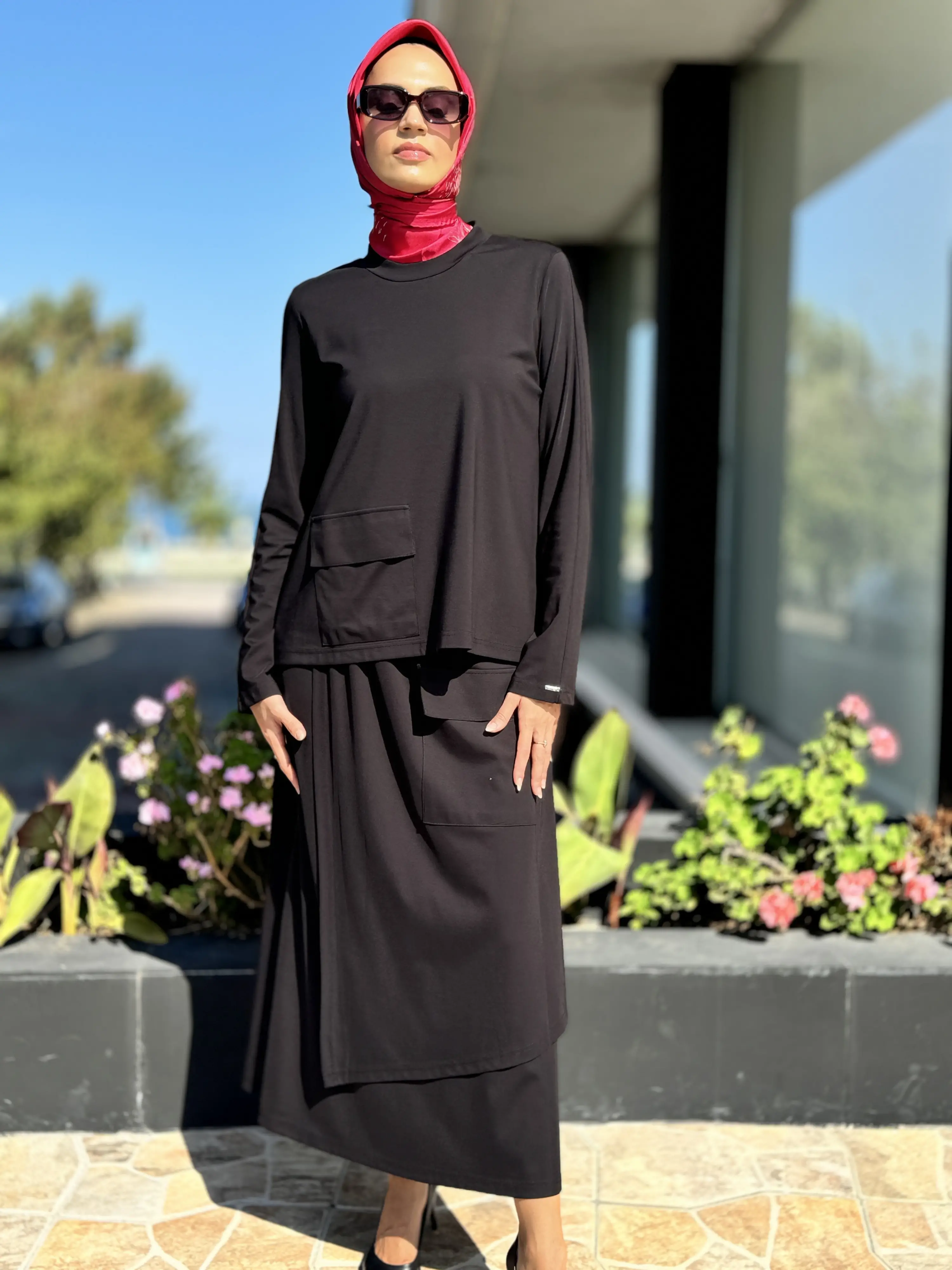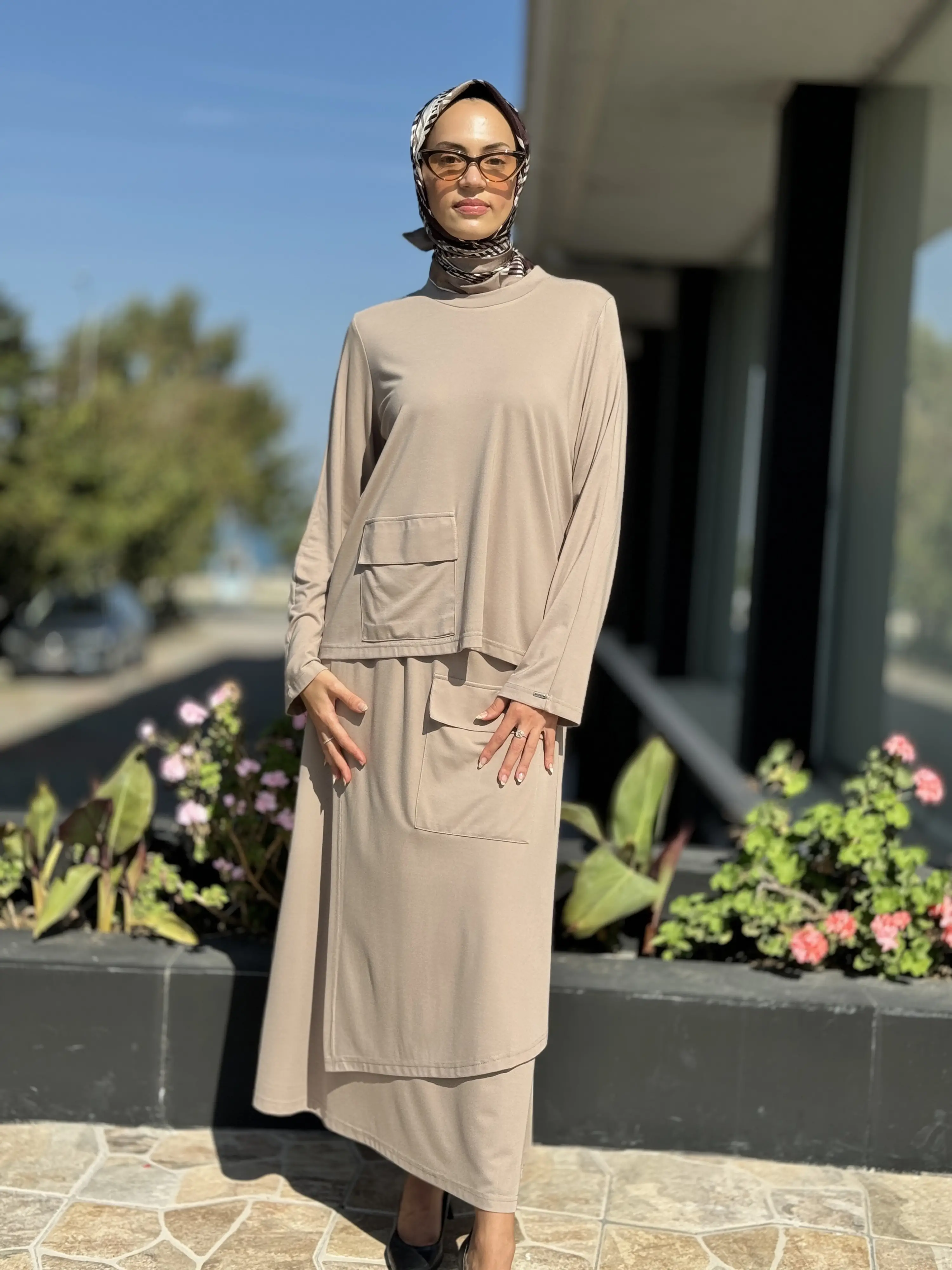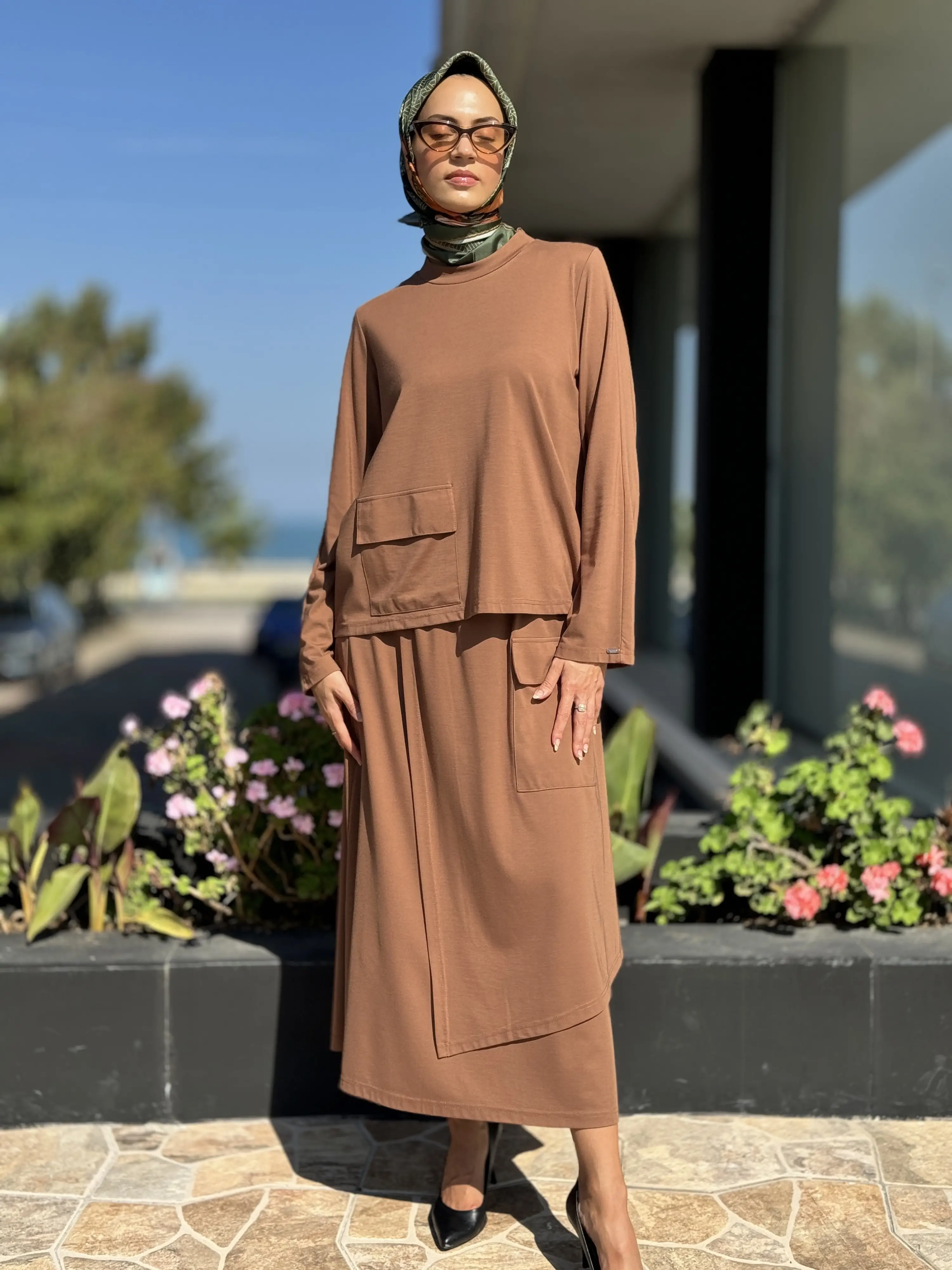 İNVEE Cep Detaylı Bluz Etek Takım 7023