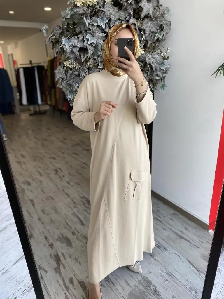 İnvee Cep Detaylı Pamuk Elbise 7040
