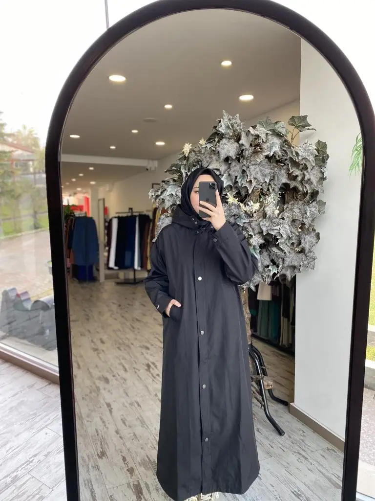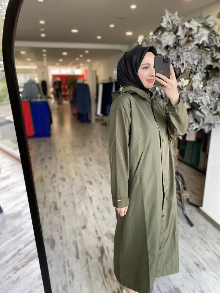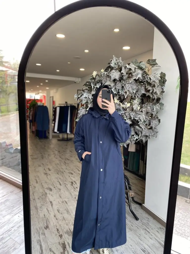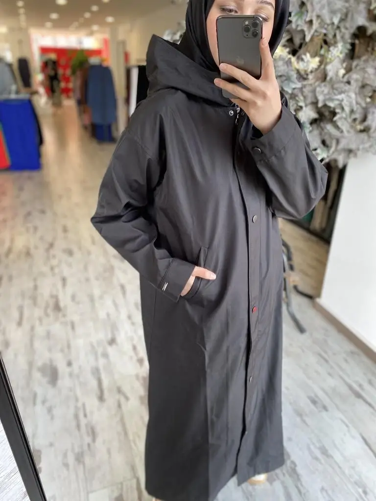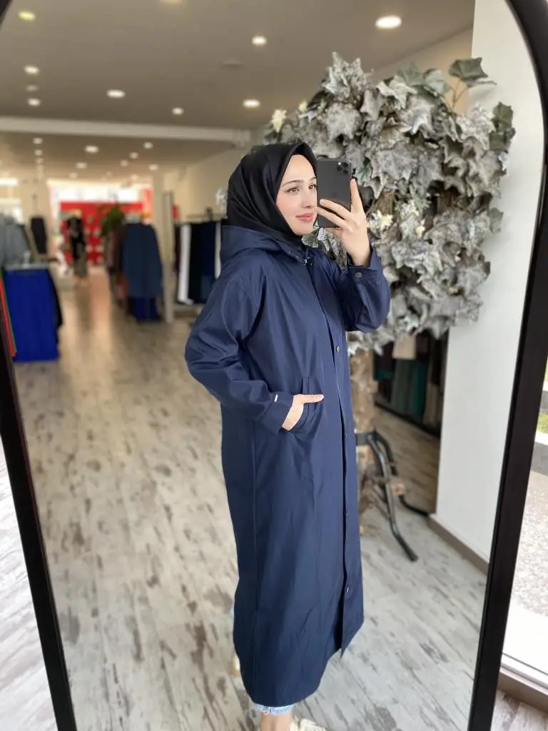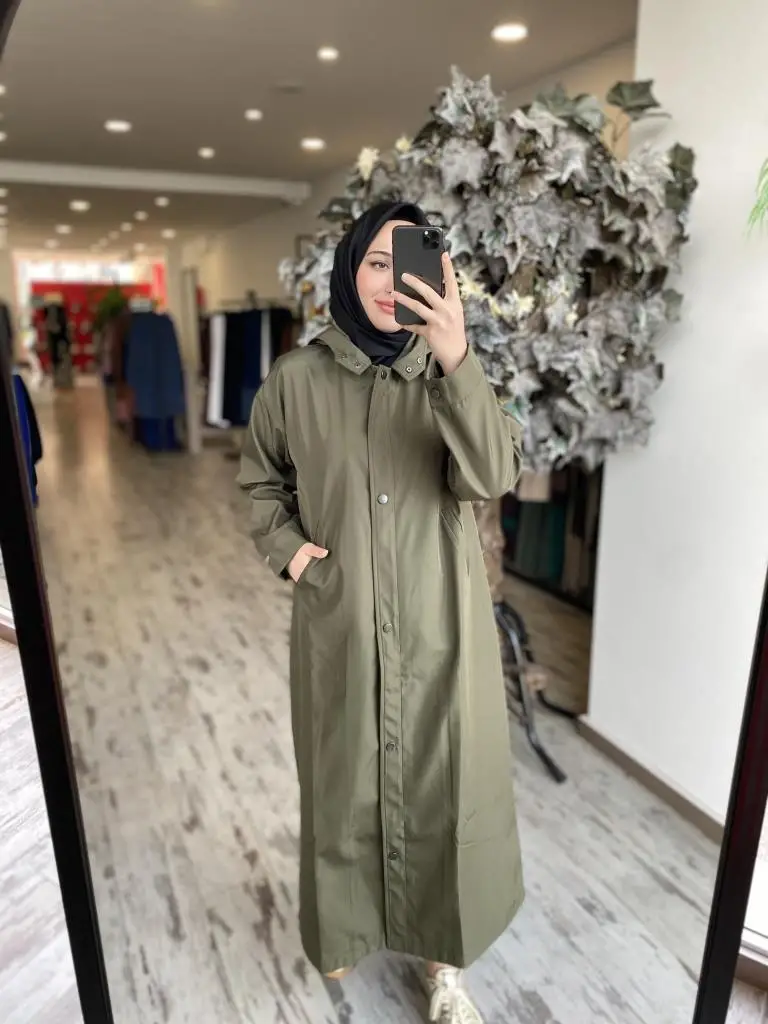 İnvee Çıtçıt ve Fermuar Detaylı Kapüşonlu Tam Boy Yağmurluk 7065
