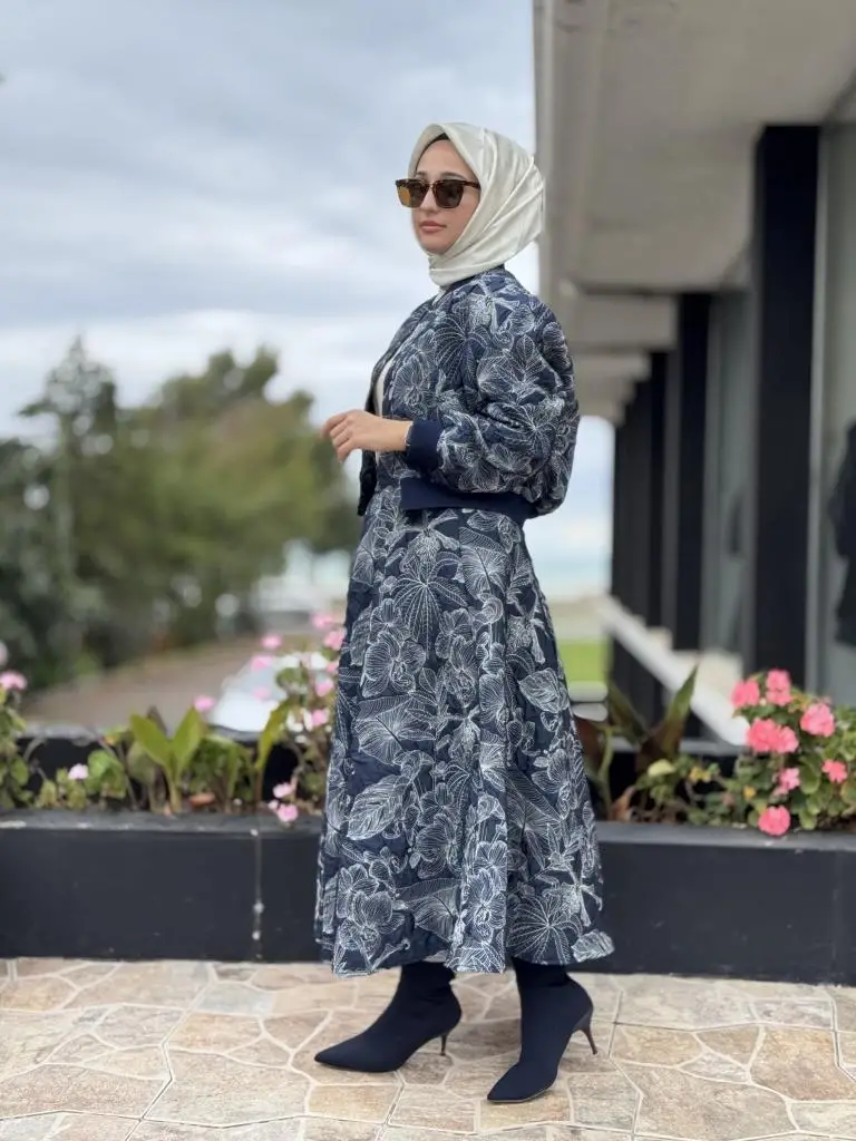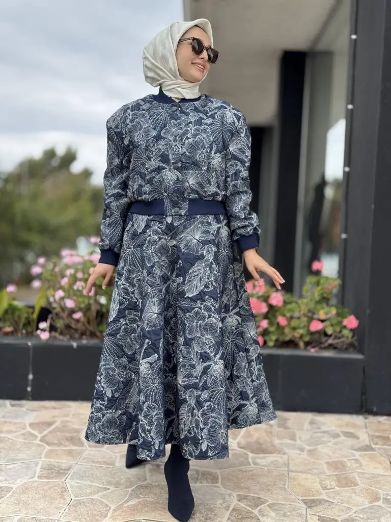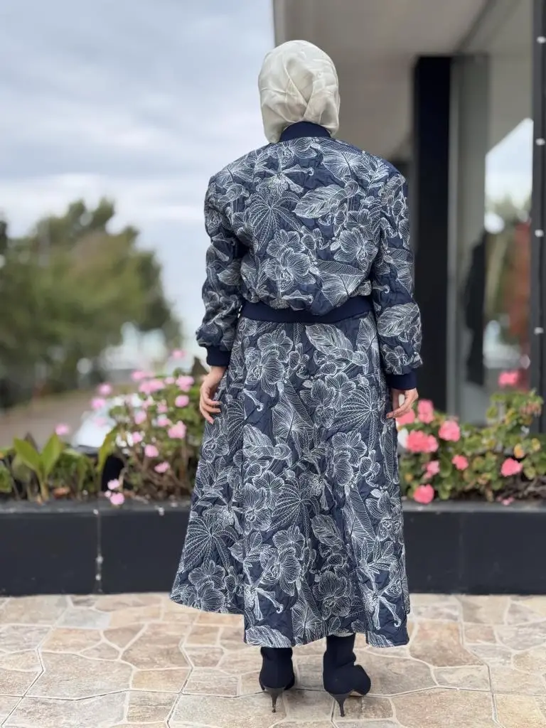 Kahma Florel Desen Kapitone Bomber Ceket Etek Takım