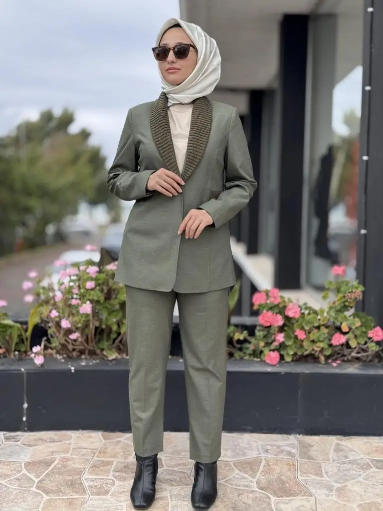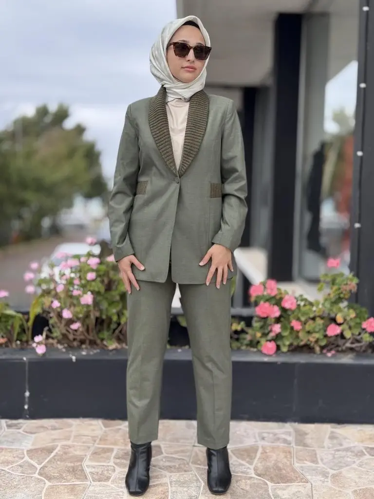 Kahma Triko Detaylı Ceket Pantolon Takım