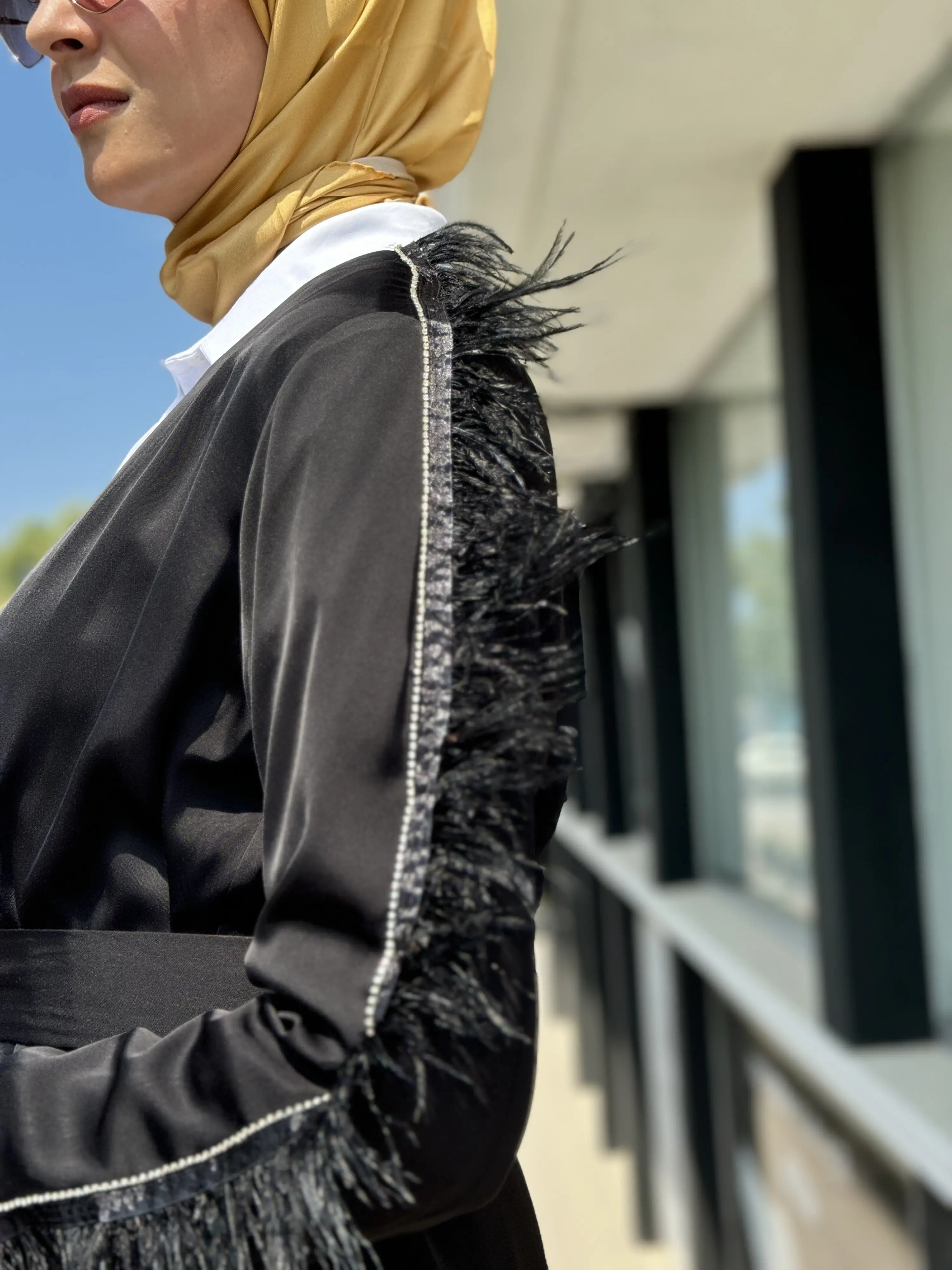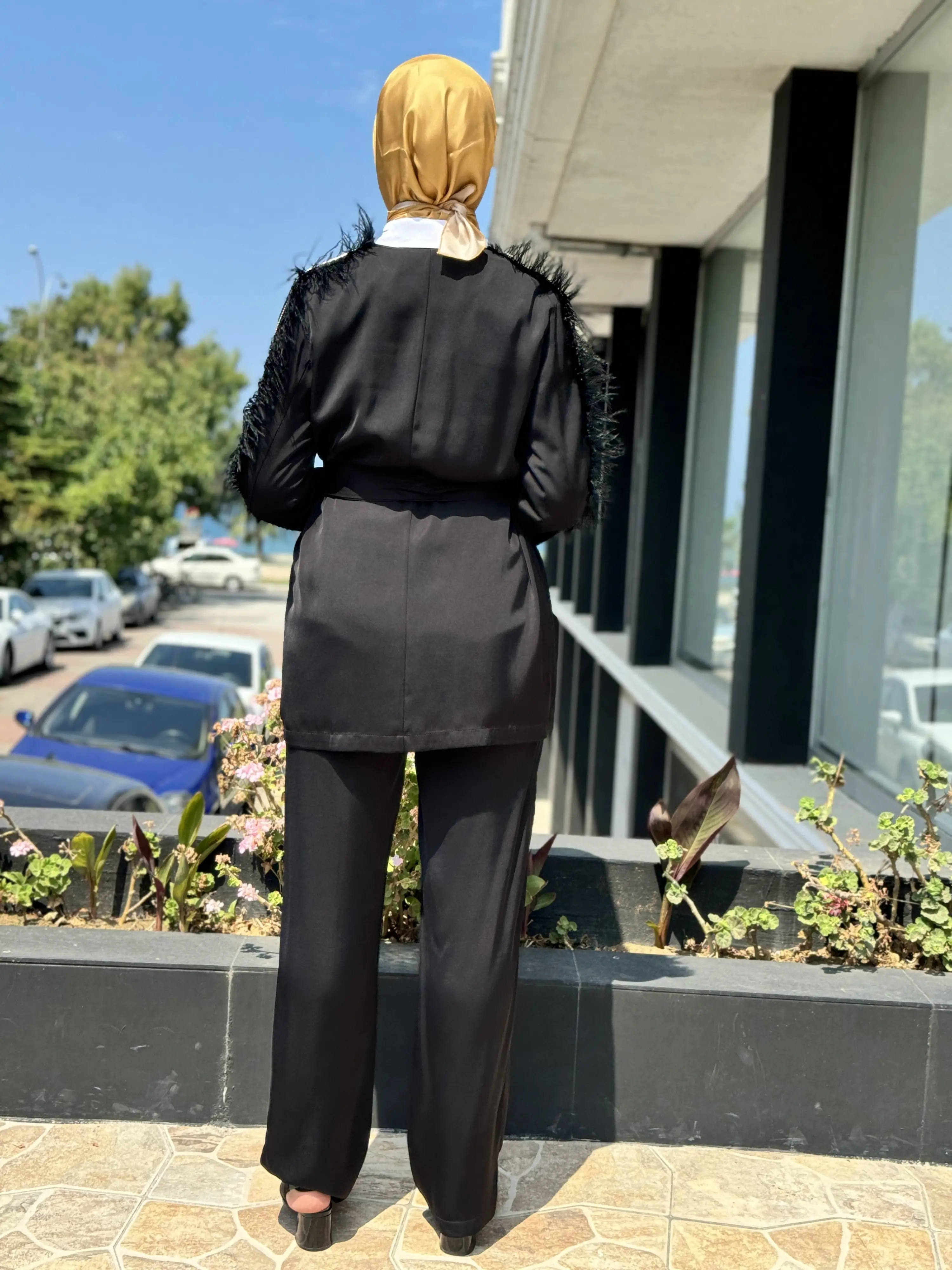 Lisa Kol Ve Omuz Detaylı Şık Siyah Ceket Pantolon Takım 3008