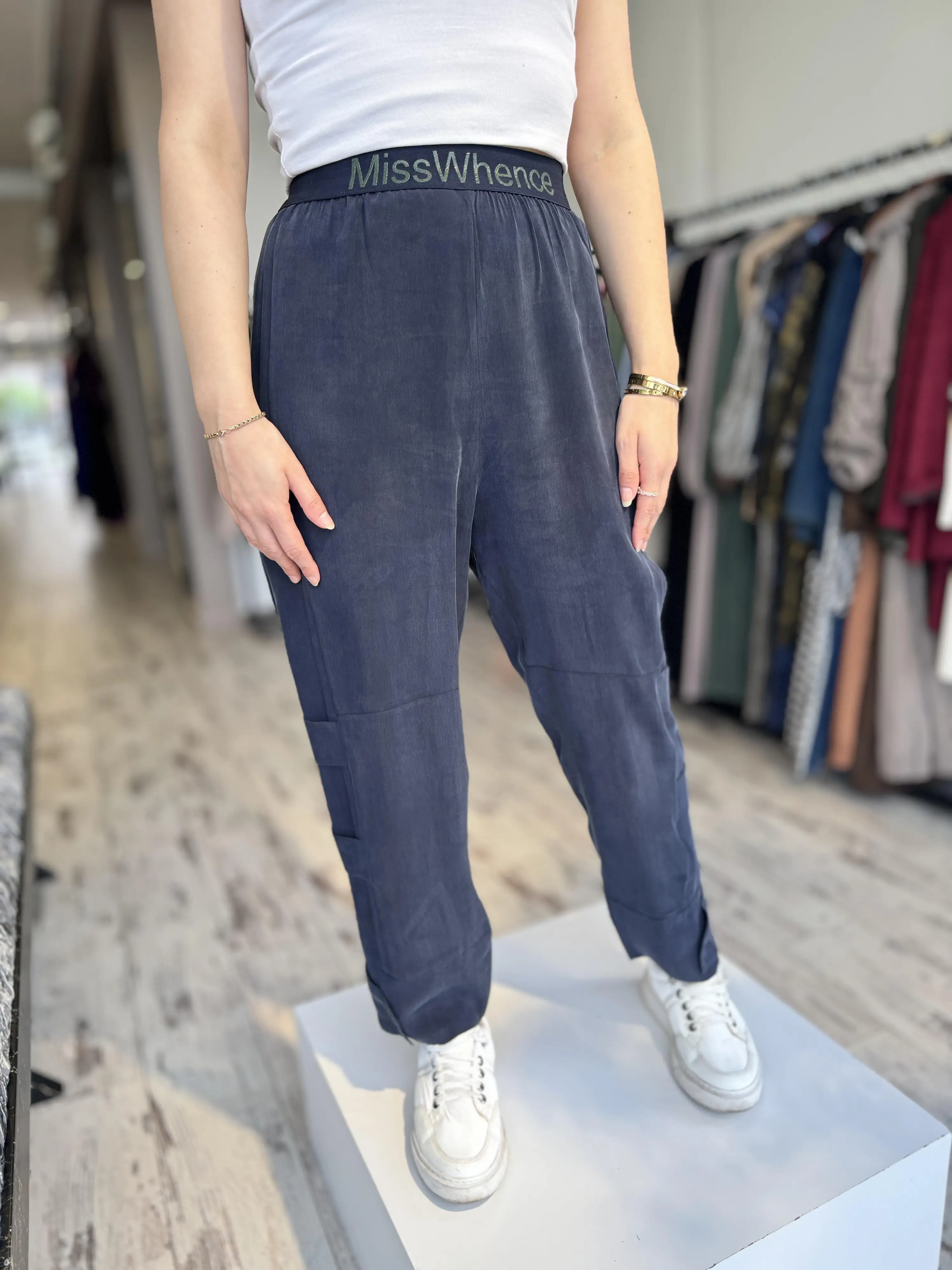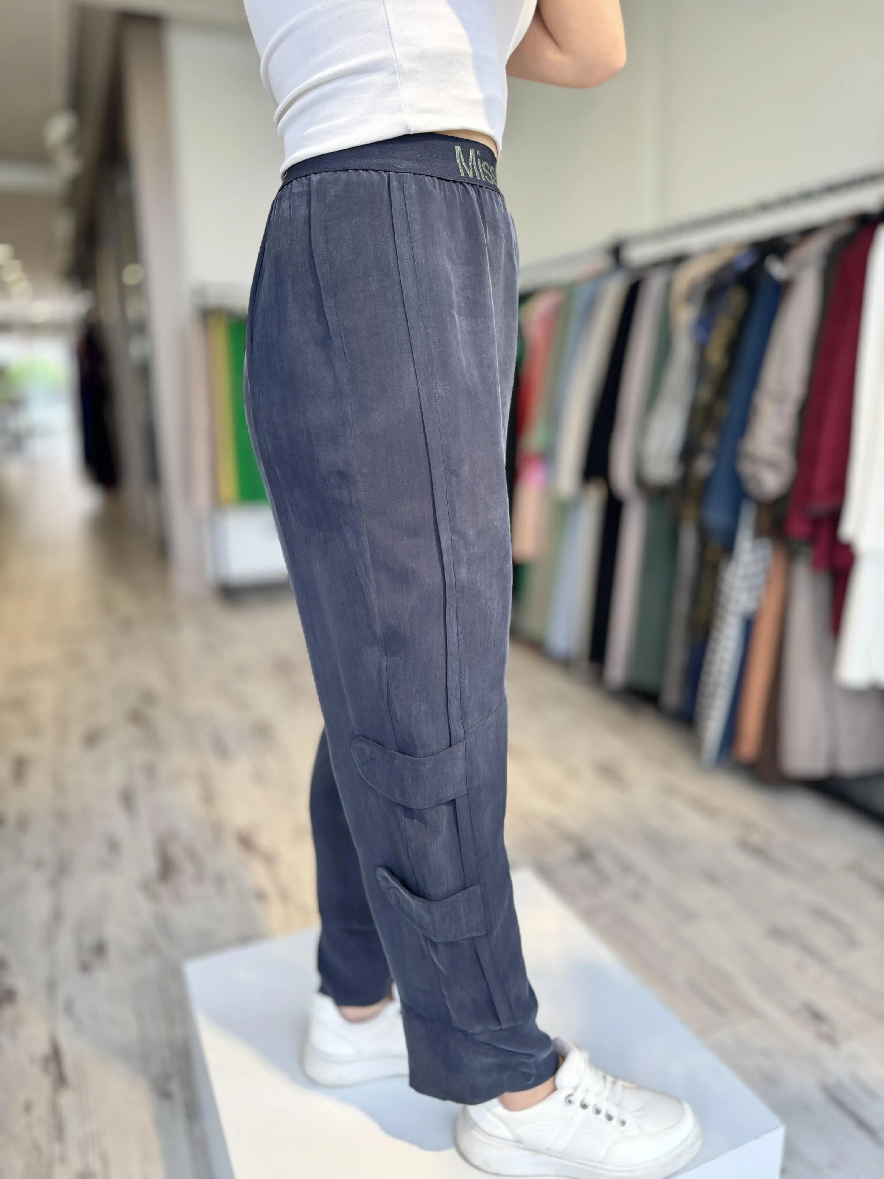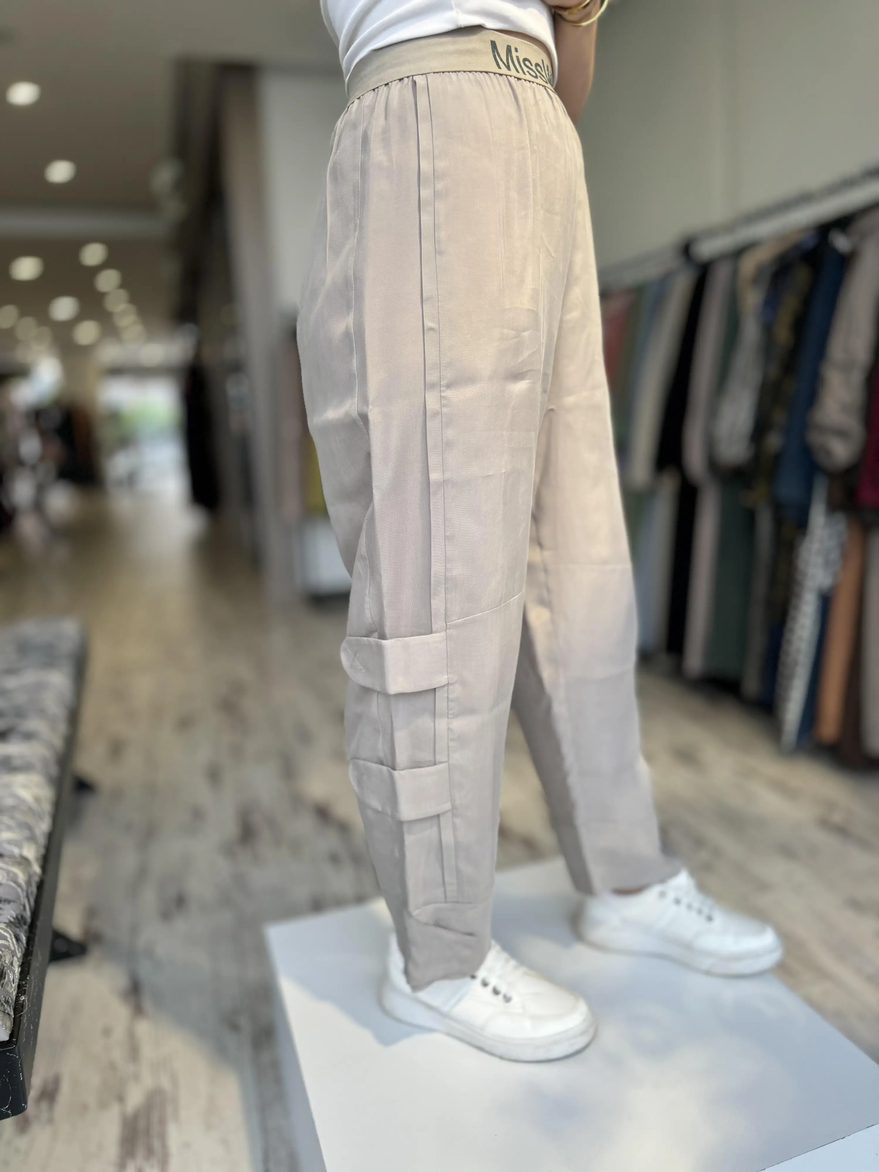 Misswhence Beli Lastikli Cupra İpek Pantolon 35121