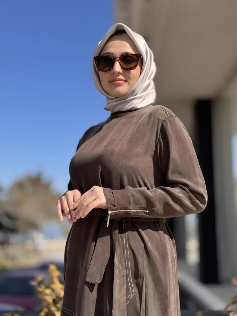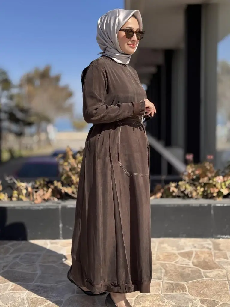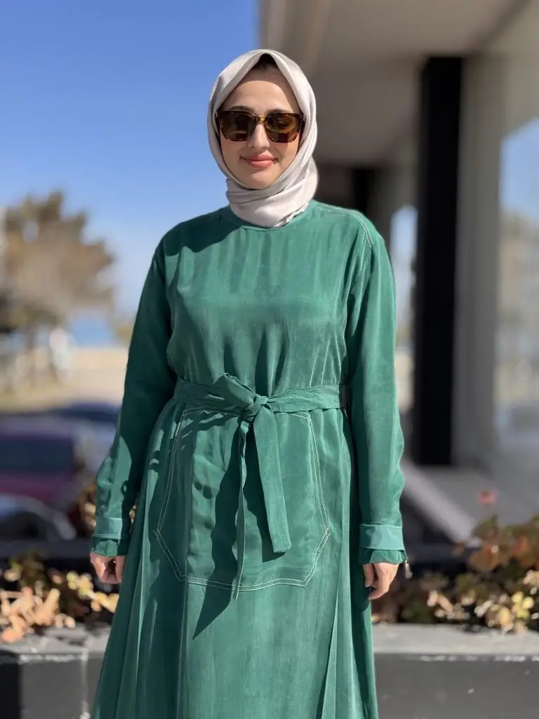 Misswhence Cep Detaylı Spor Dikişli Cupra İpek Elbise 37838