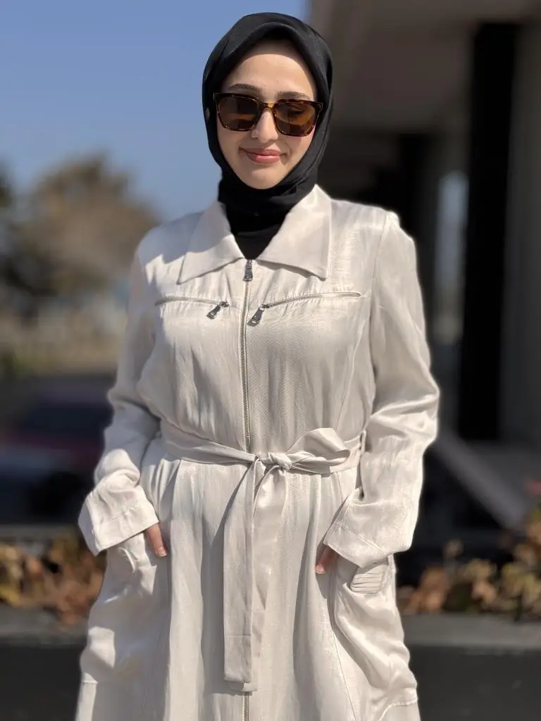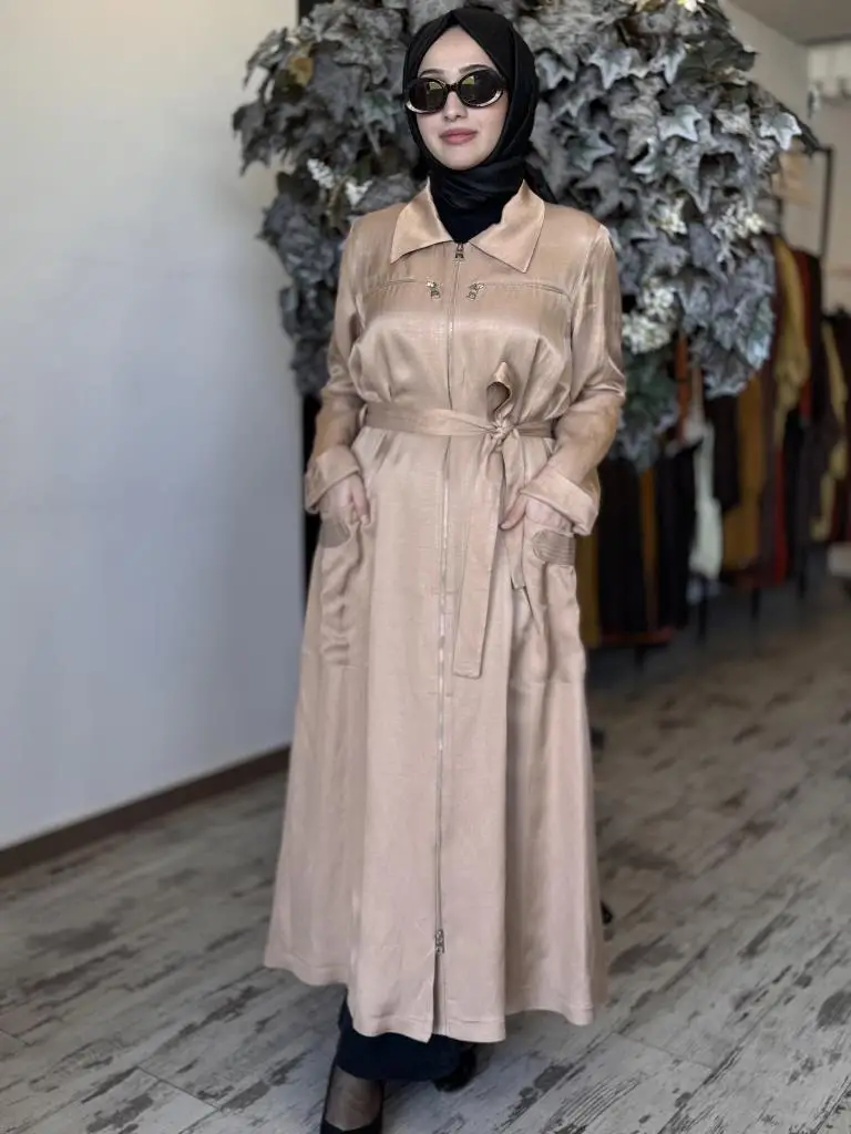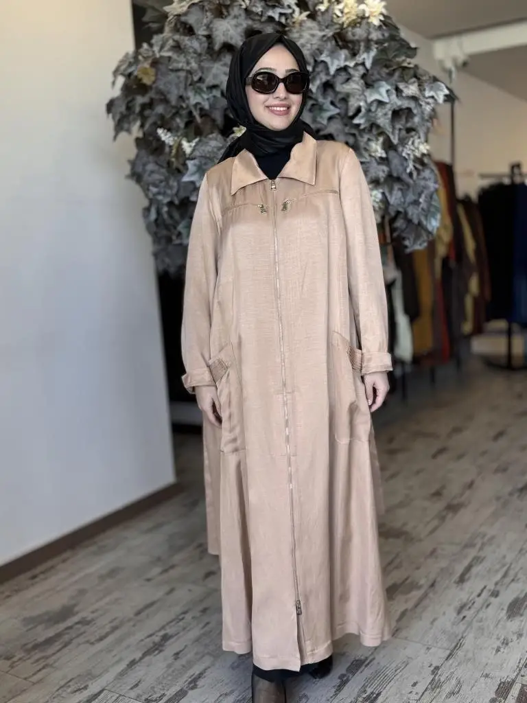 Misswhence Cep ve Fermuar Detaylı Chanel Keten Pardesü 37515