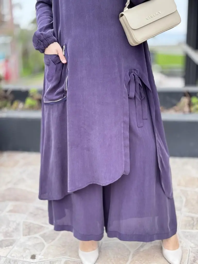 Misswhence Cep Ve Yırtmaç Detaylı Tam Boy Tunik Pantolon Takım 37023
