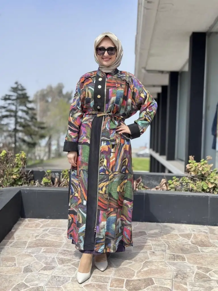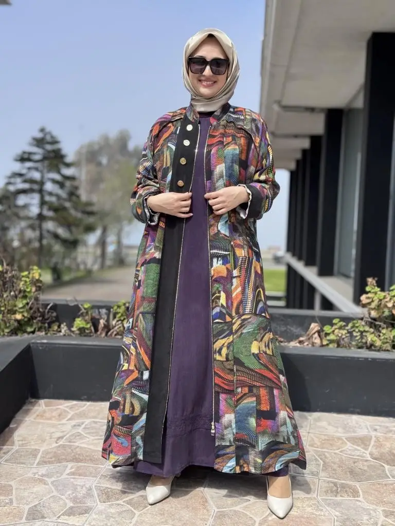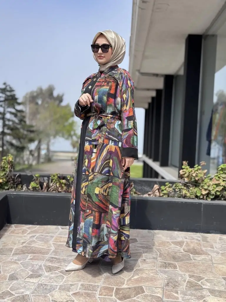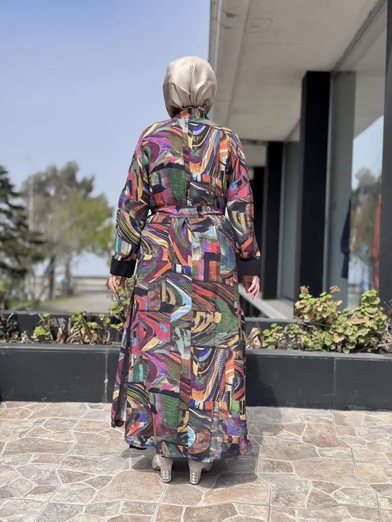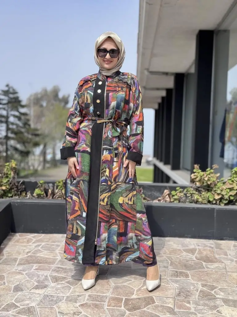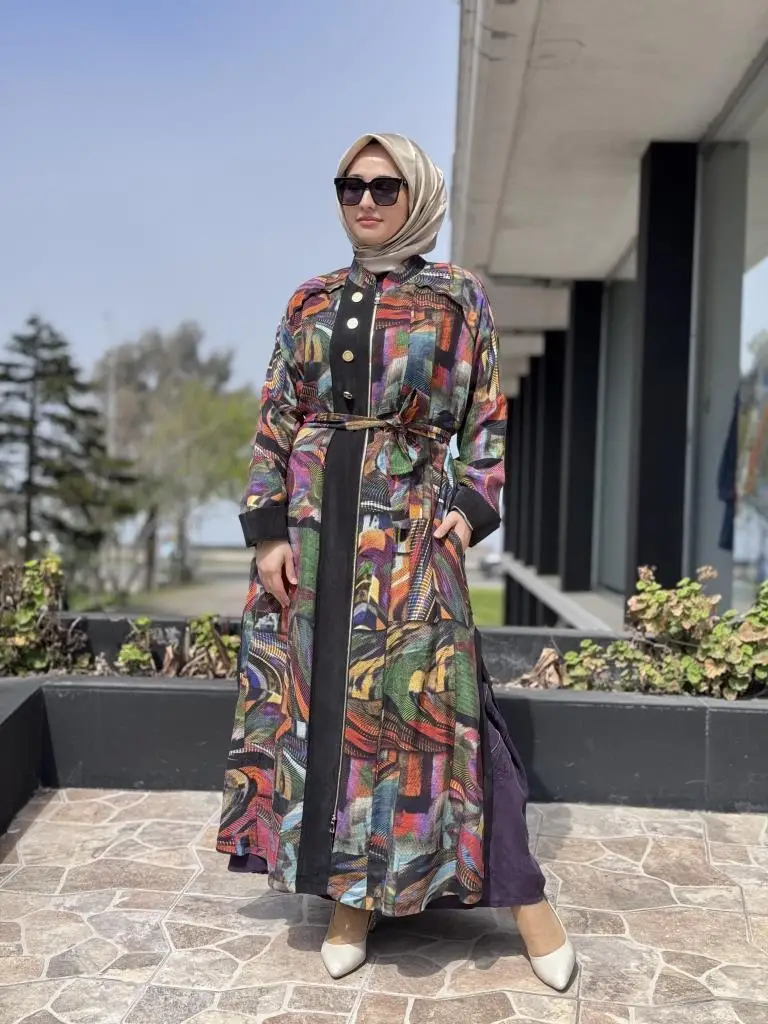 Misswhence Dijital Desenli Fermuarlı Cupra İpek Pardesü 37510