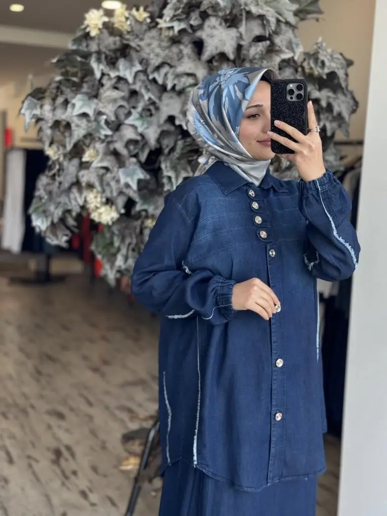 Misswhence Düğme Detaylı Denim Etek Takım 37304