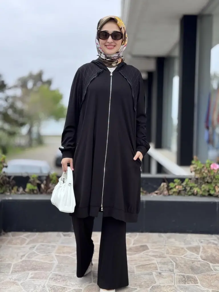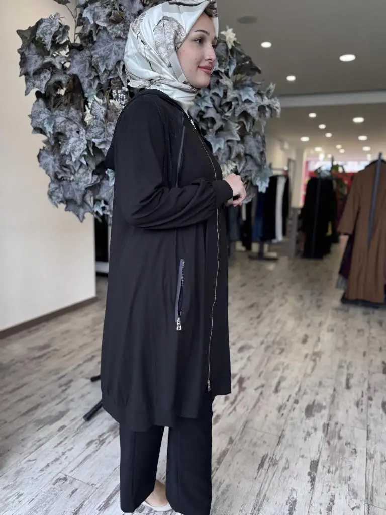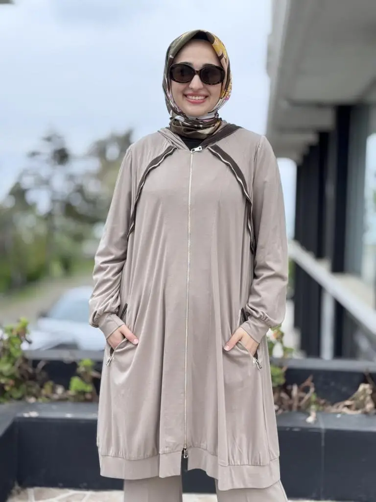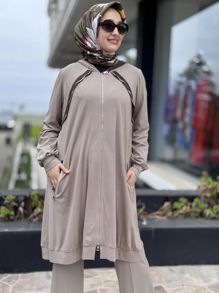 Misswhence Fermuarlı Kapüşonlu Penye Kap/Ceket 37415