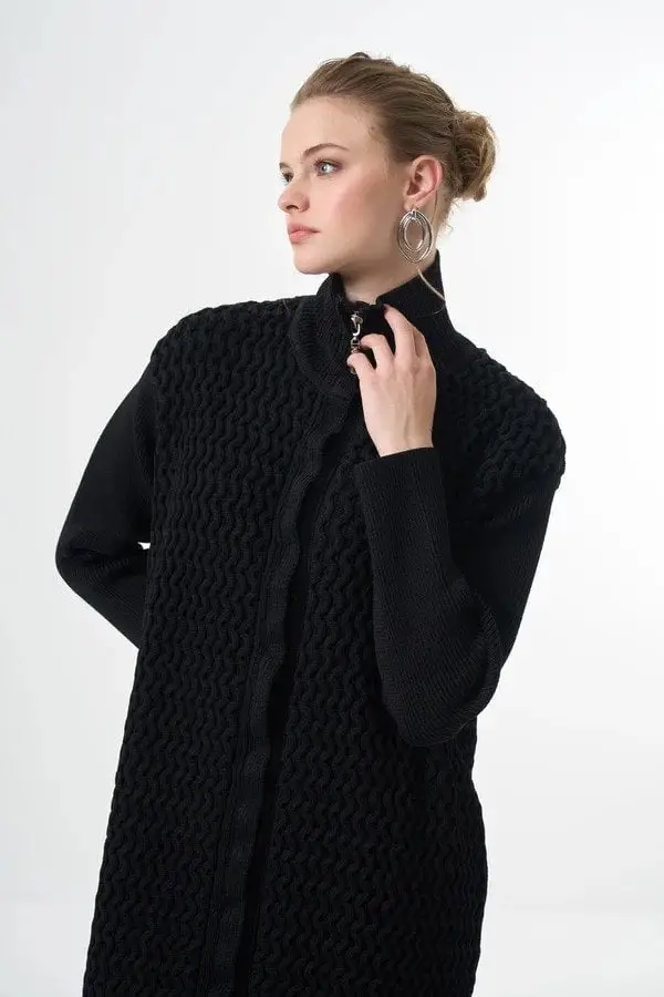 Misswhence Fermuarlı Örme Triko Kap 36529