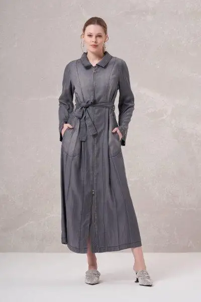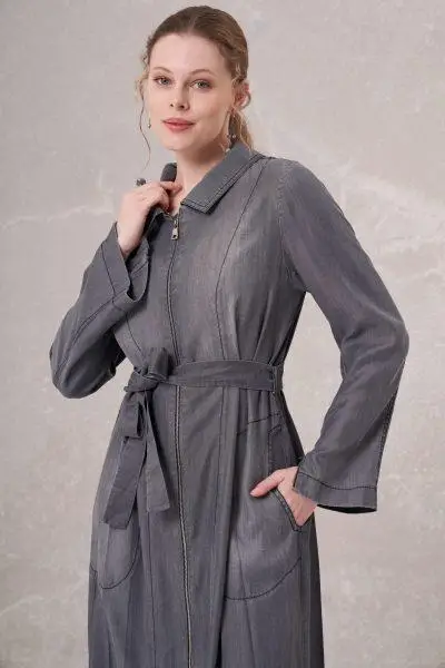 Misswhence Fermuarlı Tencel Kot Pardesü 35518
