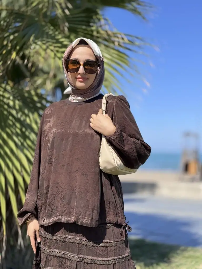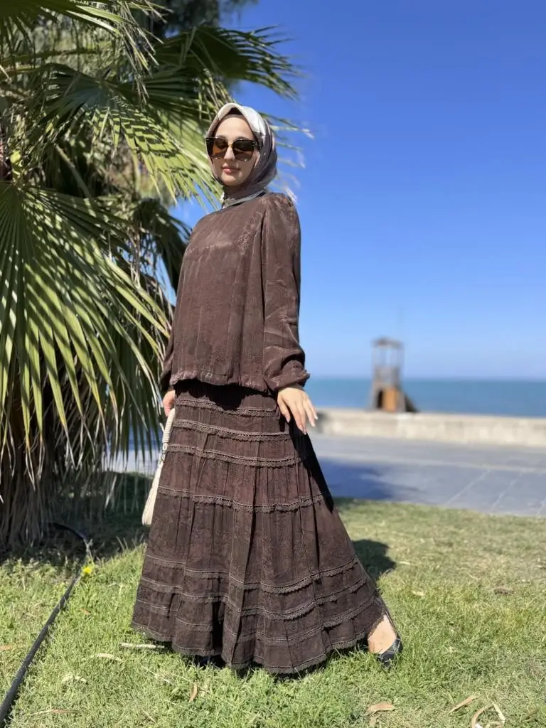 Misswhence Fistolu Cupra İpek Etek Bluz Takım 38025
