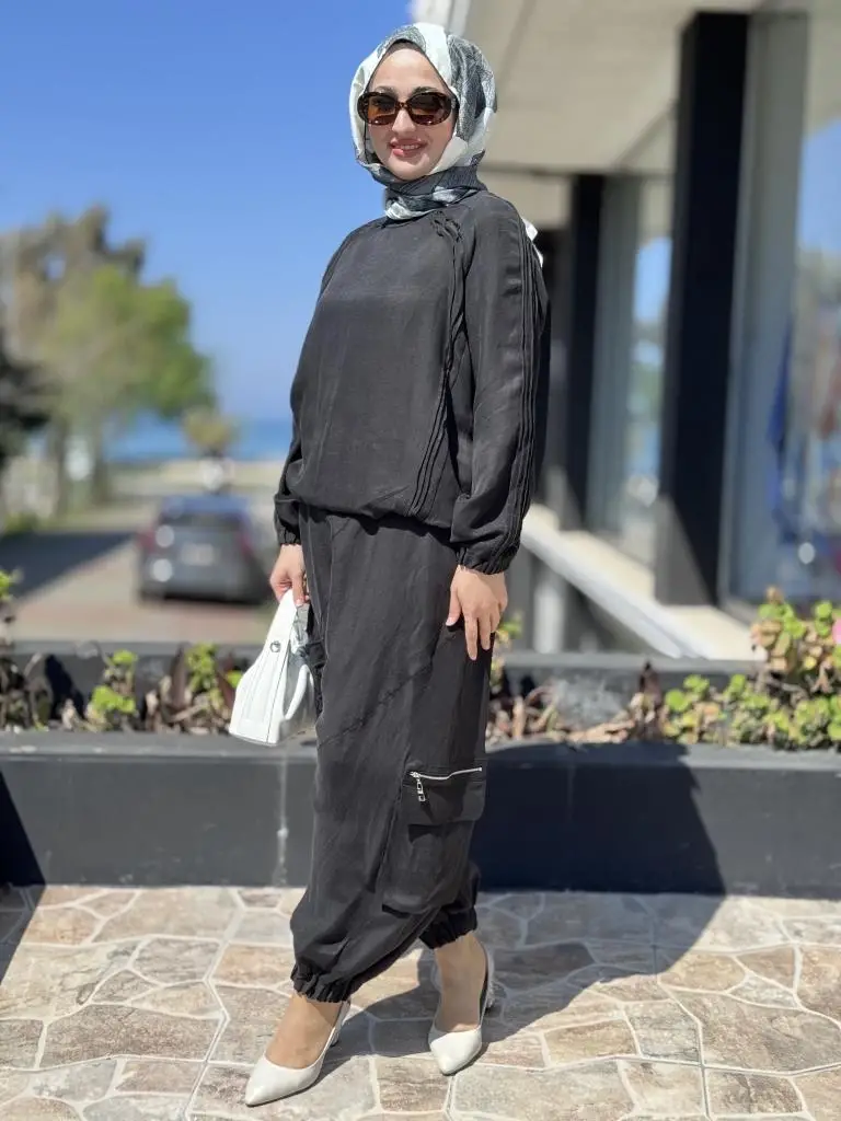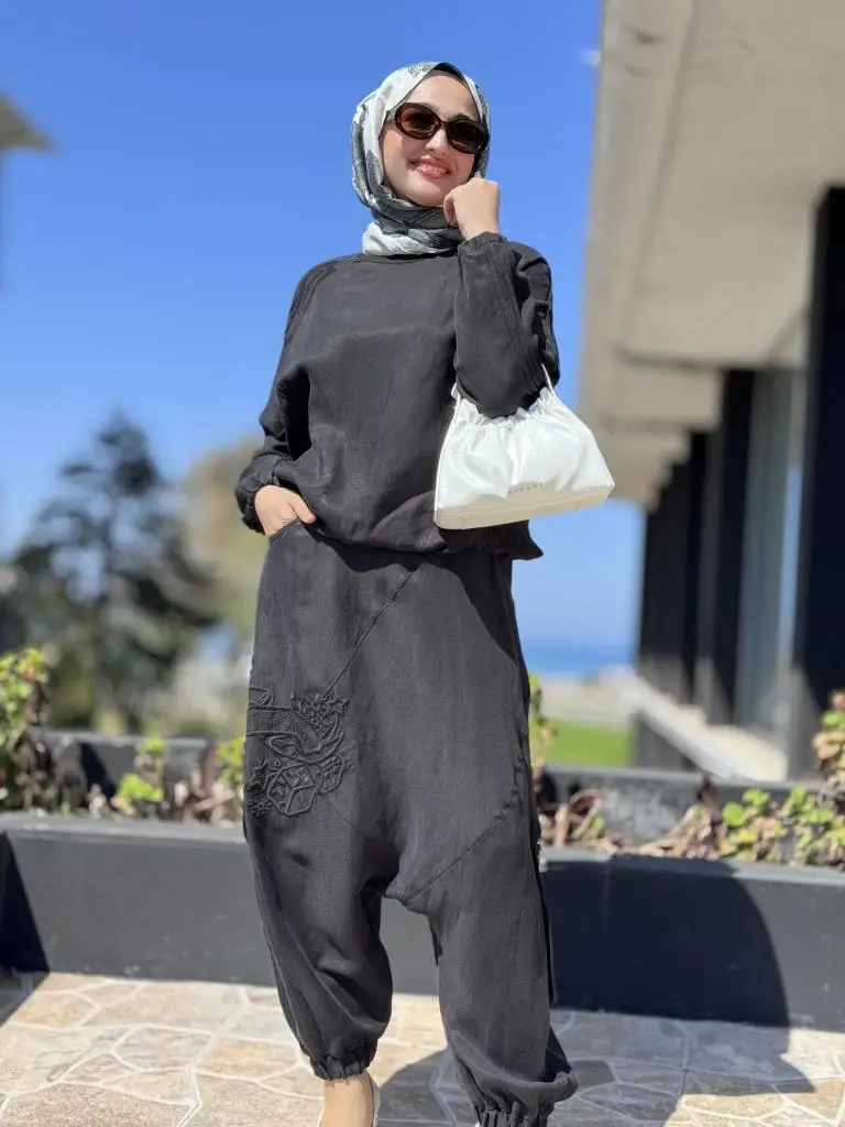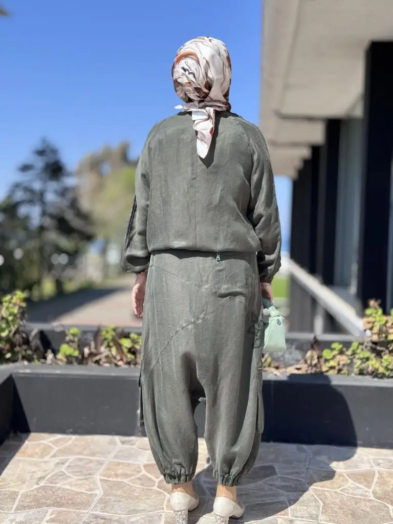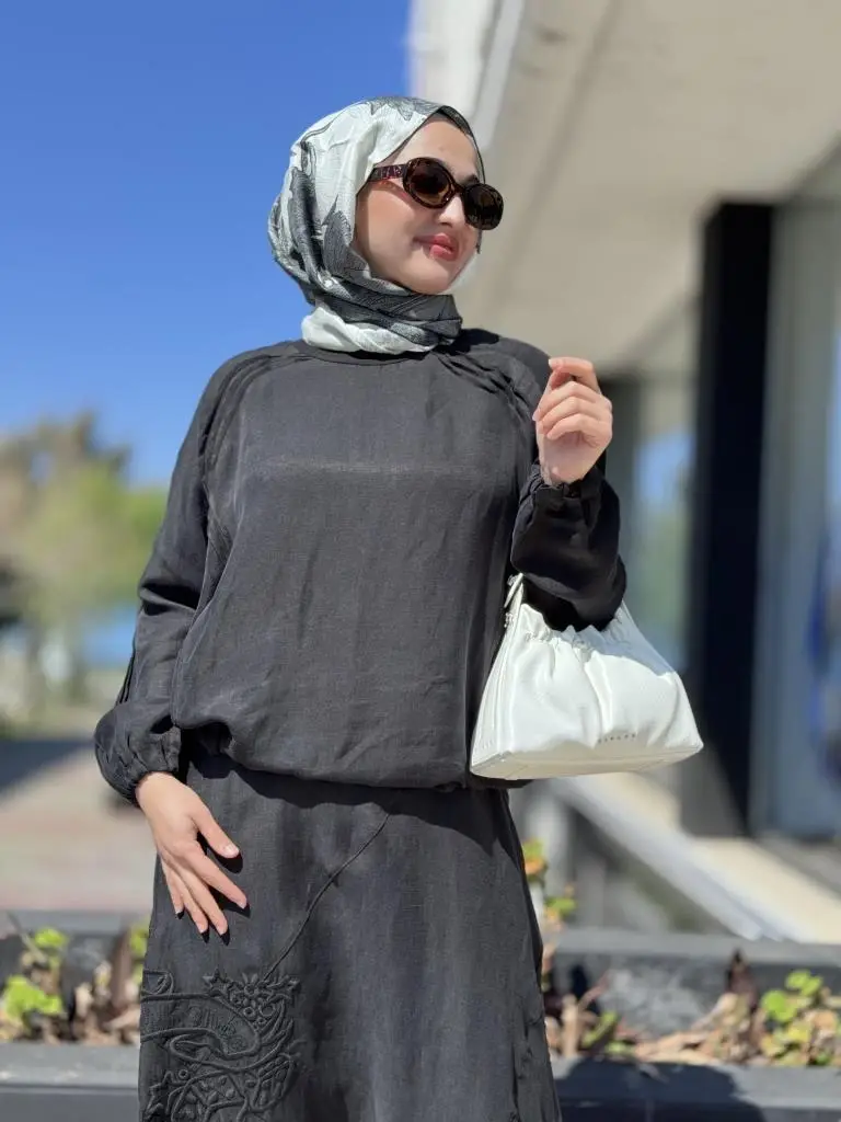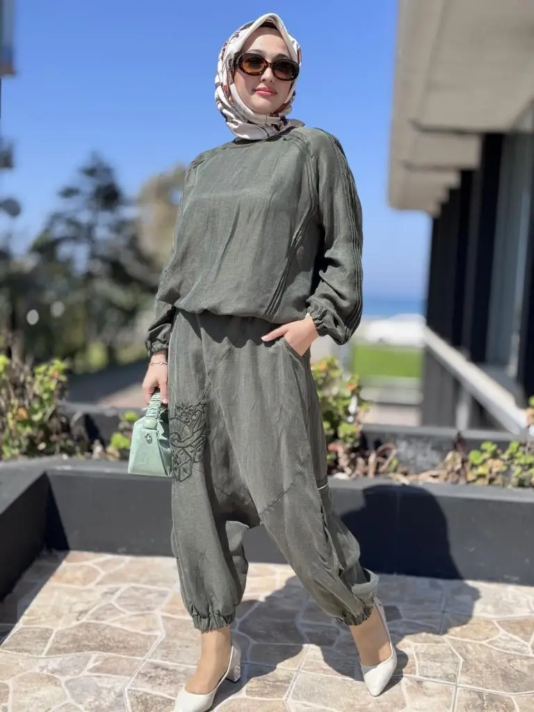 Misswhence İpek Keten Bluz Şalvar Etek Takım 37002